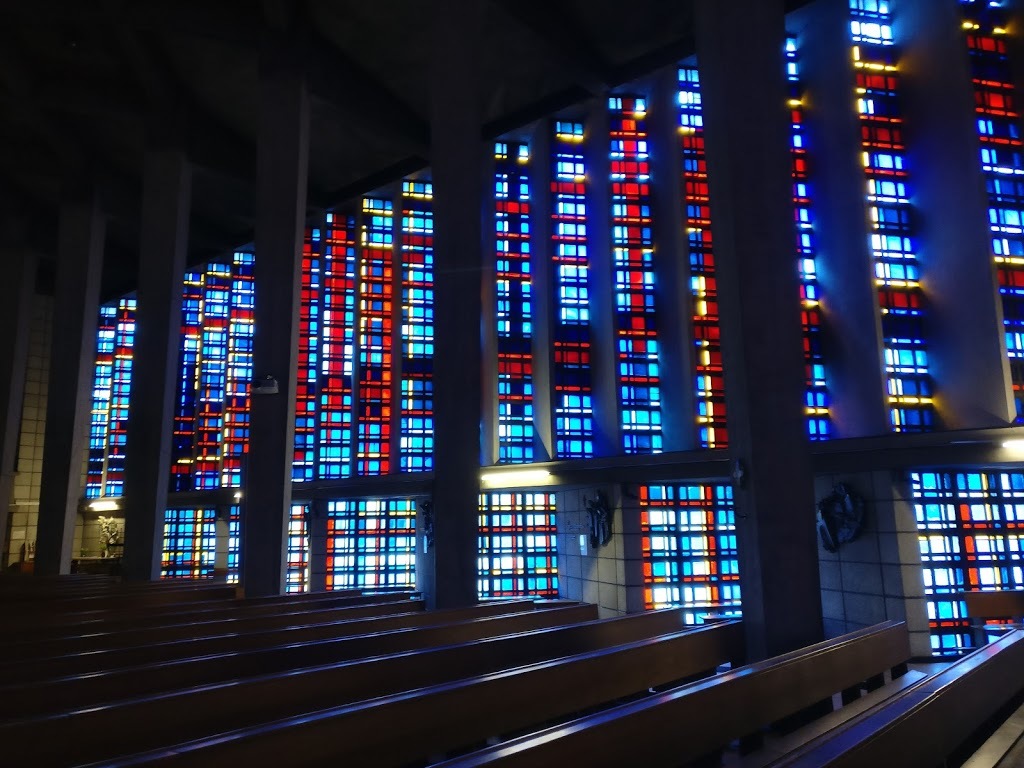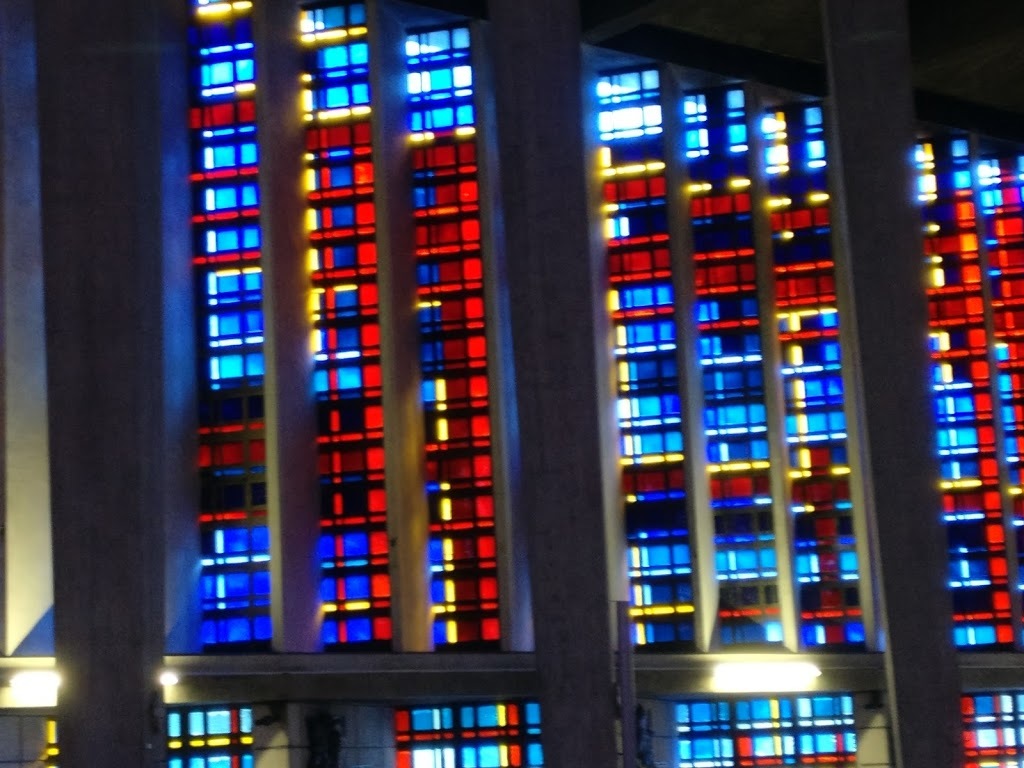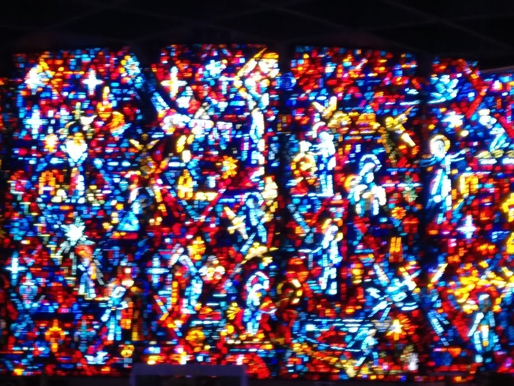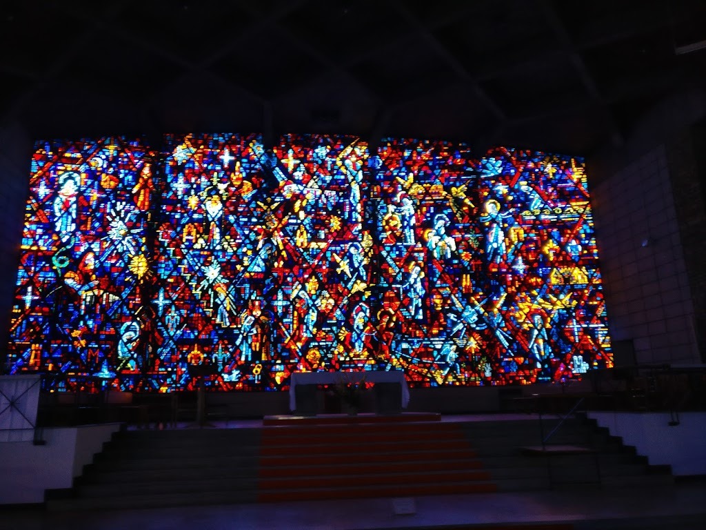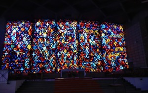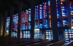 Epinal, église moderne (1960)avec le plus grand vitrail d'Europe réalisé par gabriel loire artisan verrier de Chartes.