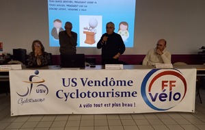 Notre assemblée générale s'est déroulée le vendredi 5 décembre avec une assistance nombreuse et en présence partielle De Laurent Brillard et Jimmy Marcilly qui avait aussi le Noel du personnel municipal. Avant de partir, Laurent Brillard a félicité le club pour son dynamisme. Jean Marie Berthin, président du Codep 41, Teddy Soulis, président USV UA et Jérôme Lefert étaient également présents. Ils ont respectivement remercié le club pour les animations réalisées tout au long de l'année, le fort engagement de nos bénévoles et les résultats financiers.
