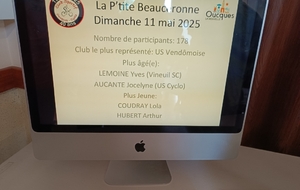 Ce dimanche 11 mai, nos amis du CS Oucques organisaient leur randonnée "La P'tite Beauceronne" et fêtaient le quarantième anniversaire de leur club. 4 parcours de 47 à 110km nous emmenaient sur les routes bien connues du Vendômois, des parcours plus originaux pour nous ayant été refusés par la préfecture. Avec 26 participants sur 171, notre club a reçu la coupe du club le plus représenté. Ce fut une belle matinée de vélo conclue par un moment de convivialité et aussi pour nous une belle occasion de faire la promotion de notre challenge et Vendôme à vélo.