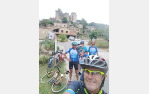 Lundi, après un peu de pluie dans la nuit nous partons sur 62 km, les costauds, cinq à six sont devant notre groupe de dix, Momo et Brigitte tous les deux sauf Francis parti seul sur le 80 km. Plusieurs ont eu peur de la pluie et sont restés sous la couette. Nous avons fait une halte avec photo sur "la butte de Montcuq"