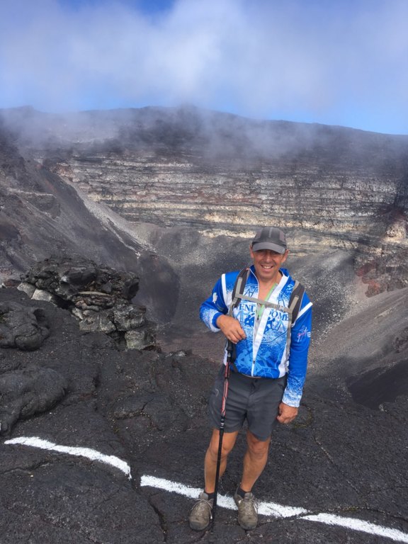 Voici un cyclo heureux, il est allé très loin faire de la publicité pour notre club. Bravo Guy, mettre le maillot du club pour gravir le Piton de la Fournaise, c'est une très bonne idée. Bonne continuation . Bonne fin de séjour. M.Jo
