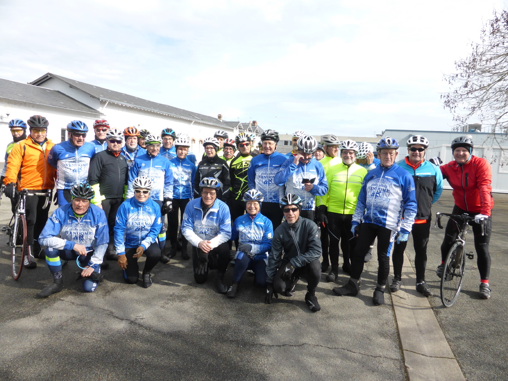 Après le temps épouvantable de dimanche, jour de reprise de la saison vélo, ce lundi, 33 cyclos ont profité des quelques rayons de soleil pour sortir leurs montures. Un réel plaisir de se retrouver après l'hiver maussade que nous avons eu. Deux groupes se sont formés et nous avons parcouru 65 km avec quelques bosses. Pour une première ce n'est pas mal.