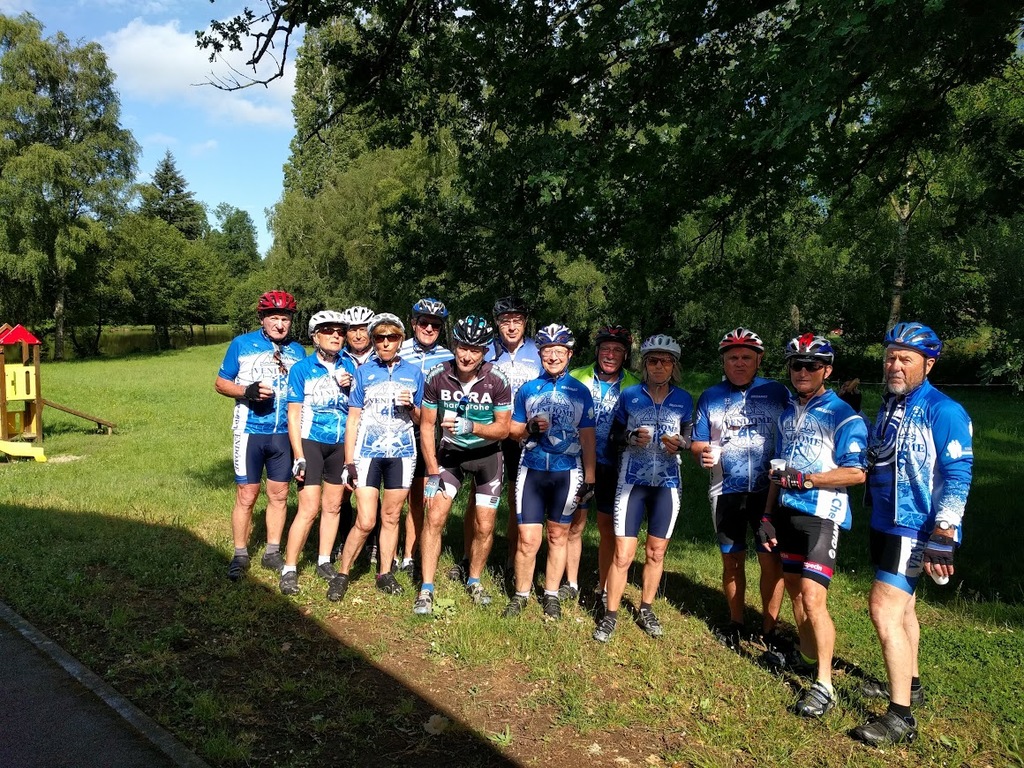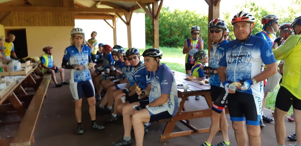 Superbe ballade sarthoise ; Semur en Vallon, Ecorpain, Coudrecieux ; la météo de la veille a occasionné beaucoup de crevaisons : 4 pour nous mais n'a pas entamé notre moral. Un régal de paysages quelques bons dénivelés sur le retour du 90km mais la météo estivale et l'accueil ont fait oublier les difficultés.
