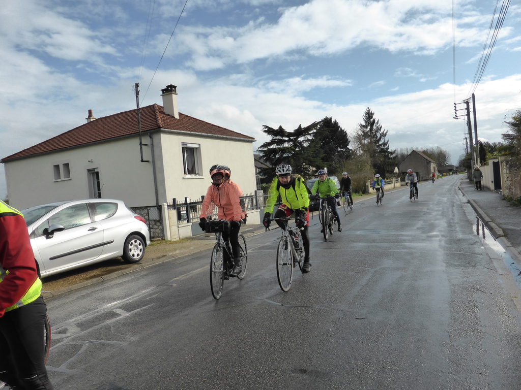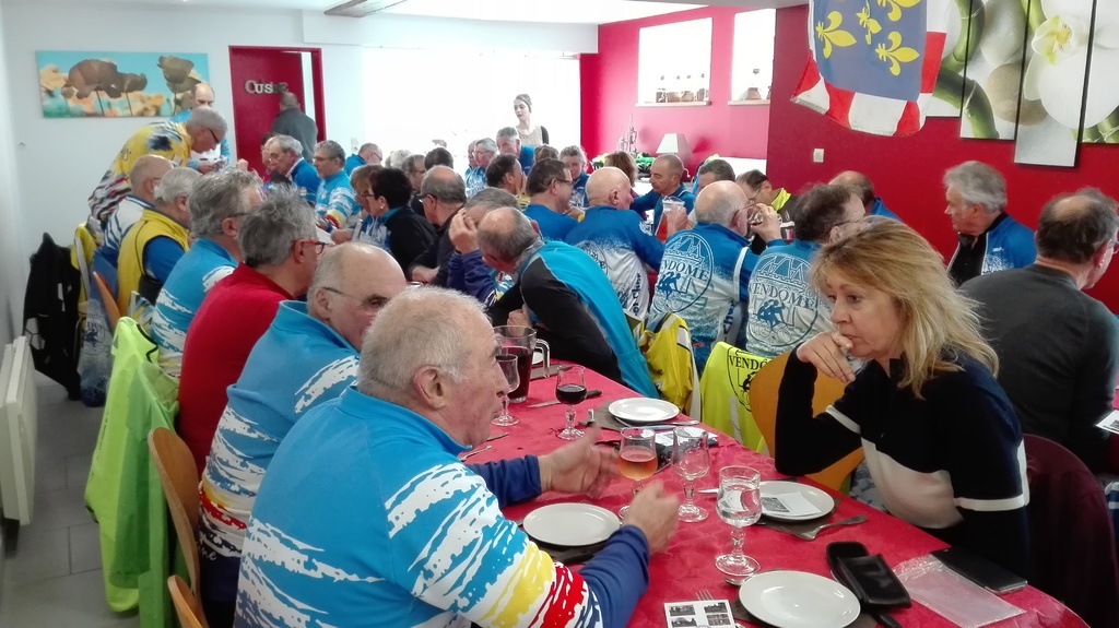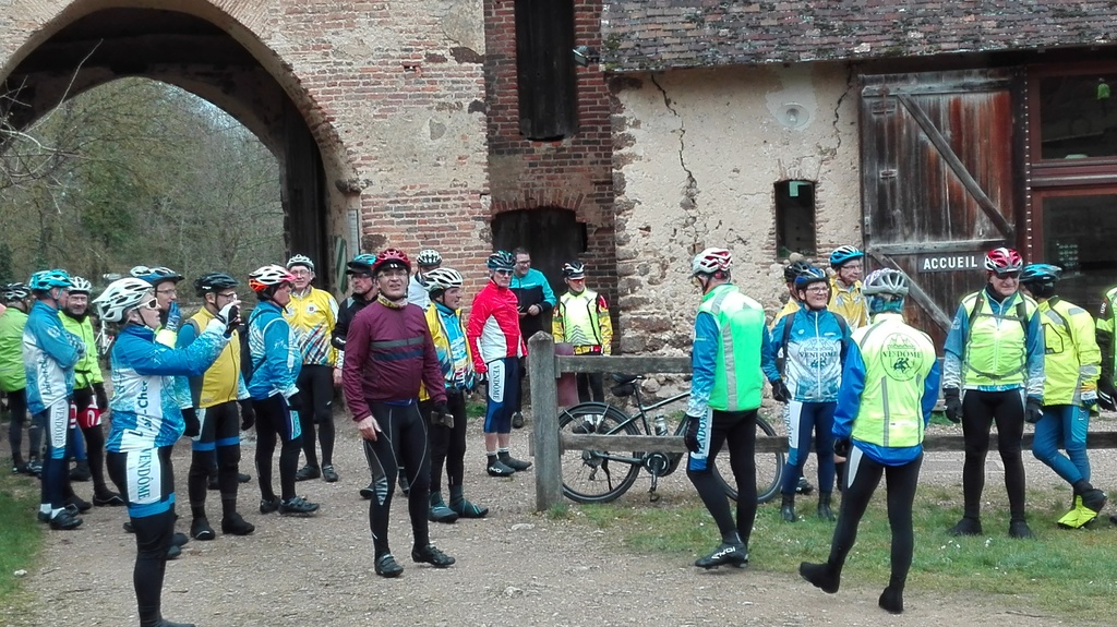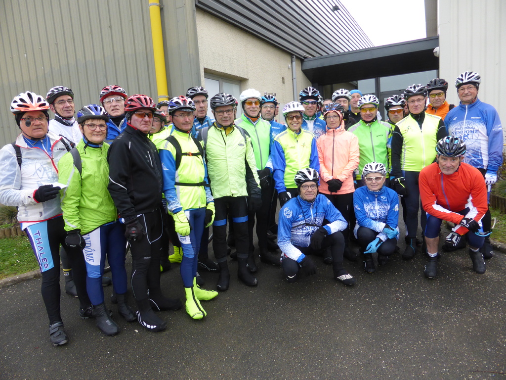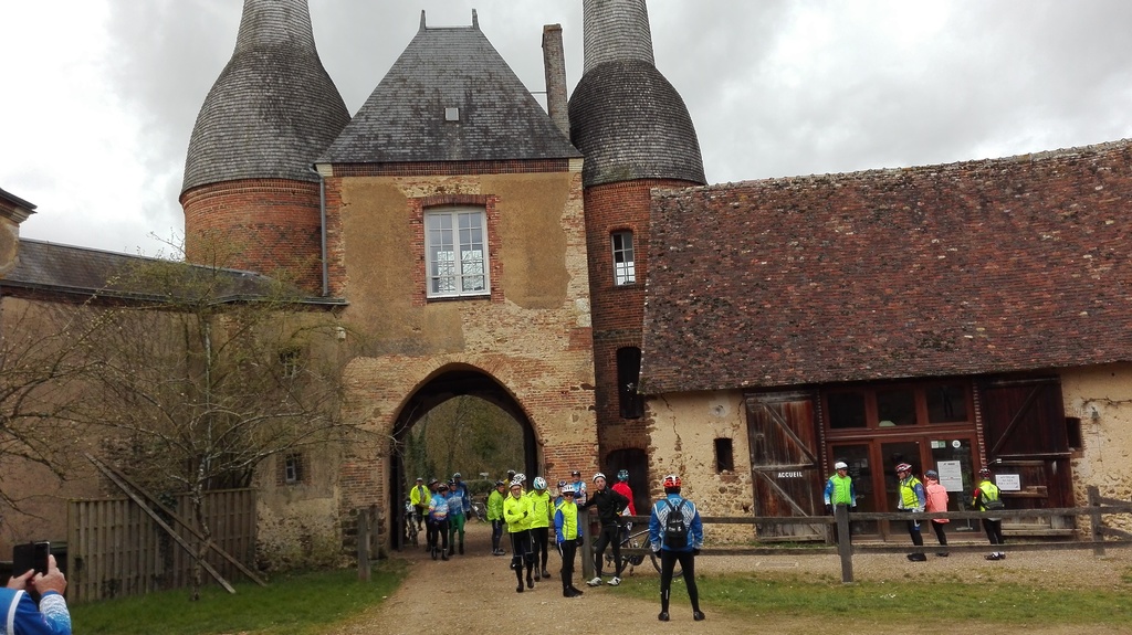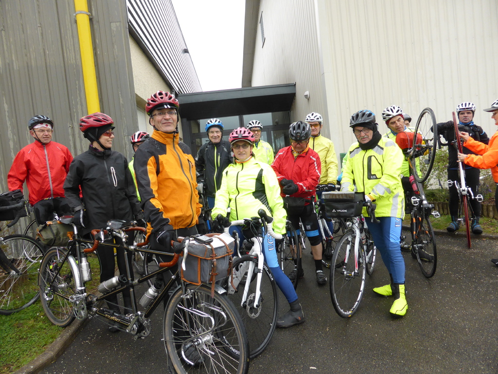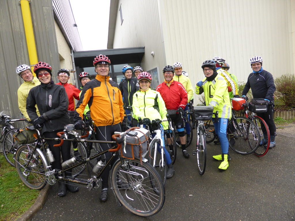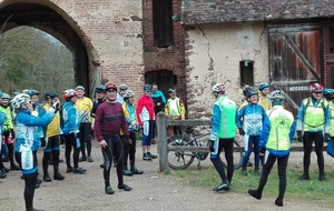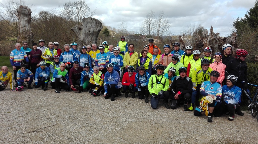 Malgré des prévisions de pluie et de vent fort, tous les vendômois étaient au rendez-vous, prêts à partir sous ce ciel gris mais il manquait les Tourangeaux…La journée commençait mal ; le chauffeur de leur remorque à vélos victime d’une panne de réveil a repoussé leur arrivée à 9h30. Pour éviter de trop se refroidir, nous décidons de partir doucement en 2 groupes (sauf Jean-Pierre et Pascale attendant leurs co-équipiers) ; de faire éventuellement une rallonge pour se retrouver tous à Boursay pour la photo de groupe devant les trognes. C’était sans compter sur les crevaisons ; à peine sorti de Naveil, la première immobilise le premier groupe avec en prime quelques gouttes. Les nuages vite chassés laissent place au soleil et nous roulons gentiment sur les petites routes du Perche et faisons juste une petite rallonge avant St Marc du Cor où nous repassons devant le deuxième groupe, direction Choue puis Boursay où en attendant les 2 derniers groupes, nous découvrons le site des trognes. Notre attente sera longue, les derniers vendômois victimes d’une crevaison à la sortie de Choue nous paraîtront lents à arriver ; ce n’est rien à côté des Tourangeaux qui,partis presque 1h après nous en auront 6 avant de nous rejoindre ! De gros nuages cachent de nouveau le soleil ; le vent se lève, et la température a bien chuté lorsqu’ils nous rejoignent. Nous faisons vite quelques photos pour leur laisser le temps de voir rapidement le site et malheur au moment de reprendre nos montures, l’un d’entre eux s’aperçoit que son pneu est ouvert sur quelques centimètres et devra le changer. Il est midi et quart lorsque nous repartons enfin, bien refroidis ; le vent est fort, la pluie menace. Afin d’être à 13h30 à Souday pour le repas, nous décidons de raccourcir le parcours en allant directement à Arville où nous prenons le temps d’un arrêt photos à la Commanderie puis Oigny et enfin Souday où nous sommes juste à l’heure et ouf ! contents de vite se mettre au sec car sur les 2 derniers kilomètres les gouttes commençaient à s’intensifier. Cette pause nous réchauffe avec ce bon repas cyclo, simple mais bien cuisiné, bien garni et pendant lequel nous regardons (un peu inquiets) la pluie qui ne cesse pas. Heureusement, l’animation de Jean-Pierre avec son jeu questionnaire sur le patois percheron nous fera diversion. Le temps de tous se regarnir, sortir nos vélos, il est presque 16h lorsque nous repartons de Souday mais par chance, la pluie a cessé et même si le ciel est menaçant, le vent est moins fort ; moins défavorable que prévu et l’humeur est joyeuse. Quelques grosses gouttes juste avant Baillou nous refroidiront un peu mais bien moins que les crevaisons ; nous en aurons 6 sur le retour ! Pratiquement une à chaque village ; la dernière à 1km de l’arrivée ! Elles nous ont sûrement évité de prendre la pluie car à celle de Rahay et Champrond nous avons vu passer devant nous de gros nuages s’épanchant fortement peu après et la route était bien trempée à notre passage ; mais nous ont aussi fait supprimer la dernière petite boucle par Lunay, Thoré. Nous sommes arrivés à 18h chez Jean.Pierre avec seulement 107 km au compteur mais très contents de cette bonne ballade même si nous avons dû faire l’impasse sur quelques jolis sites et points de vue; et de finalement rentrer secs. Le moment de convivialité qu’il nous avait prévu a été un bon temps d’échange entre nos 2 clubs et beaucoup sont prêts pour une prochaine rencontre. Merci aux tourangeaux, imperturbables malgré tous ces aléas ; à Jean-Pierre pour ses parcours recherchés, bien typique du paysage percheron ; à Joël pour le lien entre les 2 clubs et la logistique d’organisation locale ainsi qu’à Marie-Jo pour son aide au pot de départ et d’arrivée. Nicole