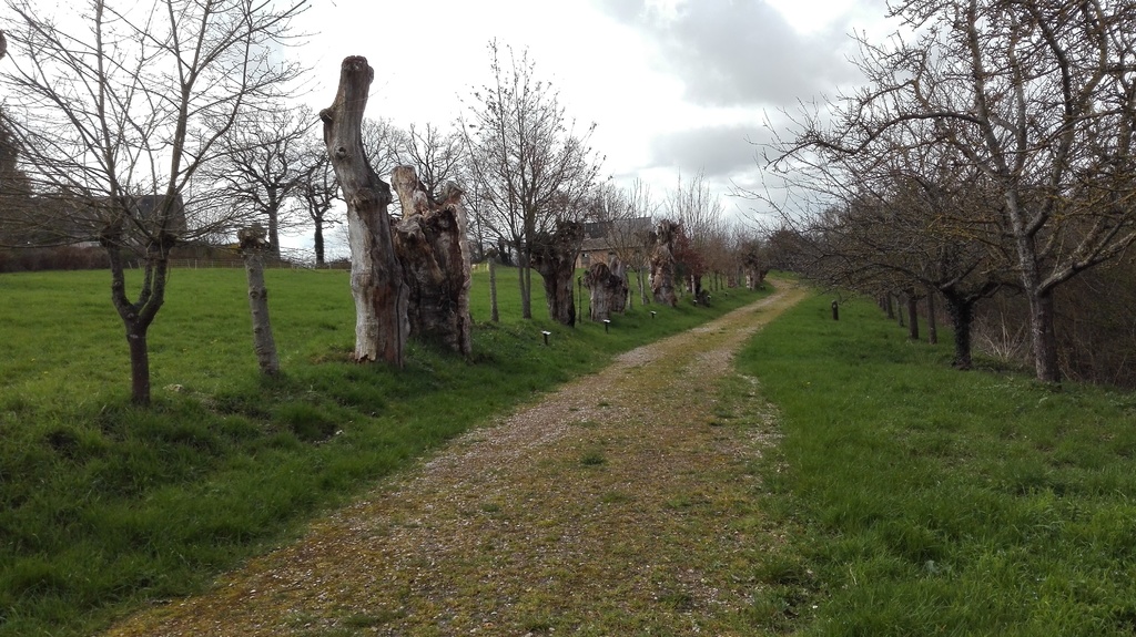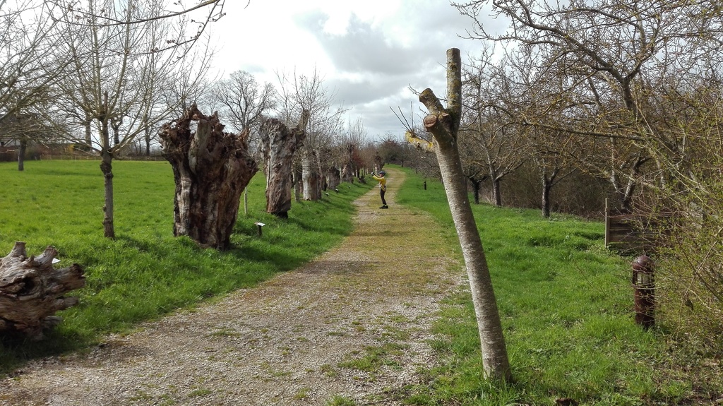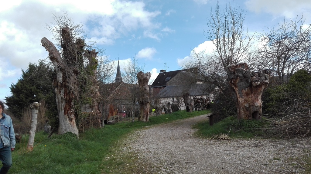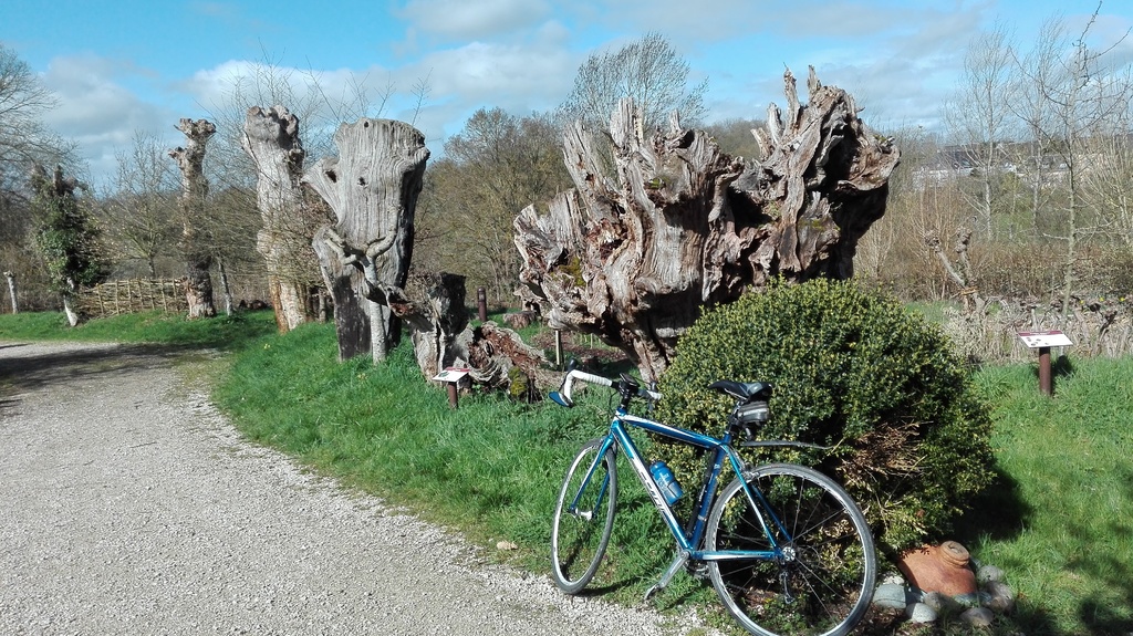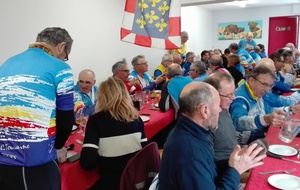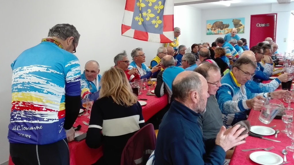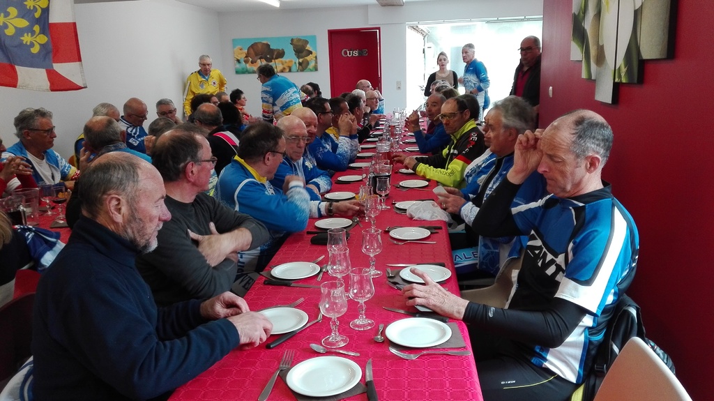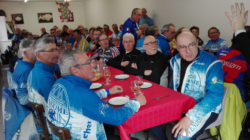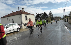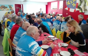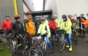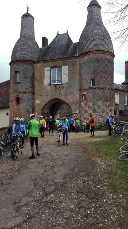 Malgré des prévisions de pluie et de vent fort, tous les vendômois étaient au rendez-vous, prêts à partir sous ce ciel gris mais il manquait les Tourangeaux…La journée commençait mal ; le chauffeur de leur remorque à vélos victime d’une panne de réveil a repoussé leur arrivée à 9h30. Pour éviter de trop se refroidir, nous décidons de partir doucement en 2 groupes (sauf Jean-Pierre et Pascale attendant leurs co-équipiers) ; de faire éventuellement une rallonge pour se retrouver tous à Boursay pour la photo de groupe devant les trognes. C’était sans compter sur les crevaisons ; à peine sorti de Naveil, la première immobilise le premier groupe avec en prime quelques gouttes. Les nuages vite chassés laissent place au soleil et nous roulons gentiment sur les petites routes du Perche et faisons juste une petite rallonge avant St Marc du Cor où nous repassons devant le deuxième groupe, direction Choue puis Boursay où en attendant les 2 derniers groupes, nous découvrons le site des trognes. Notre attente sera longue, les derniers vendômois victimes d’une crevaison à la sortie de Choue nous paraîtront lents à arriver ; ce n’est rien à côté des Tourangeaux qui,partis presque 1h après nous en auront 6 avant de nous rejoindre ! De gros nuages cachent de nouveau le soleil ; le vent se lève, et la température a bien chuté lorsqu’ils nous rejoignent. Nous faisons vite quelques photos pour leur laisser le temps de voir rapidement le site et malheur au moment de reprendre nos montures, l’un d’entre eux s’aperçoit que son pneu est ouvert sur quelques centimètres et devra le changer. Il est midi et quart lorsque nous repartons enfin, bien refroidis ; le vent est fort, la pluie menace. Afin d’être à 13h30 à Souday pour le repas, nous décidons de raccourcir le parcours en allant directement à Arville où nous prenons le temps d’un arrêt photos à la Commanderie puis Oigny et enfin Souday où nous sommes juste à l’heure et ouf ! contents de vite se mettre au sec car sur les 2 derniers kilomètres les gouttes commençaient à s’intensifier. Cette pause nous réchauffe avec ce bon repas cyclo, simple mais bien cuisiné, bien garni et pendant lequel nous regardons (un peu inquiets) la pluie qui ne cesse pas. Heureusement, l’animation de Jean-Pierre avec son jeu questionnaire sur le patois percheron nous fera diversion. Le temps de tous se regarnir, sortir nos vélos, il est presque 16h lorsque nous repartons de Souday mais par chance, la pluie a cessé et même si le ciel est menaçant, le vent est moins fort ; moins défavorable que prévu et l’humeur est joyeuse. Quelques grosses gouttes juste avant Baillou nous refroidiront un peu mais bien moins que les crevaisons ; nous en aurons 6 sur le retour ! Pratiquement une à chaque village ; la dernière à 1km de l’arrivée ! Elles nous ont sûrement évité de prendre la pluie car à celle de Rahay et Champrond nous avons vu passer devant nous de gros nuages s’épanchant fortement peu après et la route était bien trempée à notre passage ; mais nous ont aussi fait supprimer la dernière petite boucle par Lunay, Thoré. Nous sommes arrivés à 18h chez Jean.Pierre avec seulement 107 km au compteur mais très contents de cette bonne ballade même si nous avons dû faire l’impasse sur quelques jolis sites et points de vue; et de finalement rentrer secs. Le moment de convivialité qu’il nous avait prévu a été un bon temps d’échange entre nos 2 clubs et beaucoup sont prêts pour une prochaine rencontre. Merci aux tourangeaux, imperturbables malgré tous ces aléas ; à Jean-Pierre pour ses parcours recherchés, bien typique du paysage percheron ; à Joël pour le lien entre les 2 clubs et la logistique d’organisation locale ainsi qu’à Marie-Jo pour son aide au pot de départ et d’arrivée. Nicole