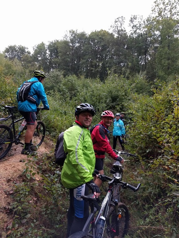 Nous étions 9 ce matin au rendez-vous VTT ( et 2 en tenue de ville....) peu effrayés par la bruine matinale. Partis pour trouver un accés à la descente du côteau des bois de Thoré la Rochette; ce fut une belle cyclo-découverte! On a beaucoup poussé, porté le vélo; glissé un peu ; essayé de réparer une manette de vitesse qui n'a pas résisté... on s'est bien amusé et pratiquement pas mouillé. Sur le retour , un petit passage à la bernache avec une grosse pensée pour Gilbert...qui aurait sûrement aimé trinquer avec nous!