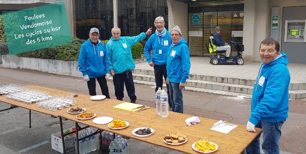 Grand changement cette année, l'ekiden redevient comme auparavant, les foulées Vendômoises. Marée humaine sur la place de la Liberté d'où toutes les courses démarrent. Une quarantaine de cyclos, des fidèles chapeautés par Jean-Claude, toujours prêts à donner un coup de main pour cette grande manifestation. M.Jo