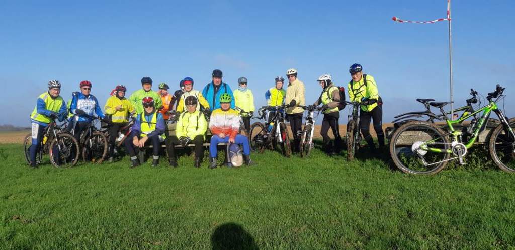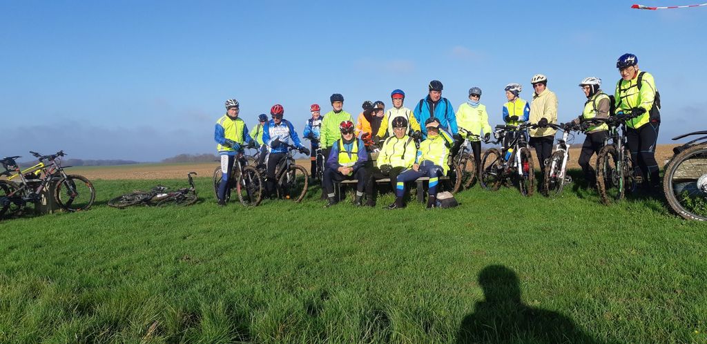 Ce mardi matin 3 décembre trés dur de partir pour le VTT. Il fait froid,mais 20 courageux sont là, prêts à affronter cette température. Ca commence bien, nous démarrons par la côte des Cavelots. Une bonne mise en jambes qui nous réchauffe. Et ce sera ça toute la matinée, montées, descentes et pas les moindres. Une superbe matinée avec un ciel bleu et le soleil, dommage, notre photographe, Gérard nous a tous surpris un vrai coup de fusil, son pneu a éclaté et impossible de réparer. Le pauvre a du rentrer à pied..