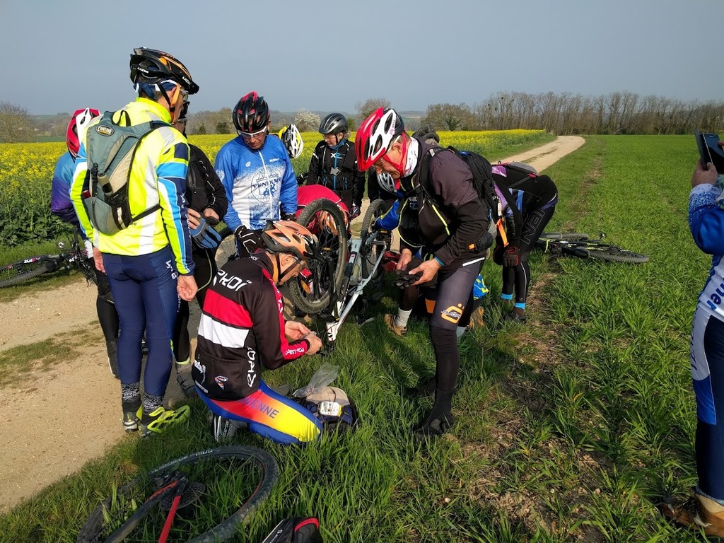 Belle matinée de VTT et belle solidarité; quand ma chaîne a cassé,à 2 reprises, j'ai apprécié d'avoir des co-équipiers compétents , avec une trousse de dépannage bien garnie; de vrais pros...Merci les copains...