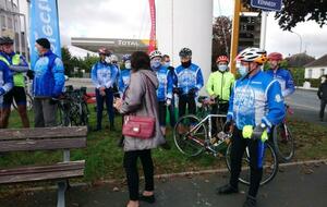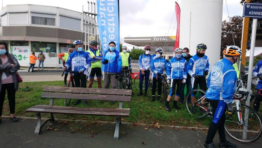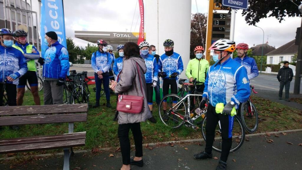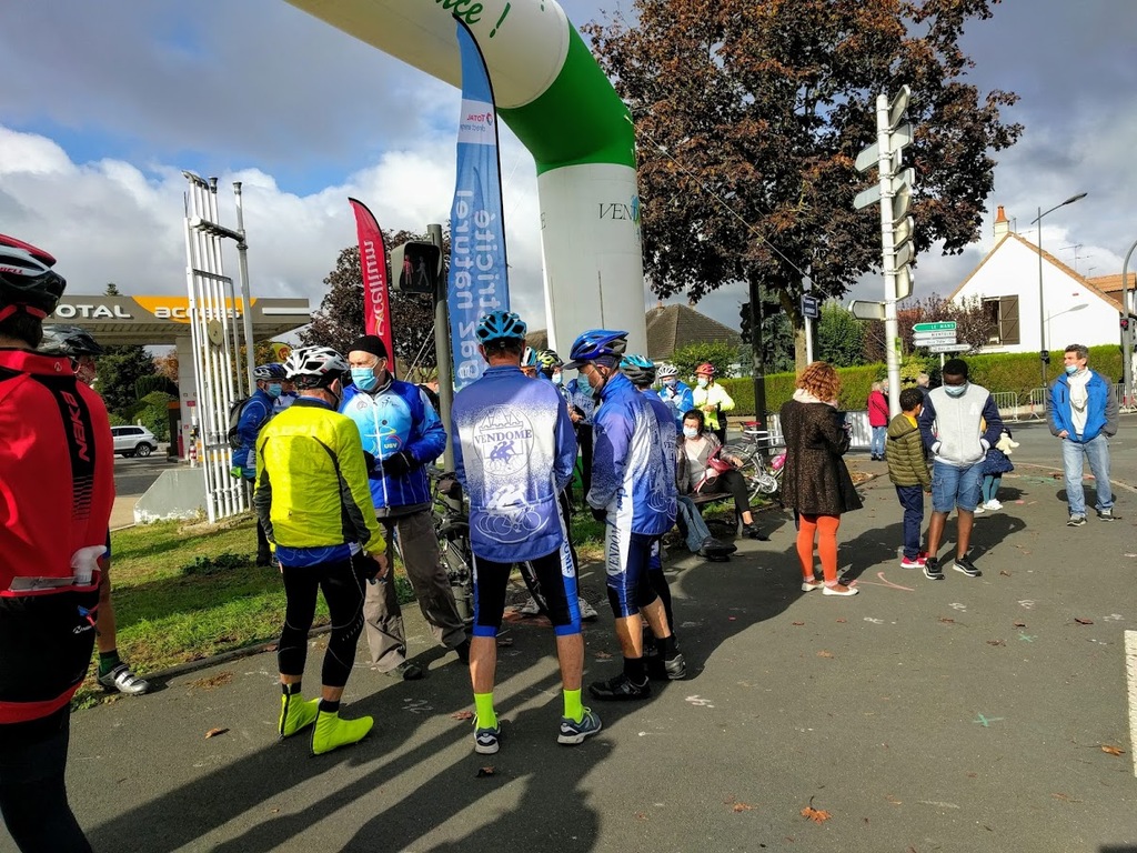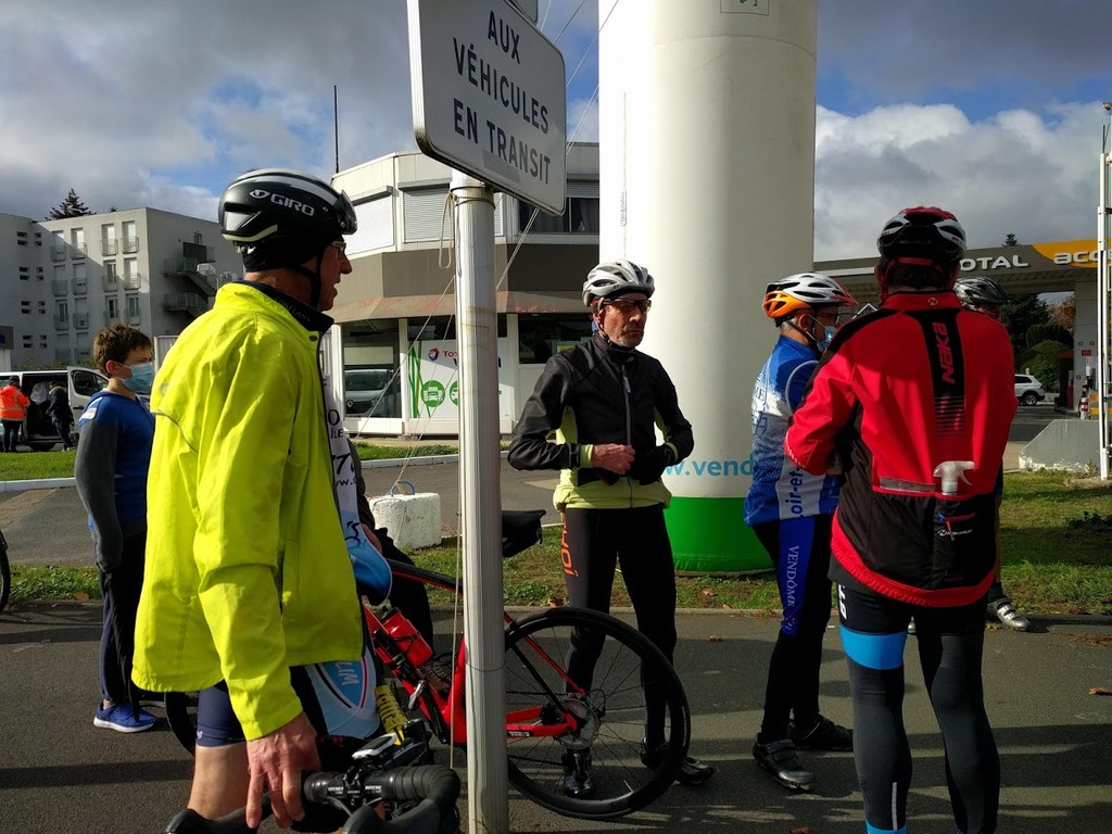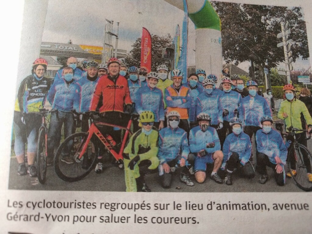 Nous étions 26 au départ à 8h30 ce dimanche matin vite répartis en 2 groupes. A la Ville aux Clercs, notre groupe de 16 a pris l'option de couper en rentrant par Busloup, St Firmin pour arriver sans se brusquer et avant que tous les accès à l'animation soient condamnés. Sage décision, nous étions à 11h, attendus par des cyclos n'ayant pas roulé, tous masqués et bien garnis, à la station Total pour le passage des Espoirs où nous avons assisté à une belle chute (sans gravité) du dernier de la course; occasionnée par la plaque d'égout juste devant la station. Le délai d'attente avant le passage des Elites nous a permis, de rencontrer Mr Mercier adjoint chargé des Sports à la ville, de profiter de l'animation proposée par Total, partenaire de la course. Nous avons aussi accueilli parmi nous quelques vététistes du club, le groupe de Jacky Poulleau et 5 cyclos du groupe des costauds déjà rentrés en ayant effectué tout le parcours! Un peu avant midi, les coureurs sont arrivés ; il était temps, avec le vent et le gros nuage bien menaçant nous commencions à avoir froid. Bien placés à l'extrémité de la ligne droite avant le virage pour accéder au boulevard Kennedy, nous avons été impressionnés par la vitesse du peloton et leur adresse pour effectuer le virage à cette vitesse, aussi serrés et sans aucun accrochage. Entre le casque, les lunettes et le masque, nous avions bien du mal à nous reconnaître mais nous avons passé un bon moment. Merci à tous les cyclos qui ont participé. Nicole