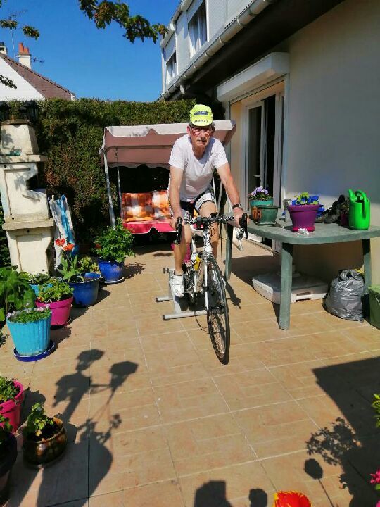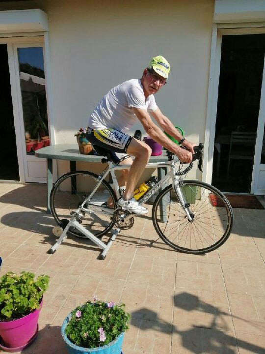 Un gentil cyclo a répondu à mon appel, voyez comme il est heureux parmi les fleurs et le grand ciel bleu. Quand ils vont décider de nous laisser sortir, il ne fera peut-être pas si beau.