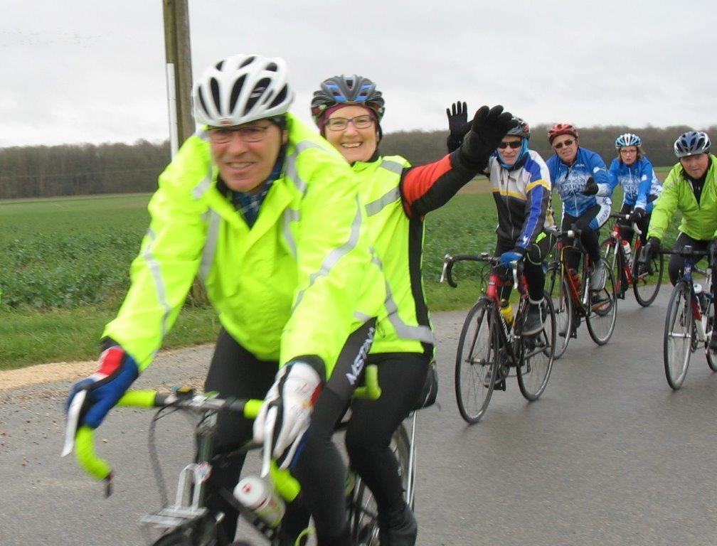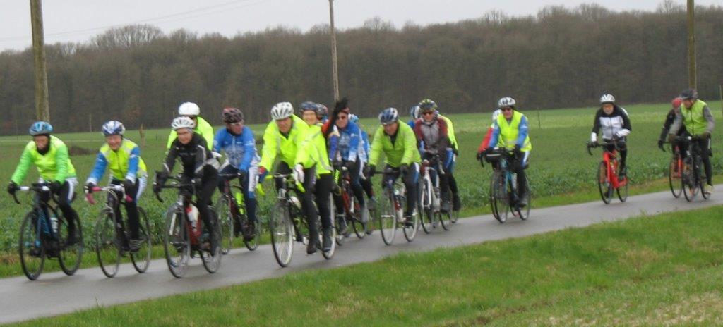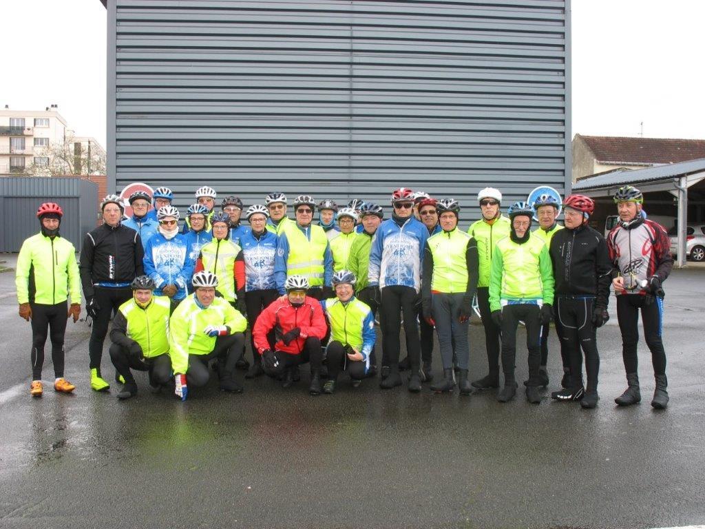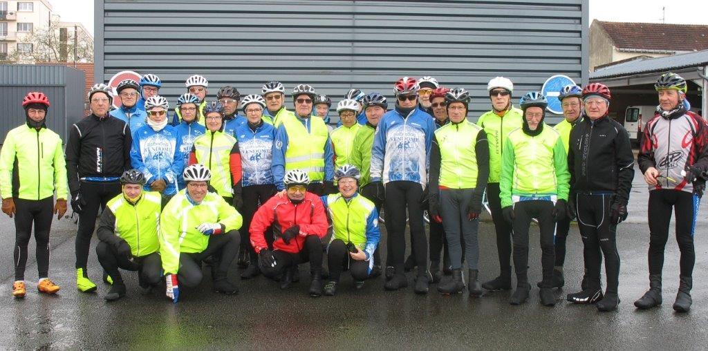 Difficile encore cette année de démarrer cette première sortie avec ce temps maussade. A 9 h, quand même, petite accalmie, nous pouvons ainsi, faire la photo de ce premier pas 2020. 32 personnes sont présentes, dont 6 femmes. Perplexes devant ce temps noir qui se profile,nous partons, direction Saint-Ouen, le groupe se sépare suivant la distance choisie. Nous faisons 20 km tranquillement, en se disant "super on a échappé à la pluie" eh non les vingts autres kilomètres ça tombe, doucement au début et en approchant de Vendôme, de plus en plus fort. Quelle barbe !!!Trempés. La tête de veau prévue ce midi va en réchauffer plus d'un. Vivement les beaux jours.
