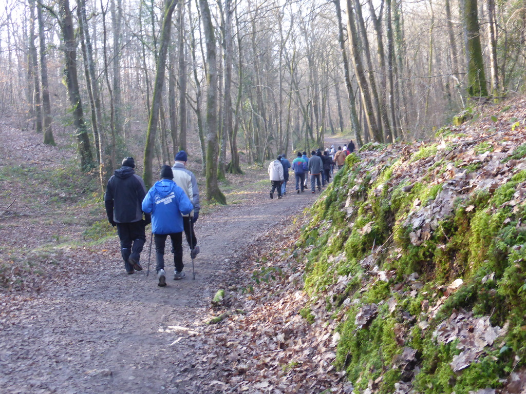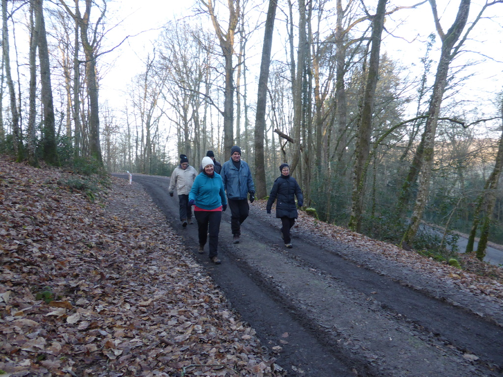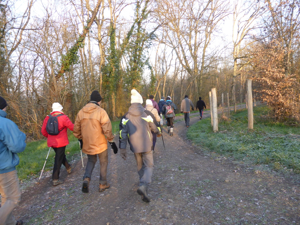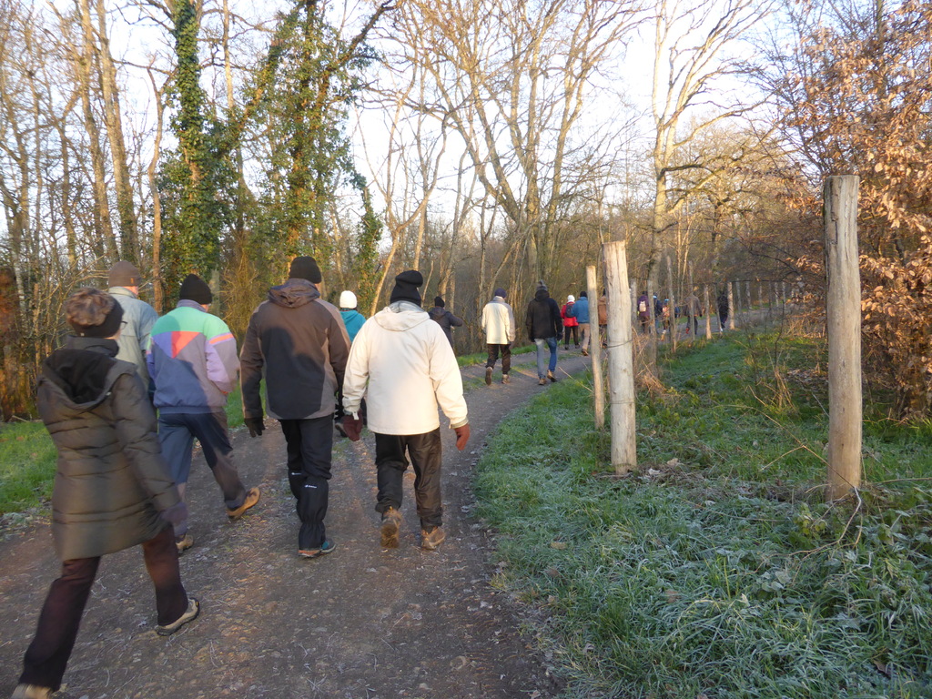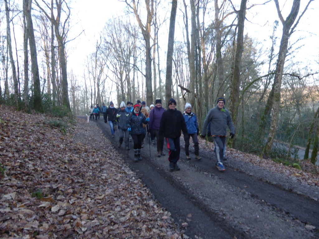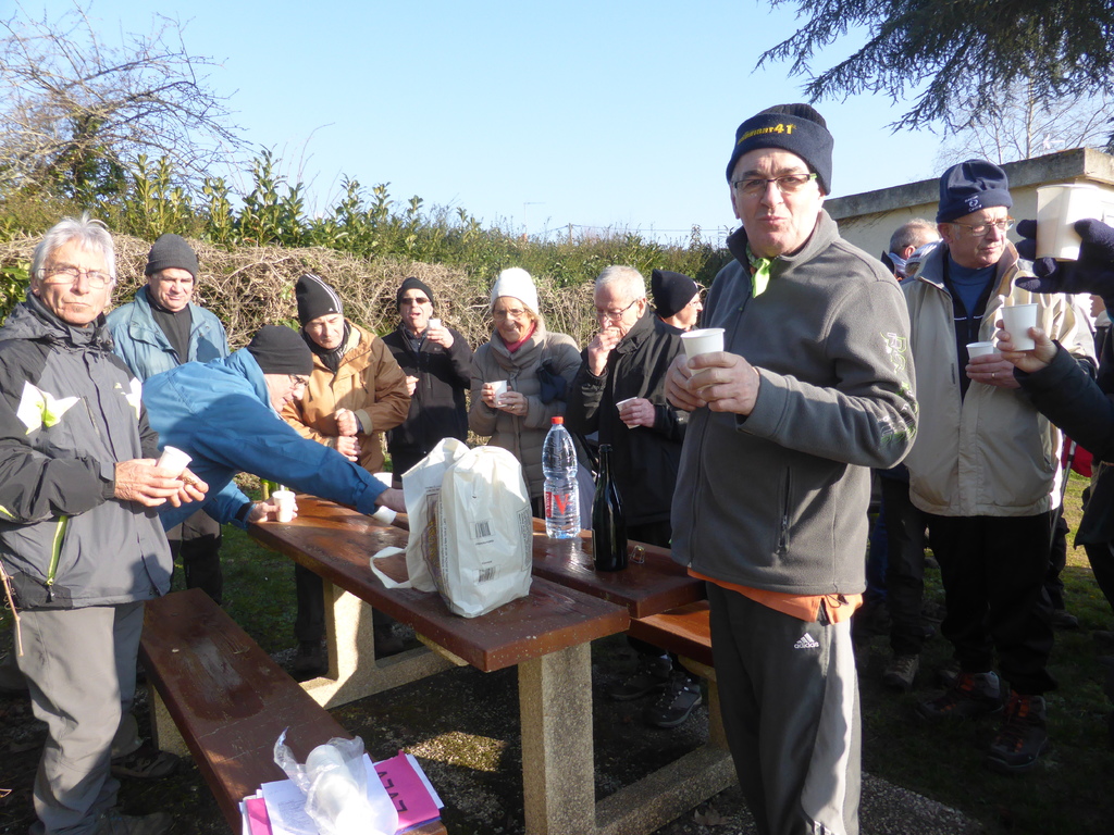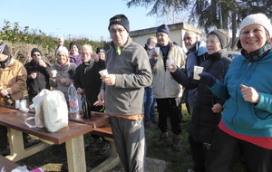 Ce matin,22 janvier, nous avons effectué une petite marche d'entraînement, en vue de la rando de la chandeleur du 02 février. Nous avons surtout voulu profiter du très beau temps. Il faisait froid mais la côte du départ nous a vite réchauffés. Une trentaine de courageux ont sillonné la forêt de l'oratoire. Le terrain n'était pas gras et quelle chance nous n'avions pas de chaussures boueuses. Au retour, Nono nous offrait un verre de cidre et des gâteaux pour arroser son anniversaire. Merci Nono, agréable matinée.