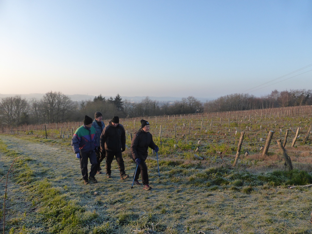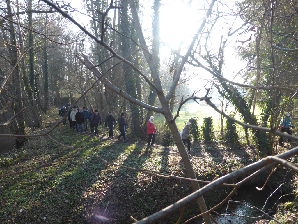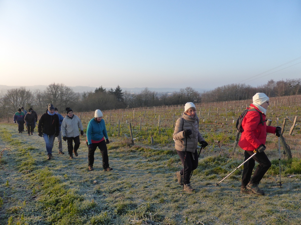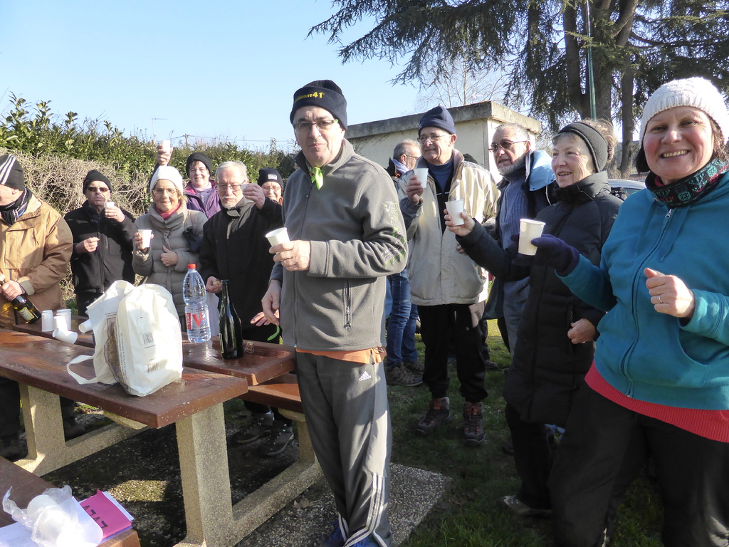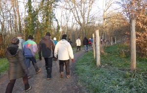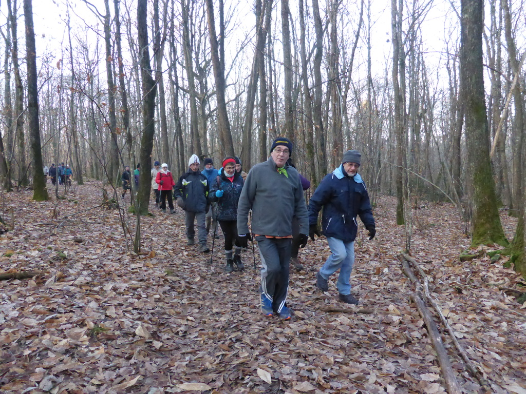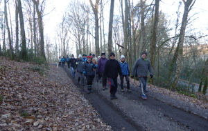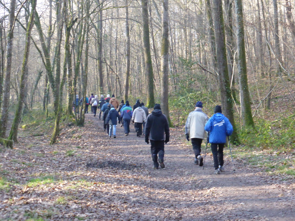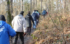 Ce matin,22 janvier, nous avons effectué une petite marche d'entraînement, en vue de la rando de la chandeleur du 02 février. Nous avons surtout voulu profiter du très beau temps. Il faisait froid mais la côte du départ nous a vite réchauffés. Une trentaine de courageux ont sillonné la forêt de l'oratoire. Le terrain n'était pas gras et quelle chance nous n'avions pas de chaussures boueuses. Au retour, Nono nous offrait un verre de cidre et des gâteaux pour arroser son anniversaire. Merci Nono, agréable matinée.