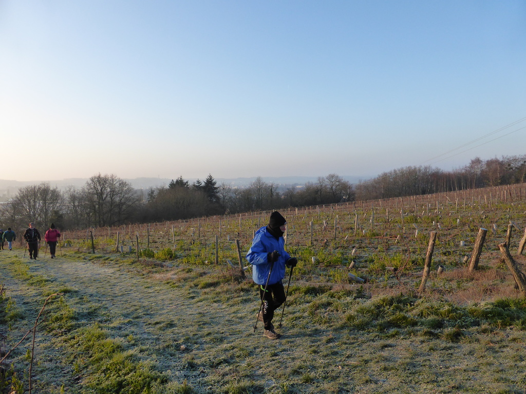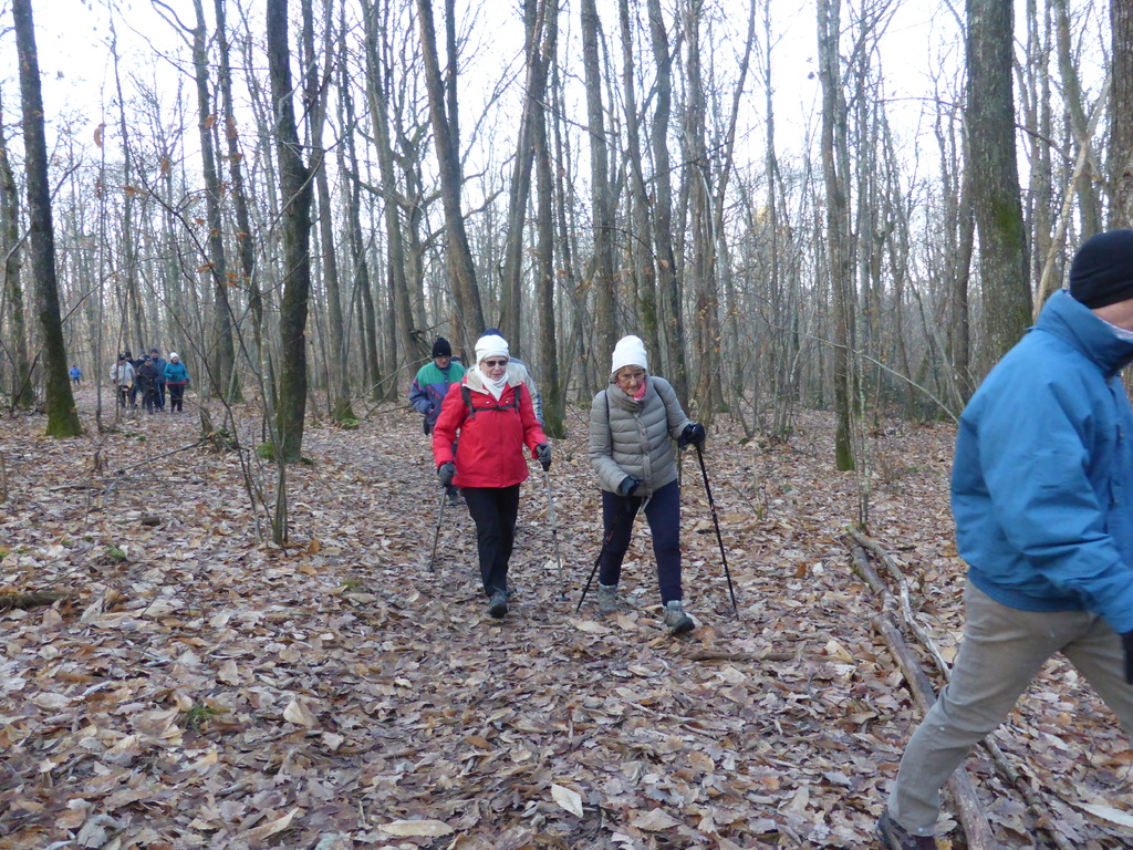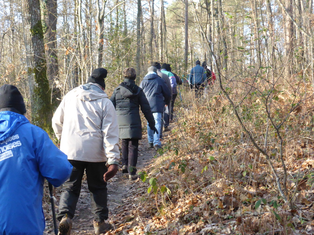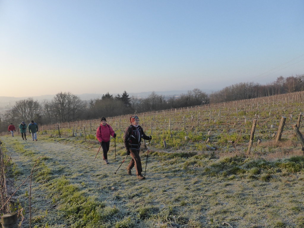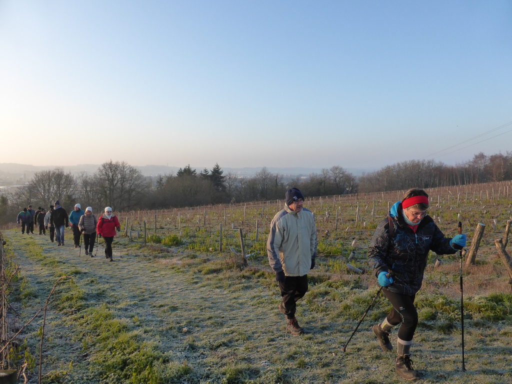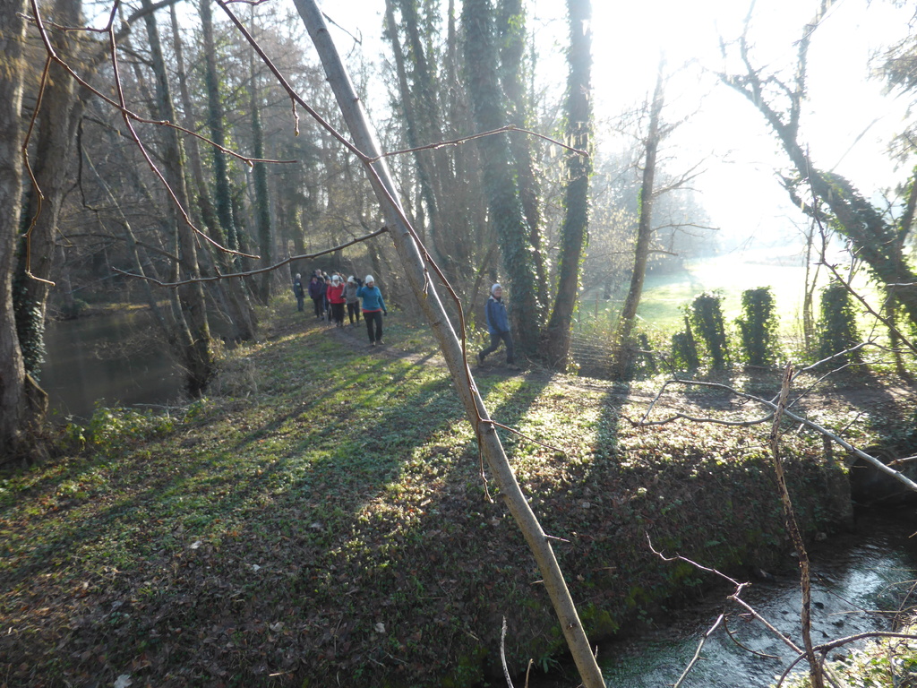 Ce matin,22 janvier, nous avons effectué une petite marche d'entraînement, en vue de la rando de la chandeleur du 02 février. Nous avons surtout voulu profiter du très beau temps. Il faisait froid mais la côte du départ nous a vite réchauffés. Une trentaine de courageux ont sillonné la forêt de l'oratoire. Le terrain n'était pas gras et quelle chance nous n'avions pas de chaussures boueuses. Au retour, Nono nous offrait un verre de cidre et des gâteaux pour arroser son anniversaire. Merci Nono, agréable matinée.