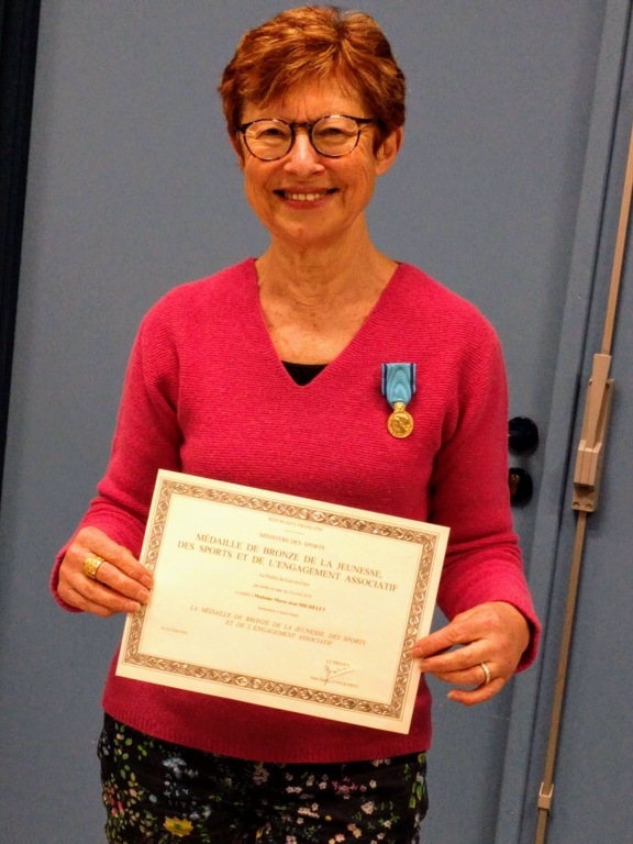 Belle distinction pour Marie-Jo qui s'est vue remettre la Médaille de bronze de La Jeunesse, des Sports et de l'Engagement Associatif.