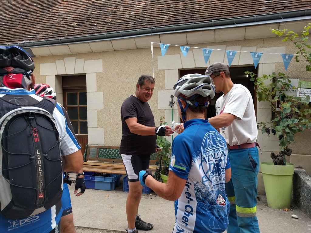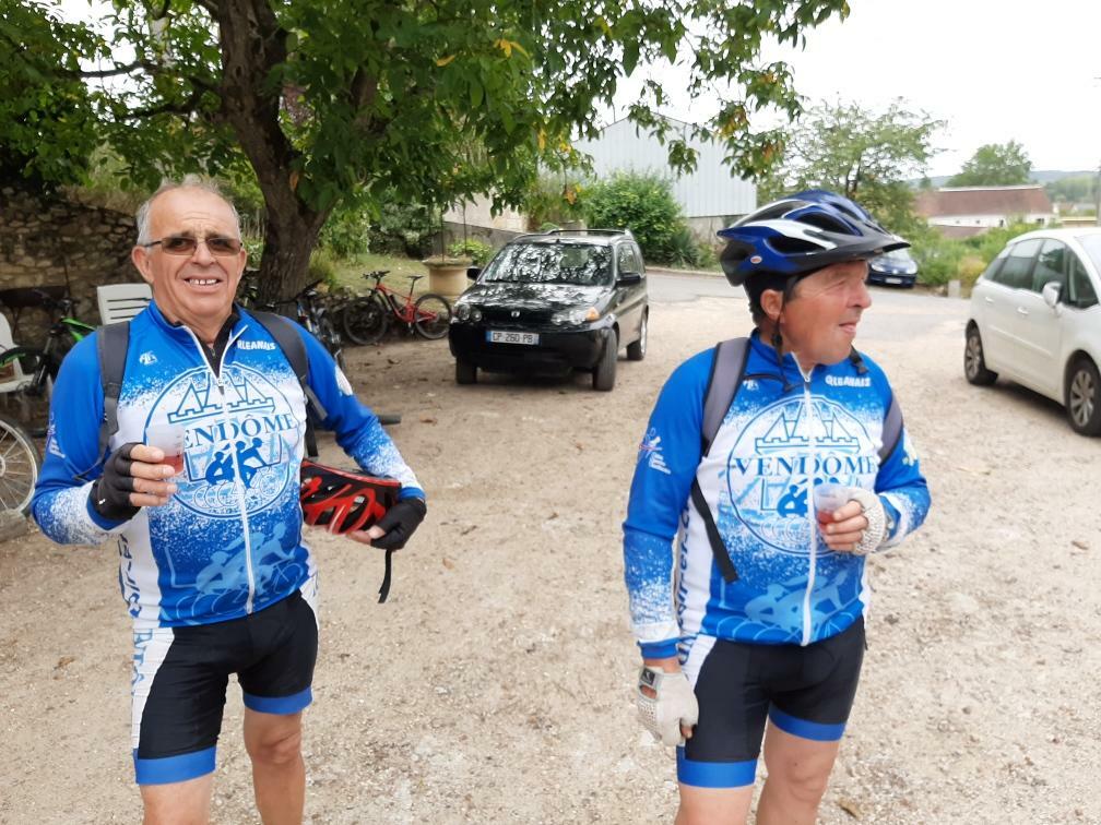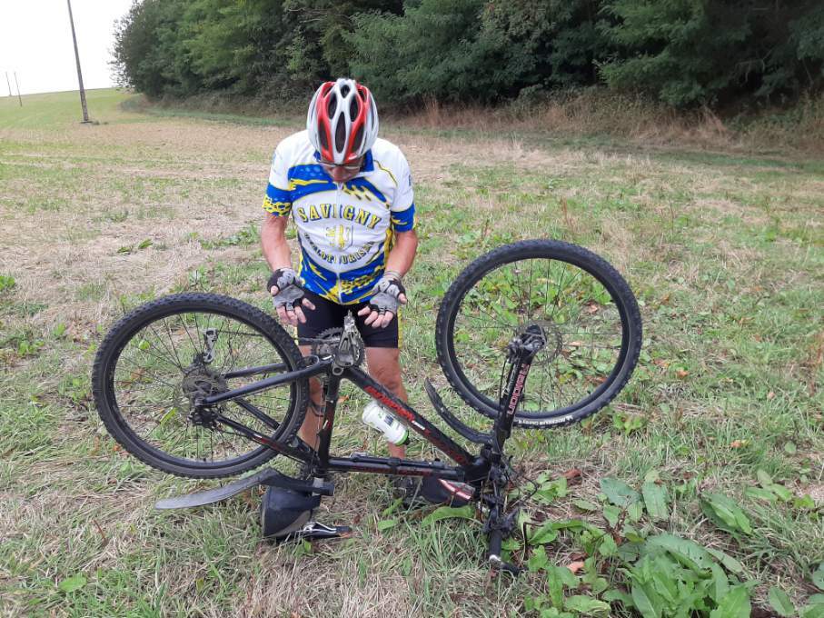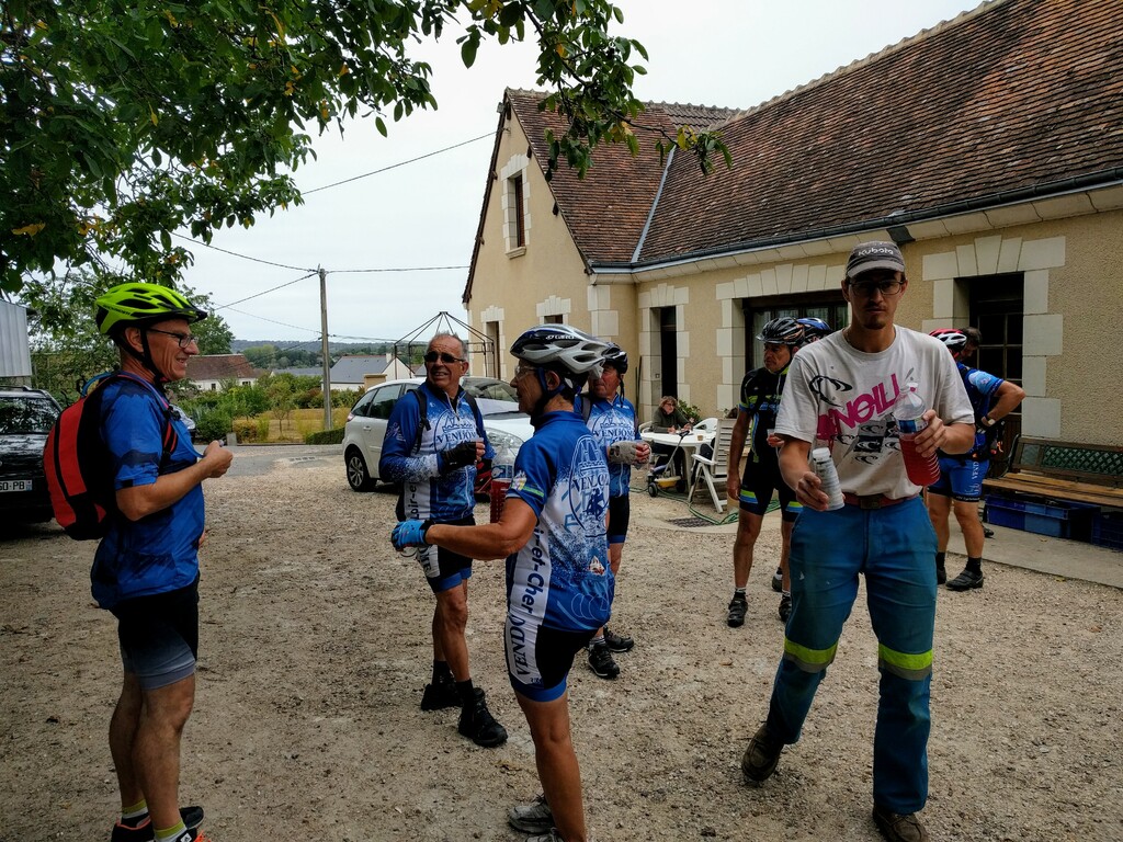 Un bon groupe pour la rentrée ce matin. Après un départ laborieux ; un pneu avec une éventration à réparer avant de partir ; un étourdi parti sans son sac gourde et obligé de repartir la chercher nous faisant ainsi faire un petit détour fatal à J.Louis victime de crevaisons qui a dû nous abandonner. Heureusement le reste du parcours bien sec et bien poussiéreux s’est ensuite bien déroulé. Belle balade autour de La Jousselinière avec quelques bons dénivelés et direction Les Bellezéveries, les Hauts de Azé et bien sûr direction Villiers pour une première tournée de bernache bien appréciée à la cave Jumert que Marie-Jo avait repéré en rentrant du circuit dimanche…. Et pour bien finir, un retour par les petites bosses de Villiers, les hauts de Montrieux. Un bon petit tour de 33km dans la bonne humeur.