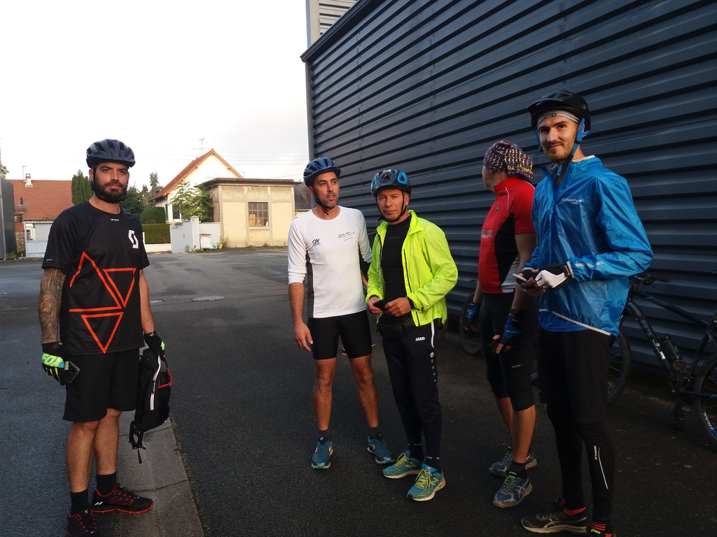 Une bonne vingtaine de vététistes, munis de leur ravito donné à l’inscription, partaient en petits groupes après nous sur le parcours VTT de 30Km.