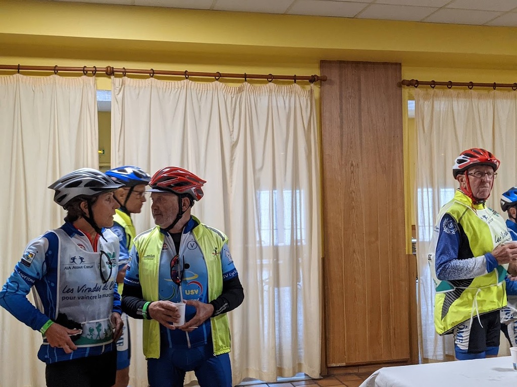 Merci aux bénévoles des Virades qui nous ont bien aidé pour les inscriptions ; merci à tous les participants d’avoir franchi le pas du retour en groupe, d’avoir respecté la consigne « du rouler en groupe ».