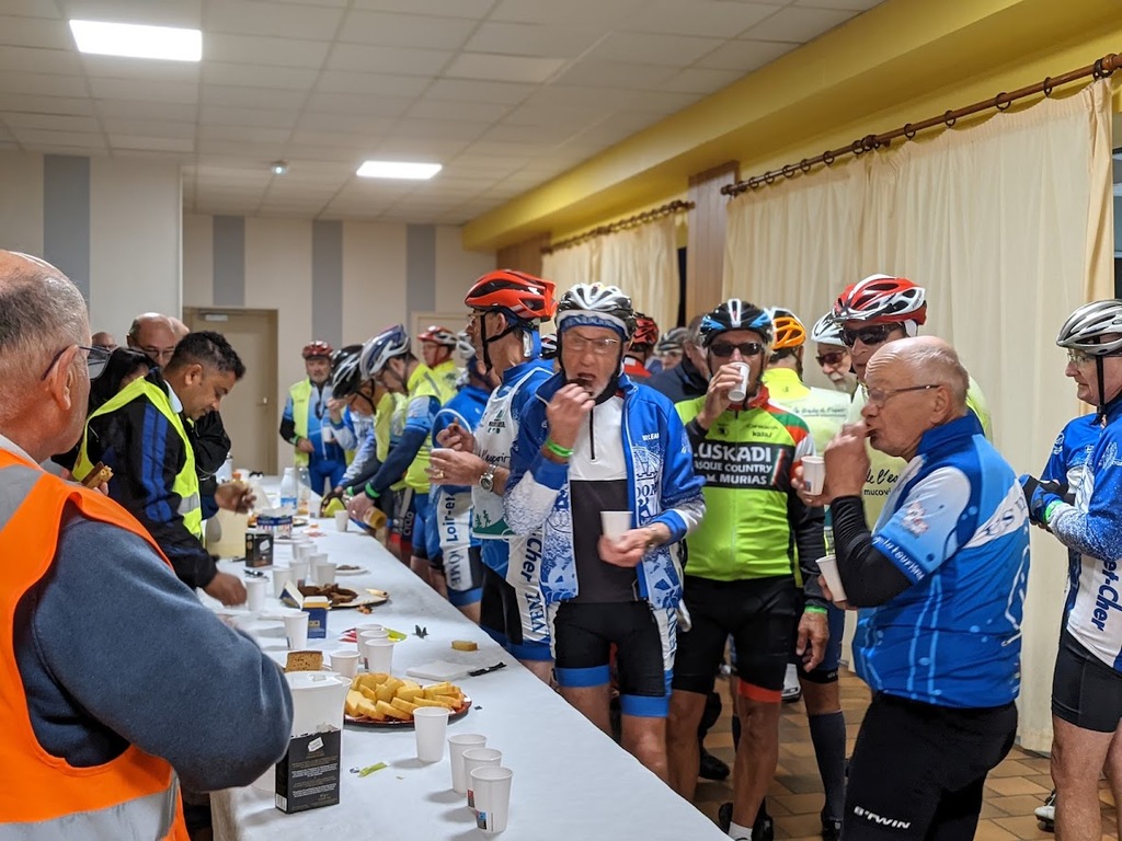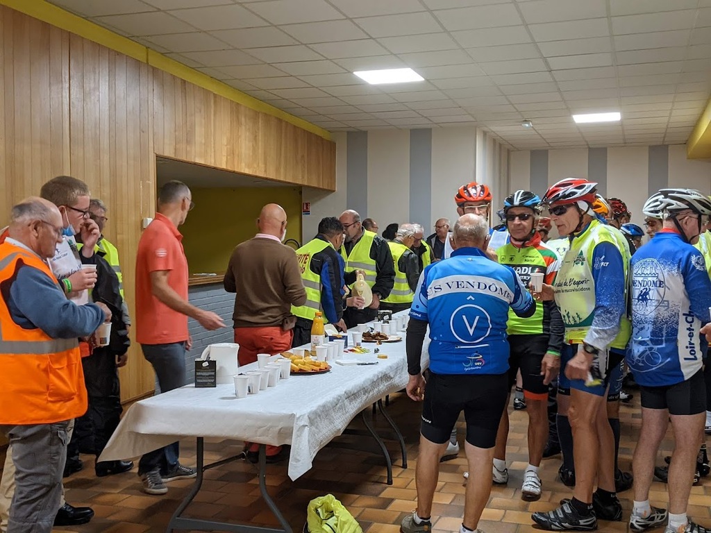 Les bénévoles de Montoire parmi lesquels Mr Visse et le maire étaient heureux de nous accueillir et nous avaient préparé un bon ravito où avec le plaisir des retrouvailles nous sommes restés un bon moment.