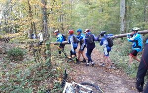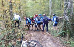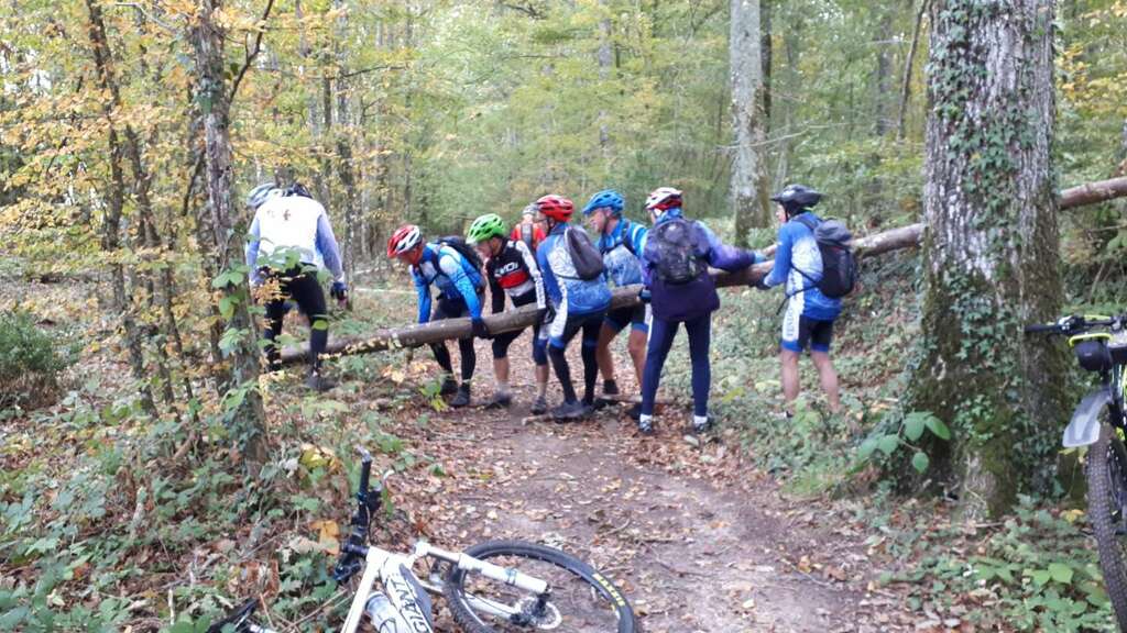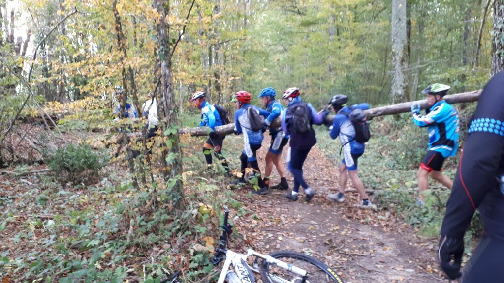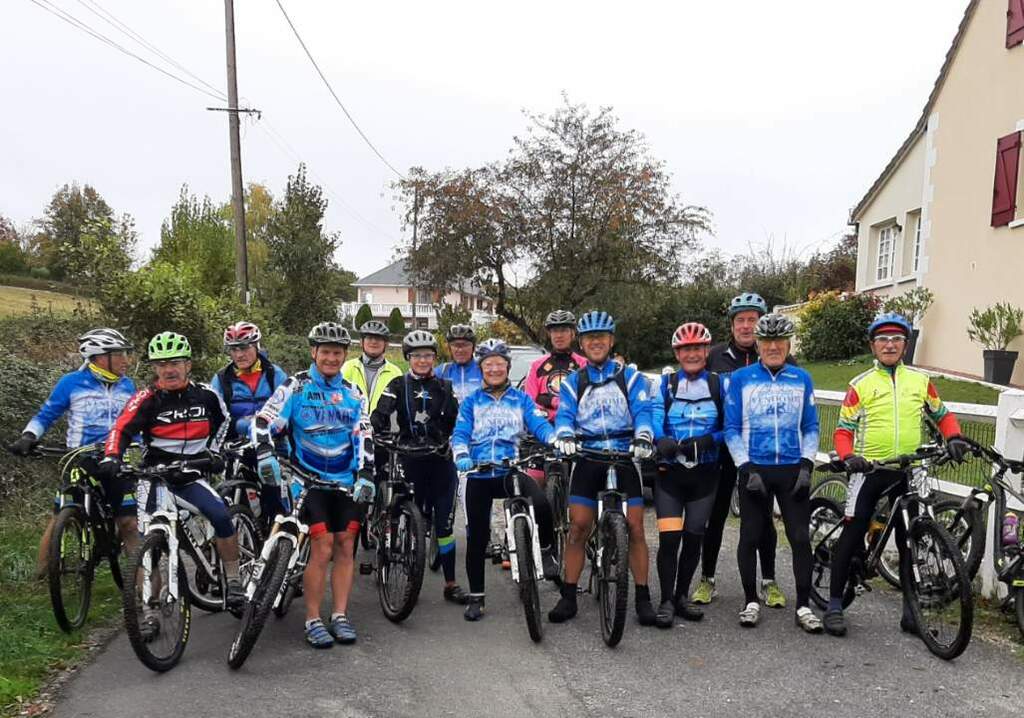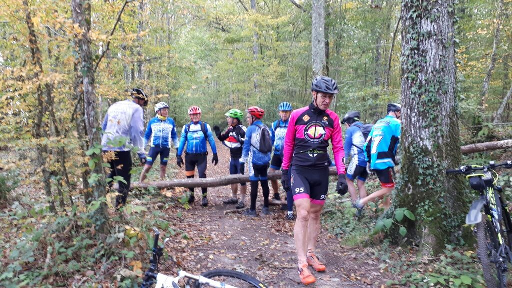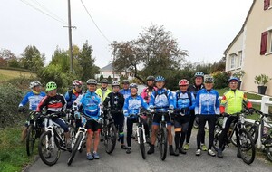 Ce matin, mardi 26/10/2021, nous sommes 20 cyclos à partir reconnaître les circuits VTT de la Champalu. Nous partons sur la boucle du petit circuit, à la sortie de la forêt nous bifurquons sur une boucle de 10 km vers la Jousselinière. De belles côtes et retour aux Bellezéveries où sera le ravitaillement. Nous repartons direction Azé, descendre pour remonter, c'est l'habitude. Les "gros bras" enlèverons les arbres qui jonchent les allées. Nous rentrons par les hauts de Courtiras avec un petit arrêt devant chez Gérard où nous prenons la photo. Nous avons passé une bonne matinée avec toujours une très bonne ambiance.