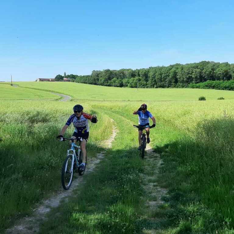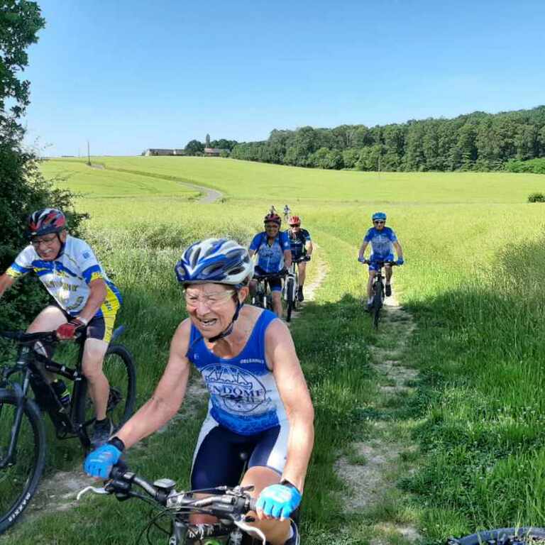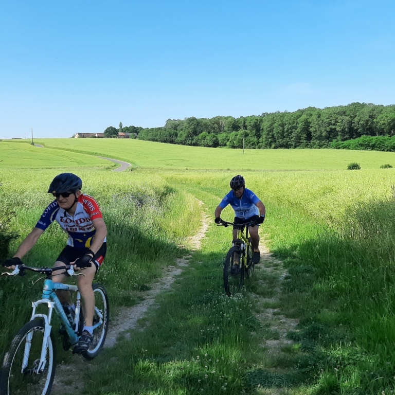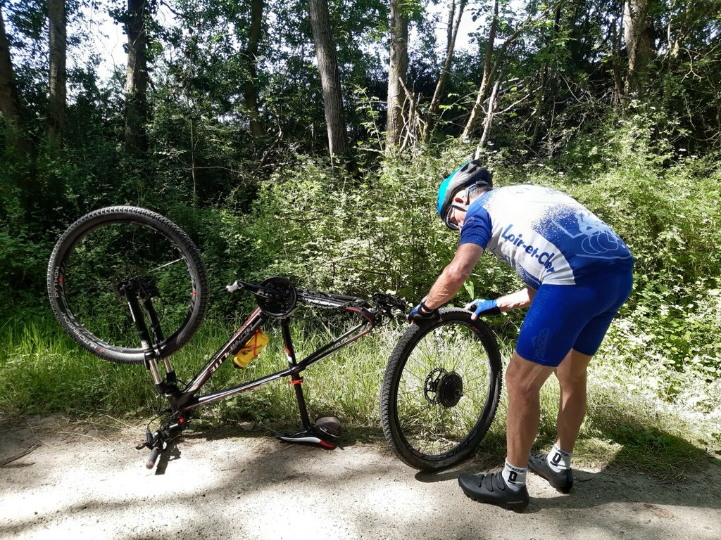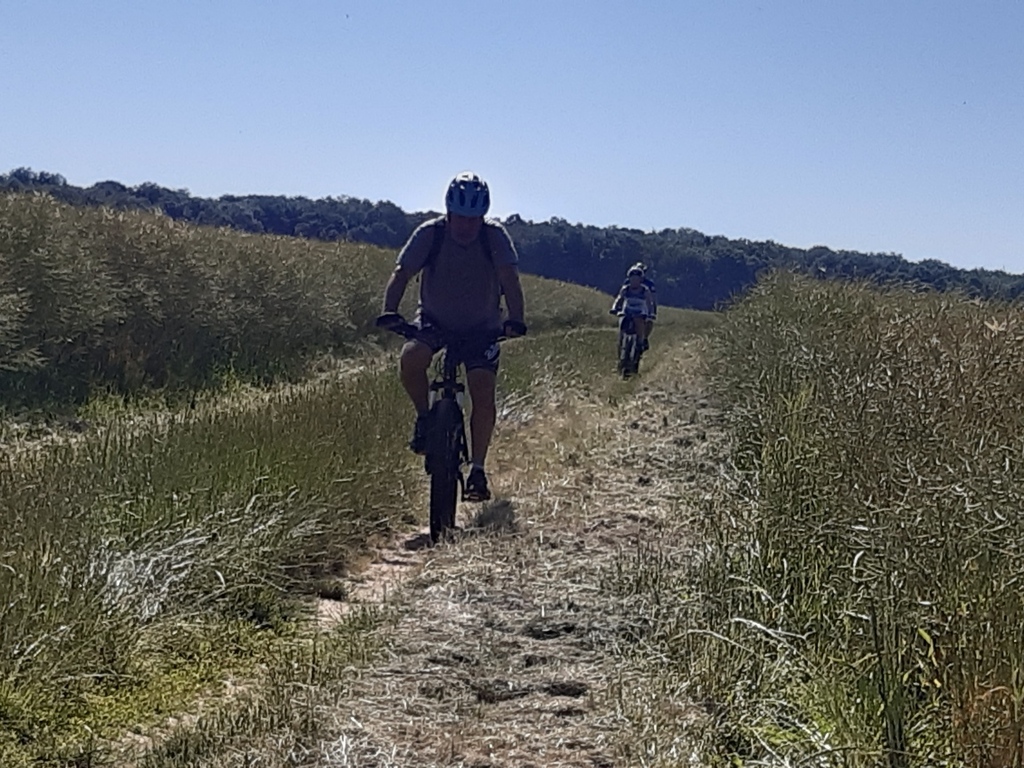 Belle randonnée ce matin mardi 15 juin, nous avons un temps formidable et une bonne équipe de 10 personnes.. Pourtant nous avons eu beaucoup d'imprévisibles.Une crevaison au départ nous fera démarrer légèrement plus tard, ensuite nous perdons Bernard dès la première montée dans la forêt , nous faisons demi-tour et les portables fonctionnent. Une fois retrouvé, nous roulons enfin normalement. Nous empruntons des sentiers très herbeux et pas très carrossables si bien que nous déplorons deux chutes, sans importance bien sûr, plutôt risibles. Sur le retour encore une crevaison, le sort s'acharne contre nous mais après tout, nous avons le temps et ce ne sont que des colibets à l'encontre de celui qui a crevé. Très bonne matinée dans la bonne humeur. M.Jo