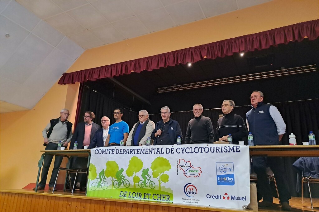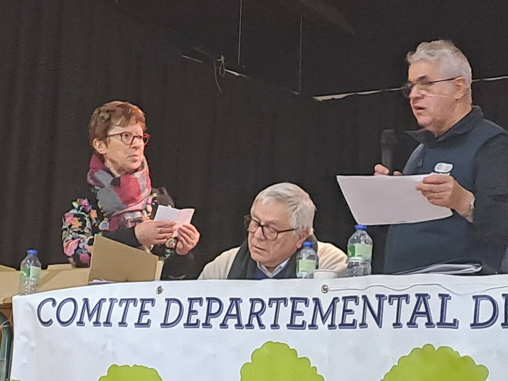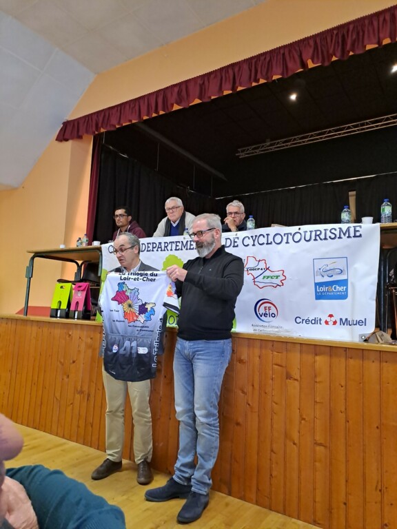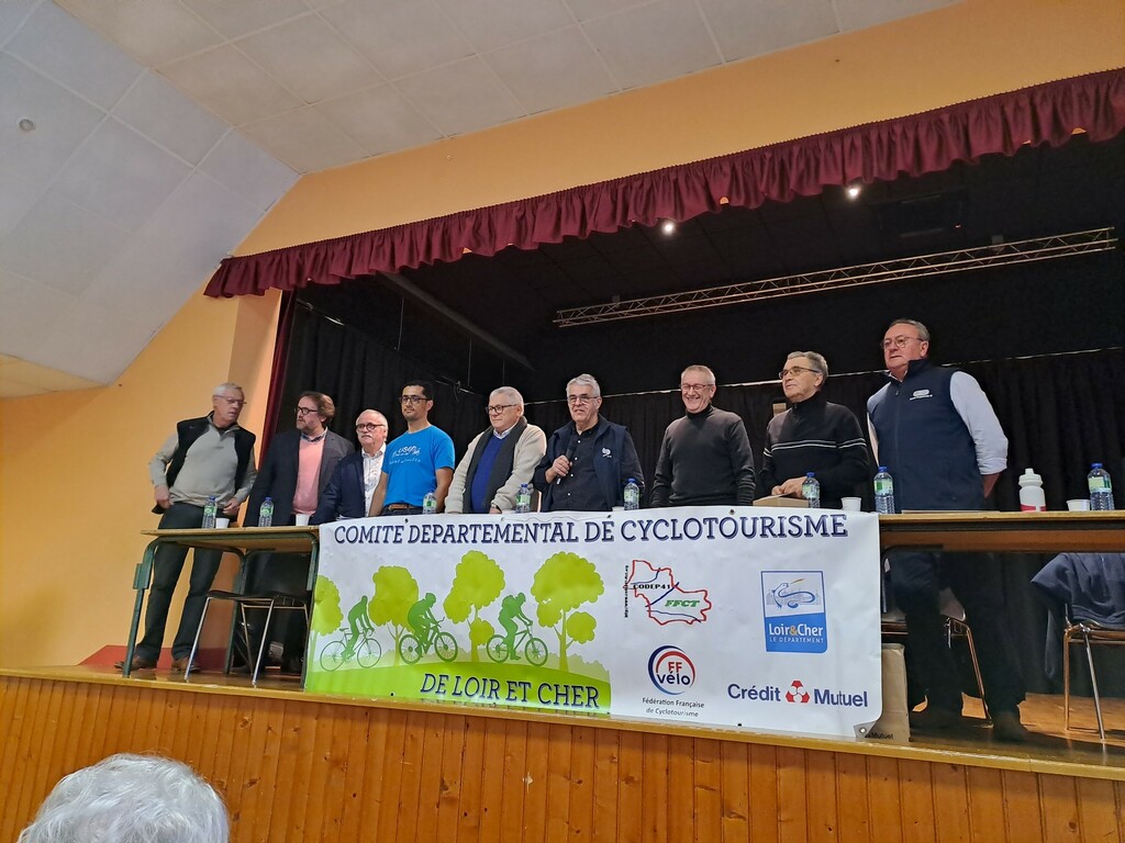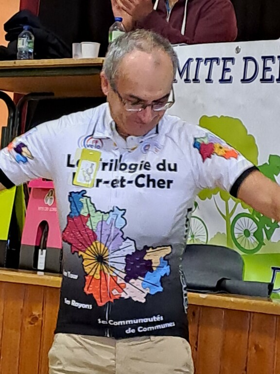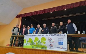 Samedi 26 novembre 2022 se tenait l'assemblée générale du Comité Départemental à Faverolles/Cher. Nous étions trois Vendômois à y participer. Une cinquantaine de personnes étaient présentes.A neuf heures l'assemblée est ouverte. Les rapports: moral ,activités et bilan financier sont détaillés. Nous passons aux récompenses. La priorité est donnée aux jeunes et suivent les grandes randonnées. Notre ami Vendômois, J.Pierre Mary passe Randonneur en or. Bravo J.Pierre. Un superbe maillot lui est offert. Les trois premiers gagnants du challenge se voient remettre un chèque pour leur club, nouvelle formule remplaçant les coupes "nid à poussière". Une tombola était proposée, juste à noter nos noms. J'ai eu la lourde charge de tirer les trois gagnants, je ne suis pas tombée sur Vendôme dommage. L'apéritf et le repas clôturaient cette matinée bien agréable. M.Jo