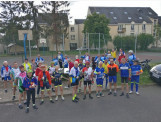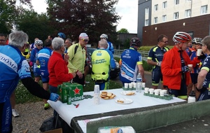 Partie de Monthlery pour un périple de 4 jours, 725kms et 6600m D+, la randonnée "La Monthlérienne" lutte contre la dystonie, faisait étape à Vendôme. Ce sont presque 60 cyclos et cyclotes qui participent à cette randonnée caritative et avec les organisateurs, nous avions convenu de les accompagner pour leurs quarante derniers kilométres. Répartis en deux groupes, nous étions une bonne trentaine à partir à leur rencontre et la jonction s'est réalisée en amont de Cloyes. C'est donc un peloton compact de 90 cyclos, très bien encadré et sécurisé par une voiture ouvreuse et des motards brevetés qui a traversé Cloyes, La ville aux clercs, Danzé pour arriver au foyer Kennedy oû des rafraichissements bienvenus, offert par notre club, attendaient. tous les participants.