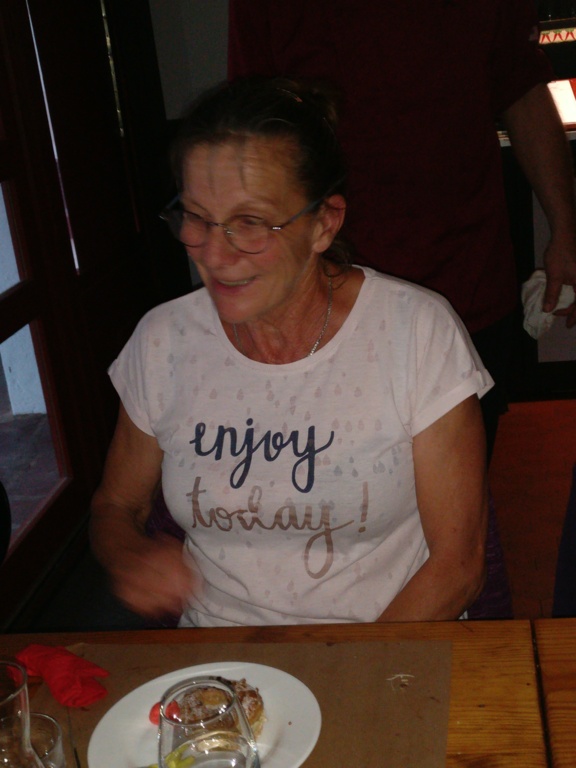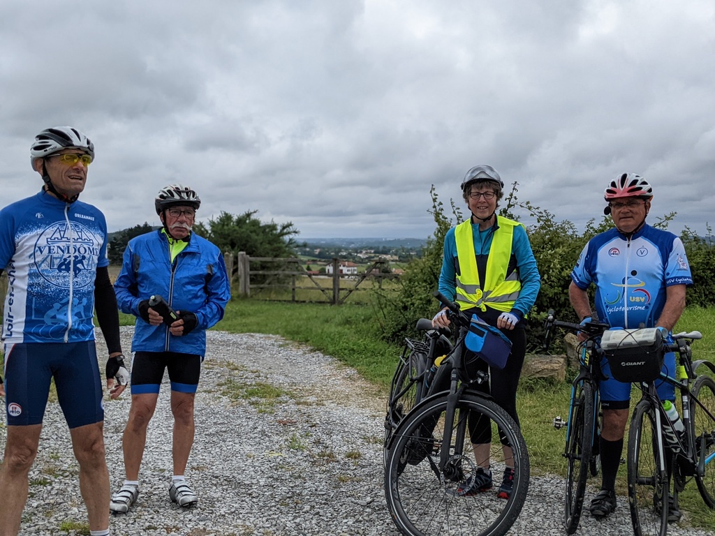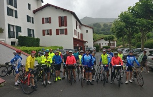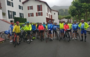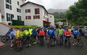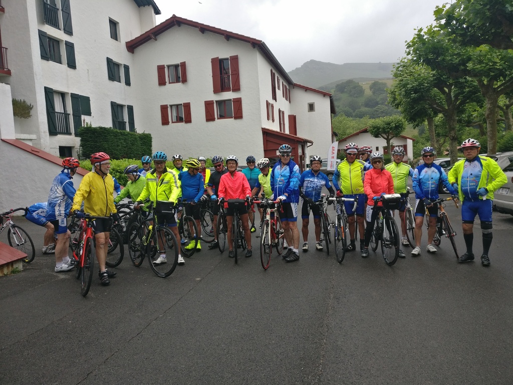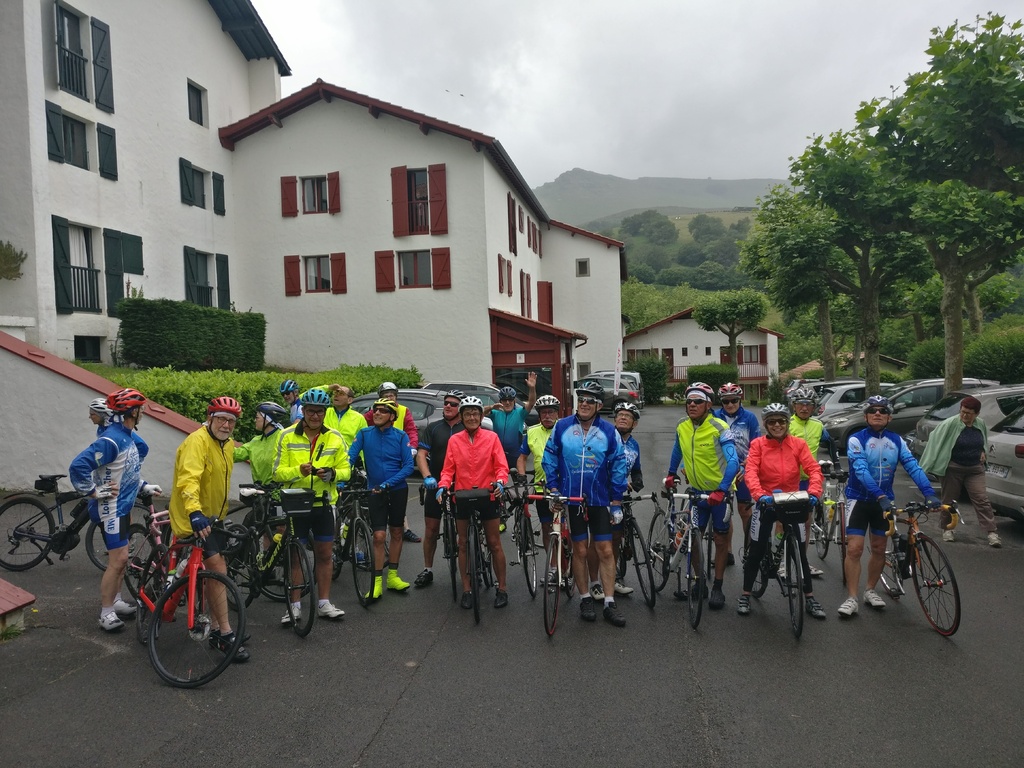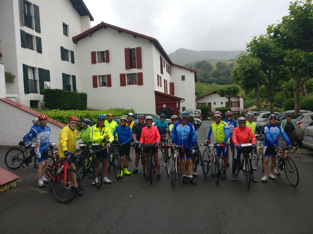Petit matin bien gris et peu engageant ... Tout le monde décide de faire des visites ce matin et départ à 13h30. A midi, le soleil semble percer ; hélas à la sortie du resto c'est la pluie qui a fait son apparition.... heureusement les gouttes s'allègent rapidement et nous partons tous, confiants, à l'heure prévue mais sous une petite bruine et avec les vêtements de pluie. Répartis en 2 groupes , l'un prévoyant de faire la boucle complète et un petit groupe de 5 supprimant une boucle au départ, qui finalement feront le même parcours sous une alternance de bruine et soleil pâle, avec un bon petit vent sur le retour avec à l'arrivée environ 65km et 760m de dénivelé. Seuls 3 courageux; Philippe, Christian et Jacky S feront un écart pour monter une nouvelle fois le col de St Ignace. Et une belle soirée avec un anniversaire pour clôre cette bonne journée.