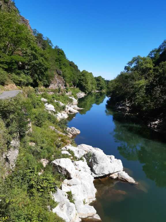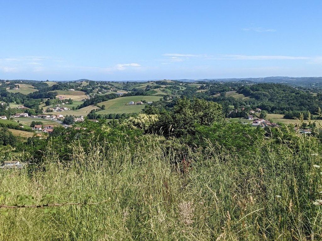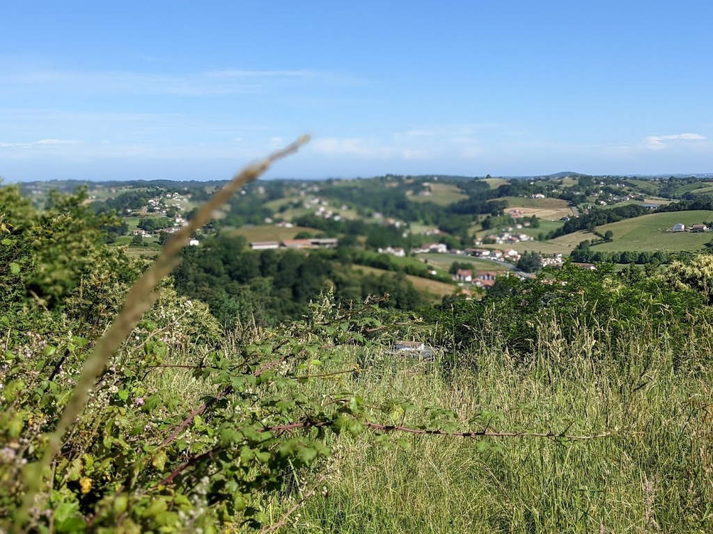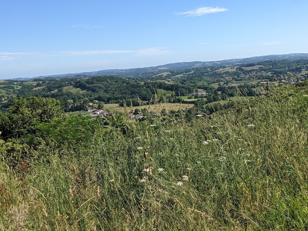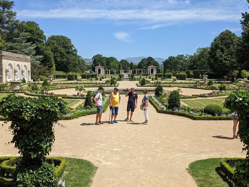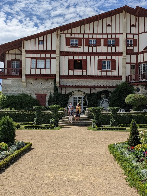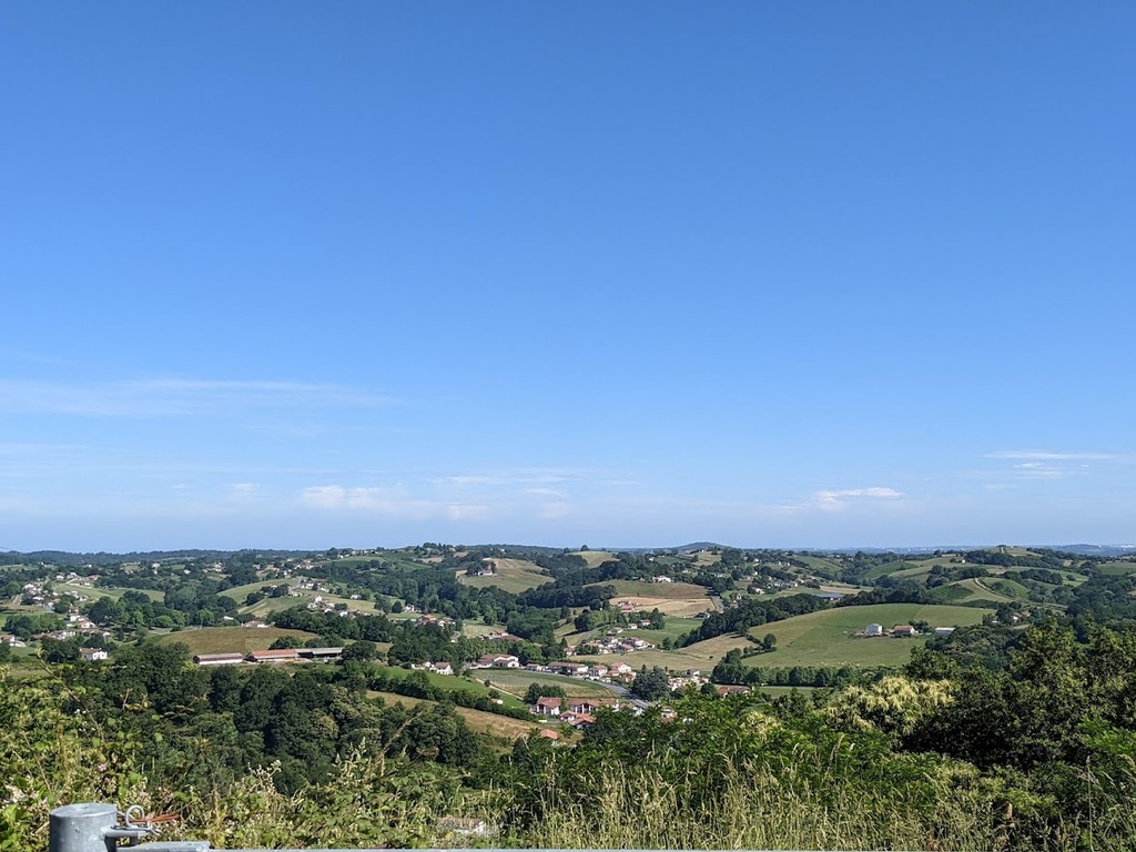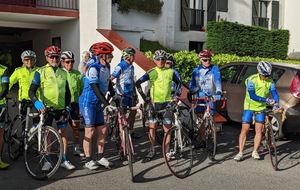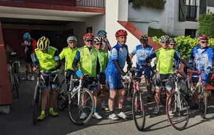 La journée d'hier a laissé des traces, nous n'étions que 15 ce matin prêts pour une sortie à gros dénivelés. Un groupe de 8 part devant et fera presque le tour complet avec des dénivelés répétitifs de 10 à 20% , des paysages grandioses dans le Pas De Roland mais fera l'impasse sur le dernier col (les jambes de Jacky S sont à bout de force..) avec quand même 72km et 1100m de dénivelé...Notre groupe de 7 part tranquille et roule jusqu'à Itxassou ; 30km sur une succession de petites bosses et préfère rejoindre le parcours au point de retour à Espelette avec un bon petit col de quelques km mais très pentu ; un bon passage à 14% mais la descente sera un pur bonheur...50km à l'arrivée et 660m de dénivelé. Parcours exigeants mais de l'avis de tous les rouleurs : les plus beaux paysages depuis le début de semaine et surtout un ciel magnifique et le retour de la chaleur. Après-midi visite ou marche pour tout le monde et on se retrouve pour un apéro- sangria bien bruyant pour l'anniversaire de Cécile suivi d'une belle surprise. en arrivant au repas : nous comptions sur une soupe à l'oignon, une escalope forestière et nous trouvons une belle table décorée avec l'énoncé du menu festif , sangria et petits fours, foie gras et compotée aigre-douce de mangue, filet mignon de veau aux cèpes et tagliatelles à l'encre de seiche, assiette de fromages du terroir et croquant poire-praliné...et bien sûr une bougie pour Cécile ; les dénivelés feront sûrement mal aux jambes demain .... mais quelle belle journée nous avons eue....