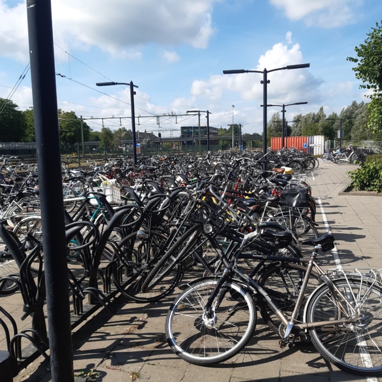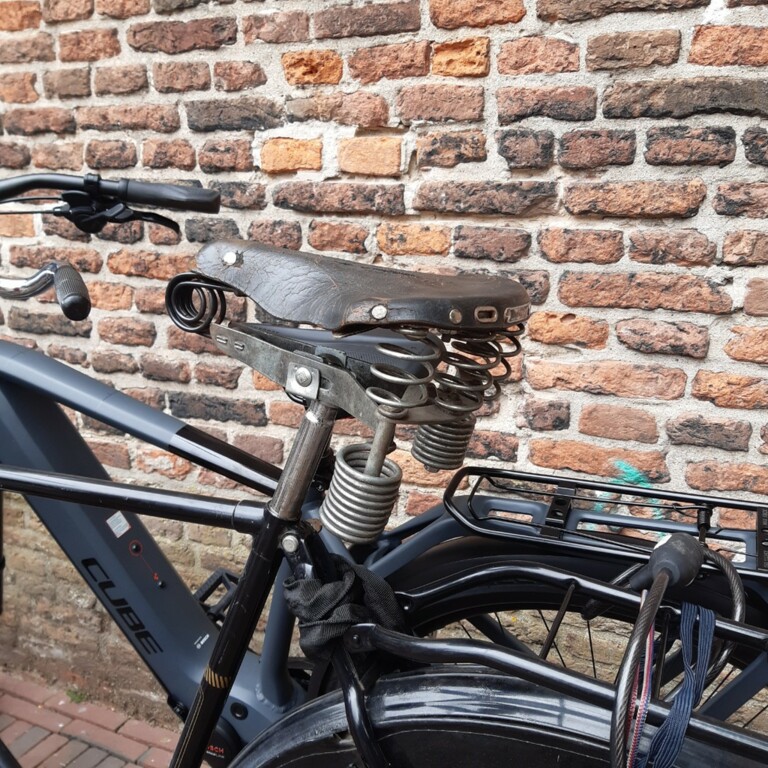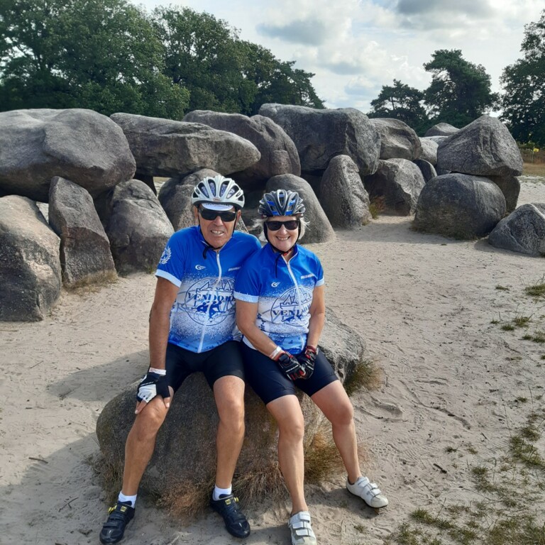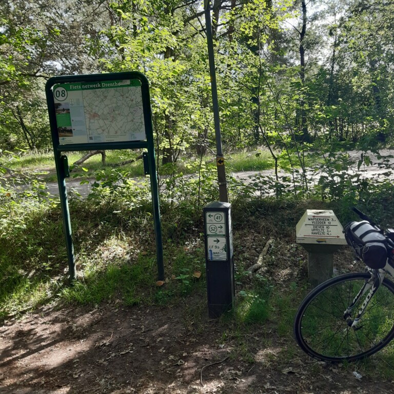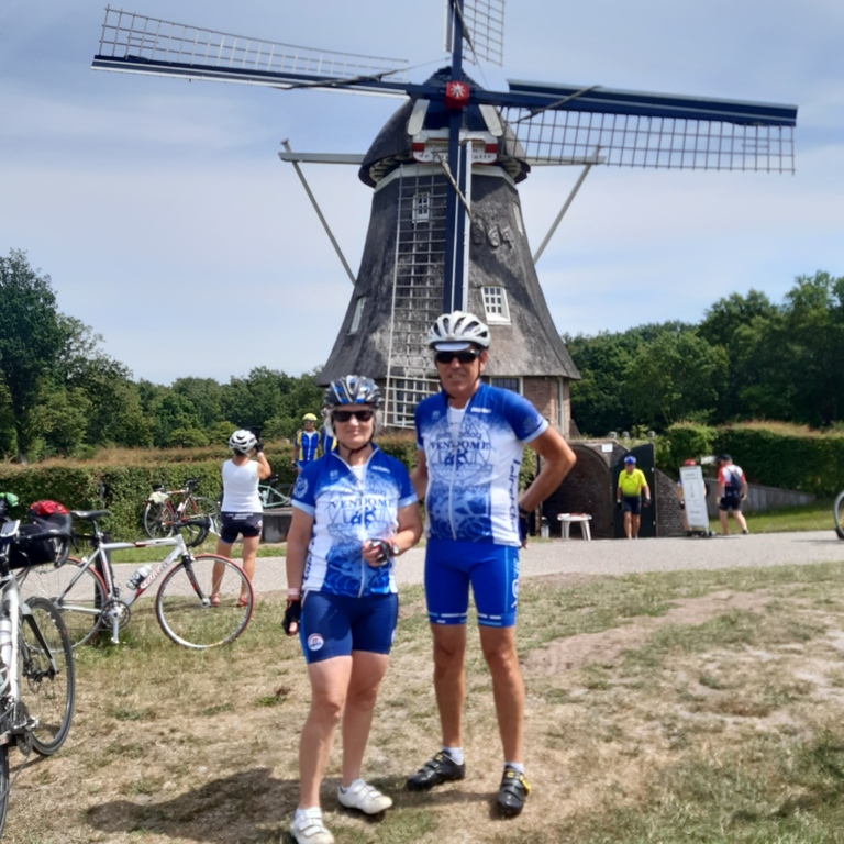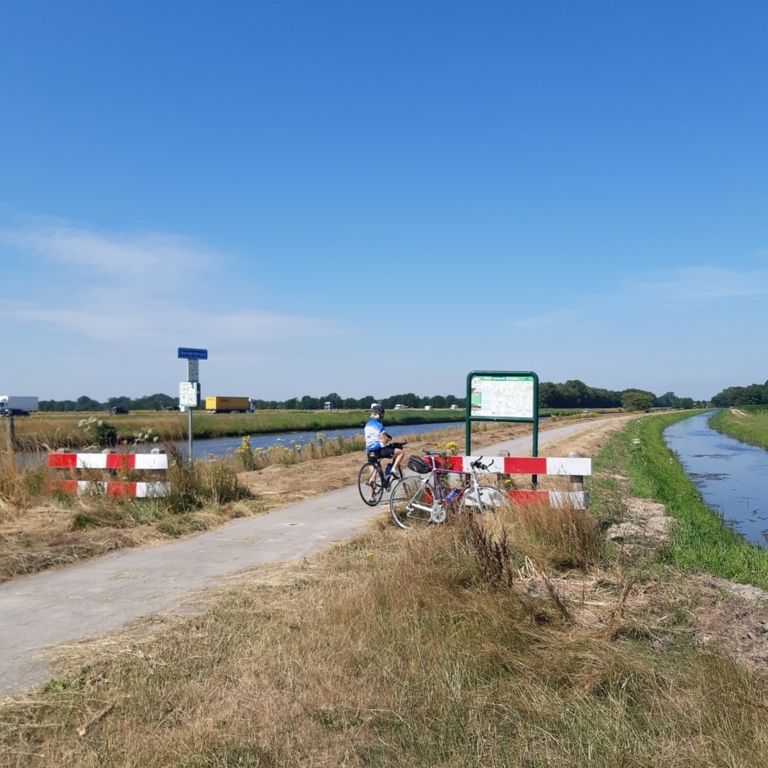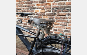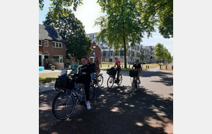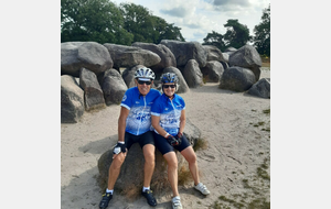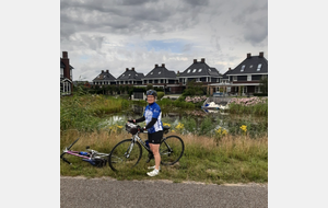 Mardi: Aujourd'hui toujours aussi plat (au moins 150m de dénivelé). Départ le long des voies d'eau, fermes et patûrages, la couleur des vaches est naturelle!! traversées de forêts où nous avons fait de nombreuses poses, la canicule locale est arrivée 27 degrés!!! et 78 km au compteur. Nous repartons demain à vélo pour d'autres découvertes, la pratique du tandem n'étant pas adaptée sur les voies cyclables et les chemins forestiers. Nous commençons à nous habituer à notre carte "IGN" hollandaise et ce n'est pas évident. Nous dénichons ce vélo avec une selle version confort en oubliant l'esthétique.