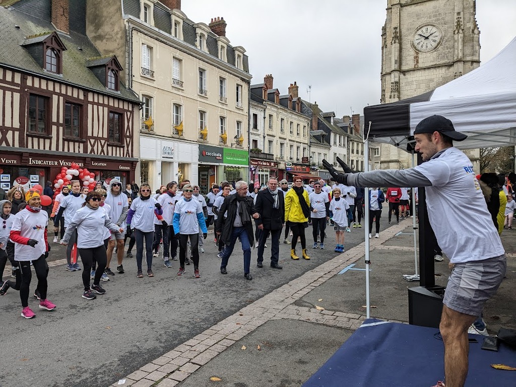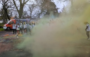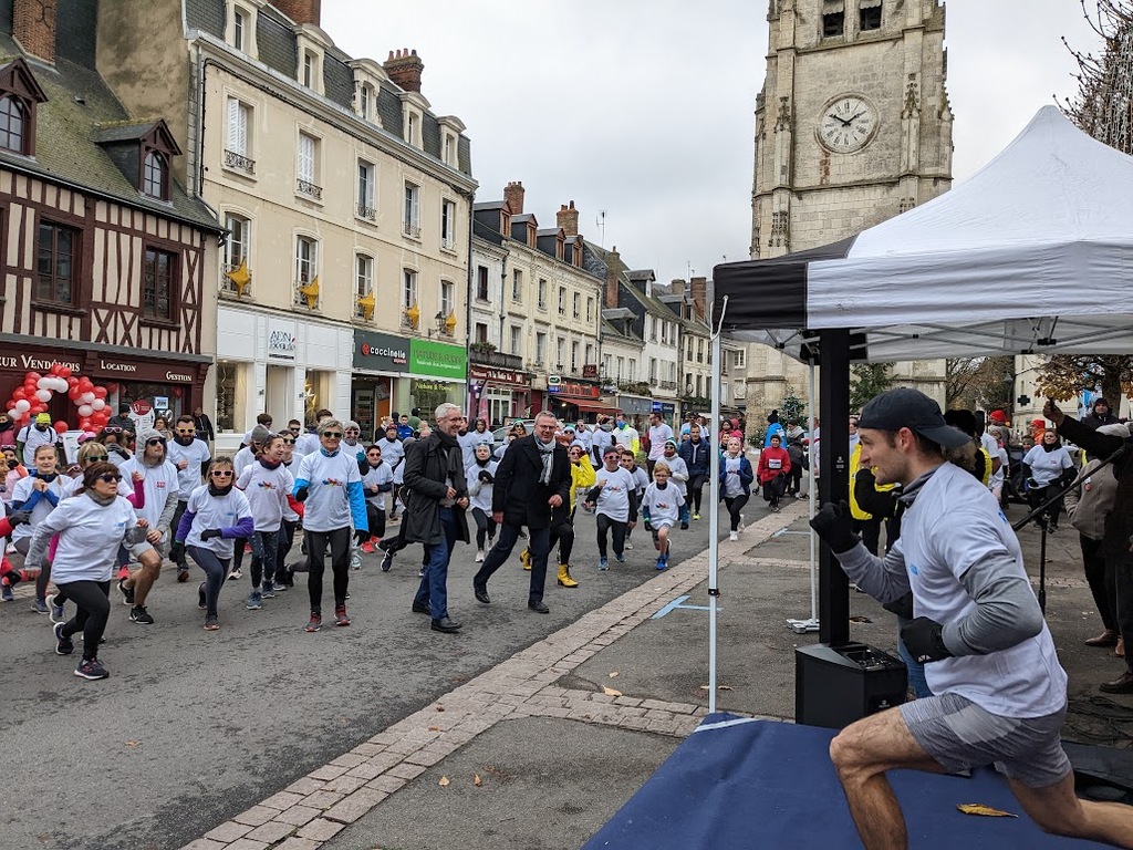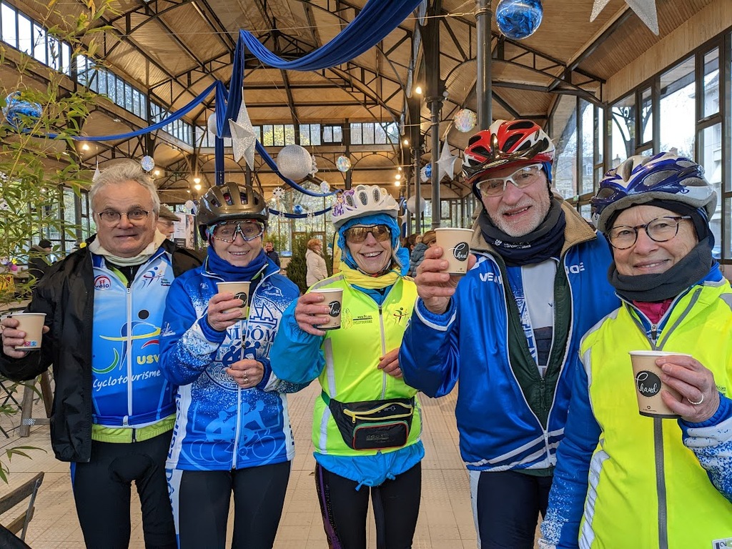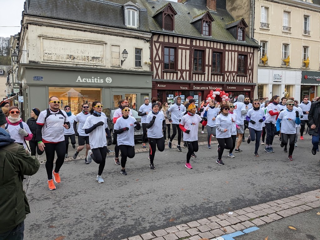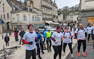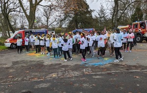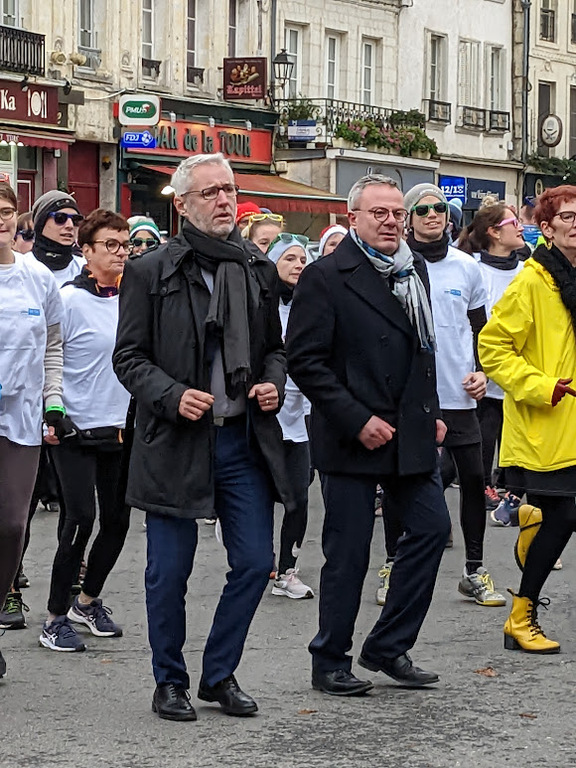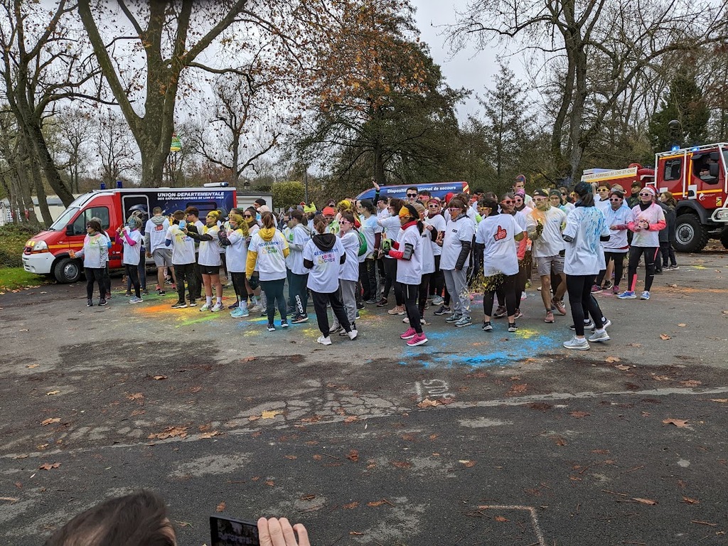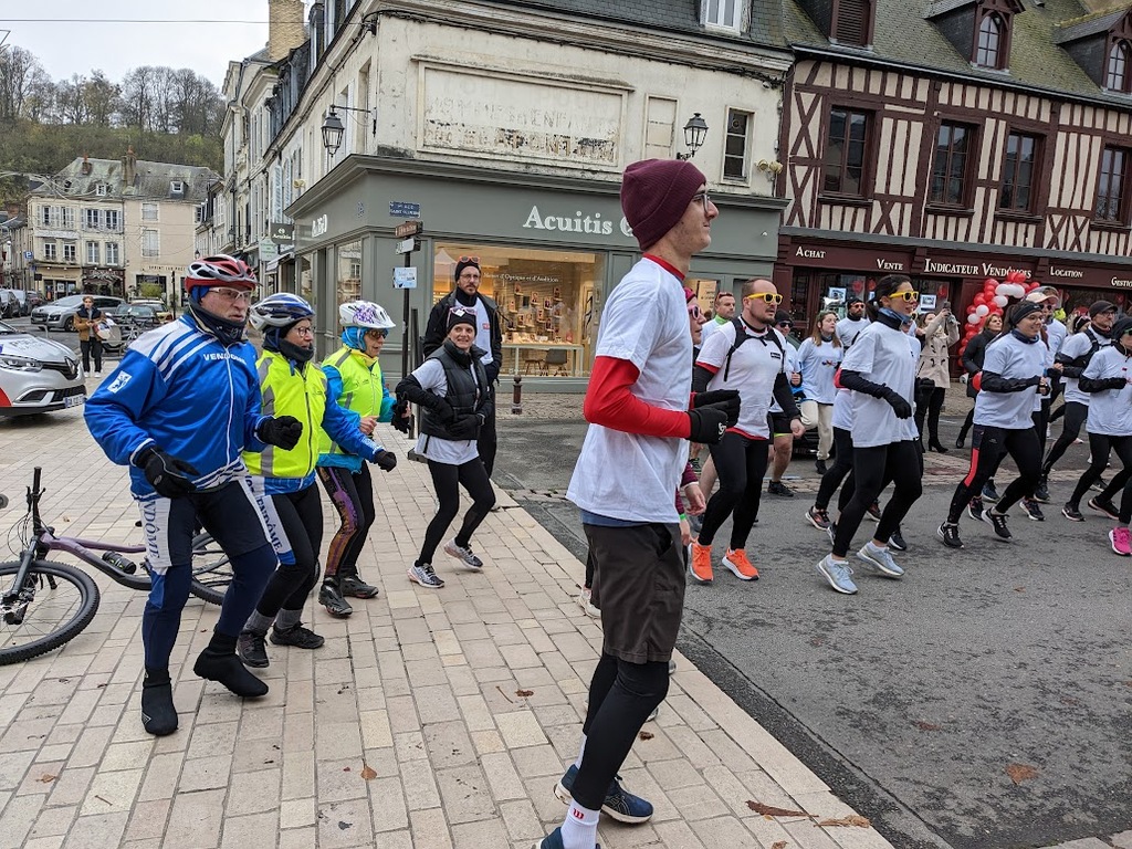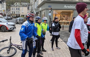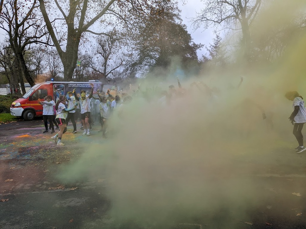 Nous étions 6 dont 4 féminines ! 5 pour encadrer la course en vélo et Isabelle comme signaleur carrefour; il fait froid mais on se réchauffe sur la ligne de départ Place St Martin, avec un échauffement commun rythmé par un coach , une course bien sympathique, sans enjeu si ce n'est celle de s'amuser et d'être courtois avec les automobilistes et les piétons, des jets de poudre colorée sur les coureurs à intervalles réguliers et en final au Grands Prés après l'arrivée des derniers coureurs une immense envolée de poudre par tous les participants. Un bon moment festif que nous avons terminé sous le marché couvert avec un excellent vin chaud. Nicole.