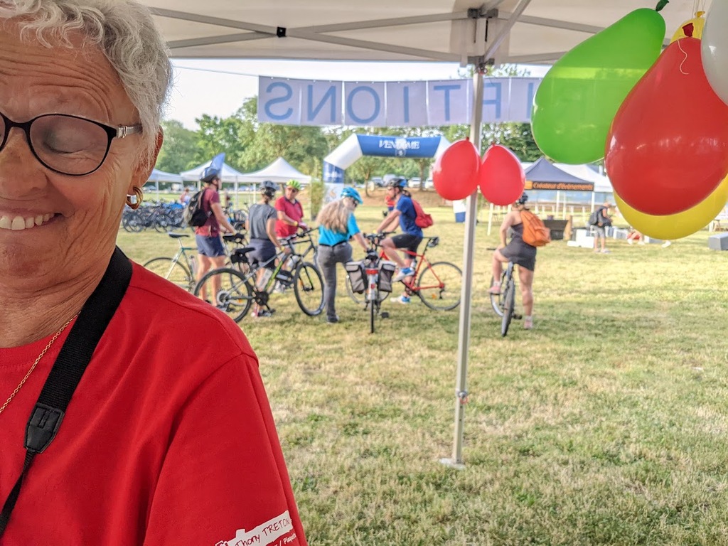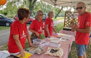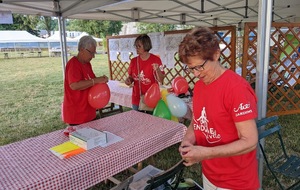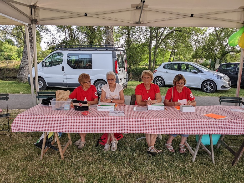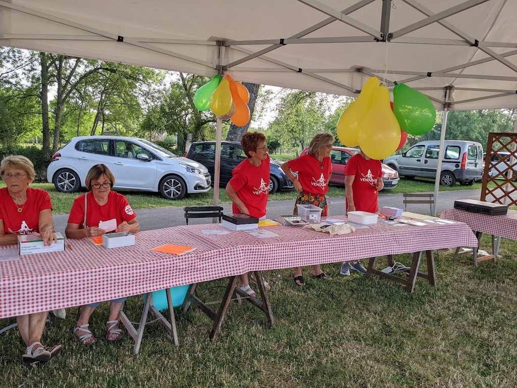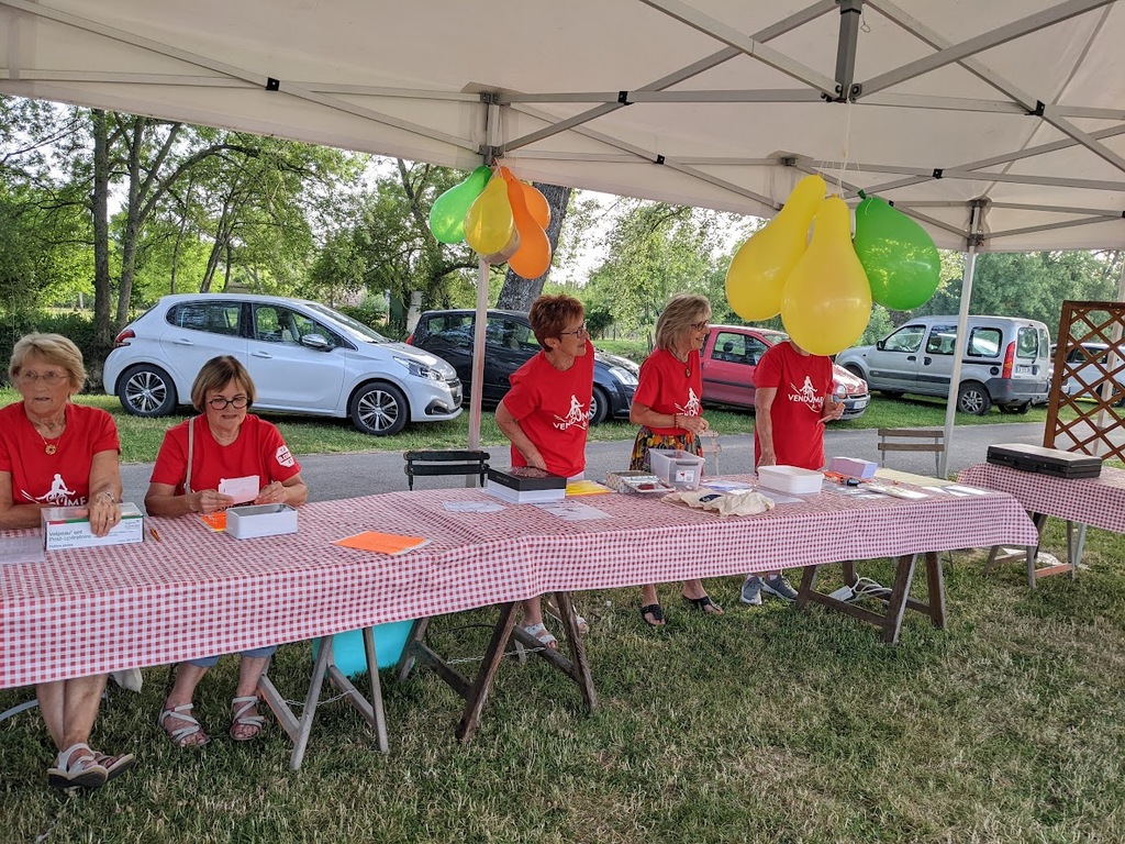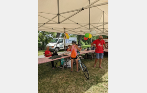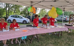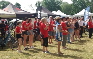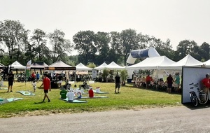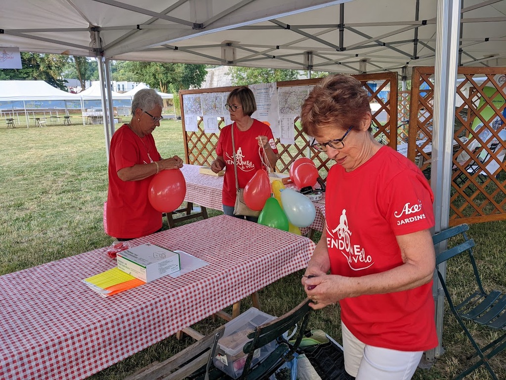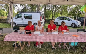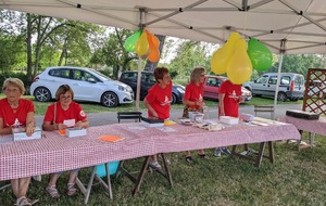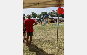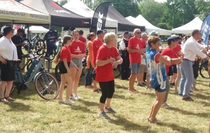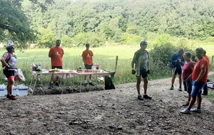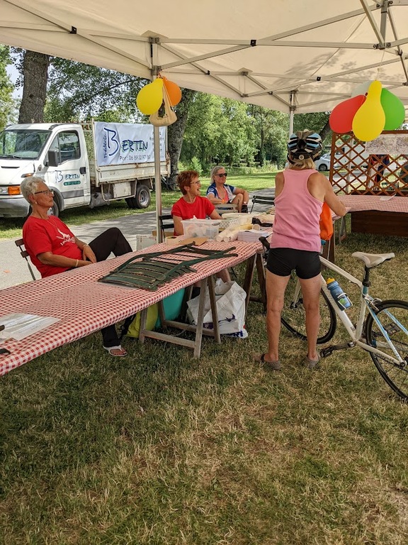 Dès 6h30 tout le monde s'active déjà pour la mise en route; buvette, ravito, animations et exposants divers et bien sûr notre stand d'accueil et inscriptions bien pré-installé le vendredi soir par Christian,Nadine et Marie-Jo. Heureusement car avec la canicule annoncée, dès 7h les inscriptions s'enchaînent sans répit jusqu'à 8H ; un peu rapide pour la mise en route mais finalement ça nous met tout de suite dans le bain . Le reste de la matinée sera plus calme avec quand même des inscriptions intermittentes jusqu'à 11H ; heure à laquelle les premiers partis commencent à rentrer, nous sommes impatients d'avoir leurs commentaires qui s'avèrent être dans l'ensemble positifs pour les parcours , un bémol car sur l'un des circuits le premier point ravito à 80km les a fait peiner un peu mais la majotité a bien paré en s'arrêtant faire le point d'eau dans des cimetières en bord de route..