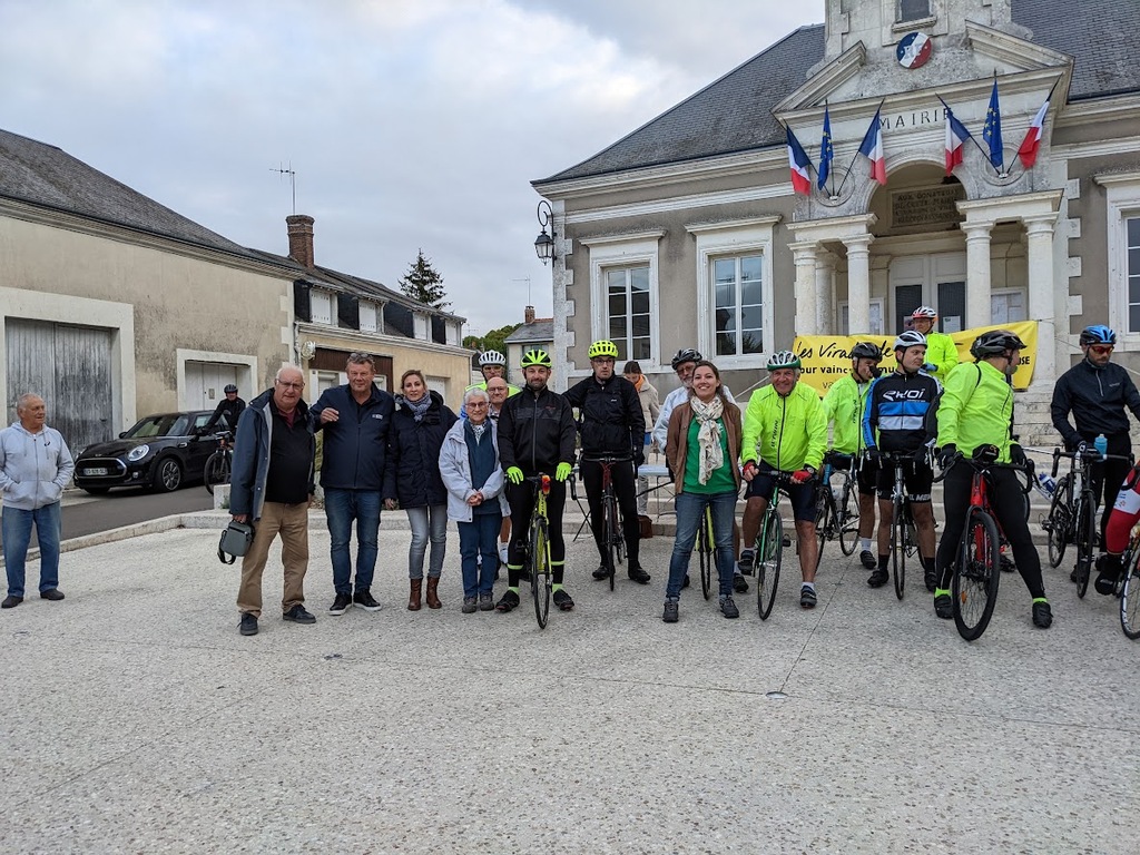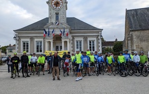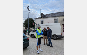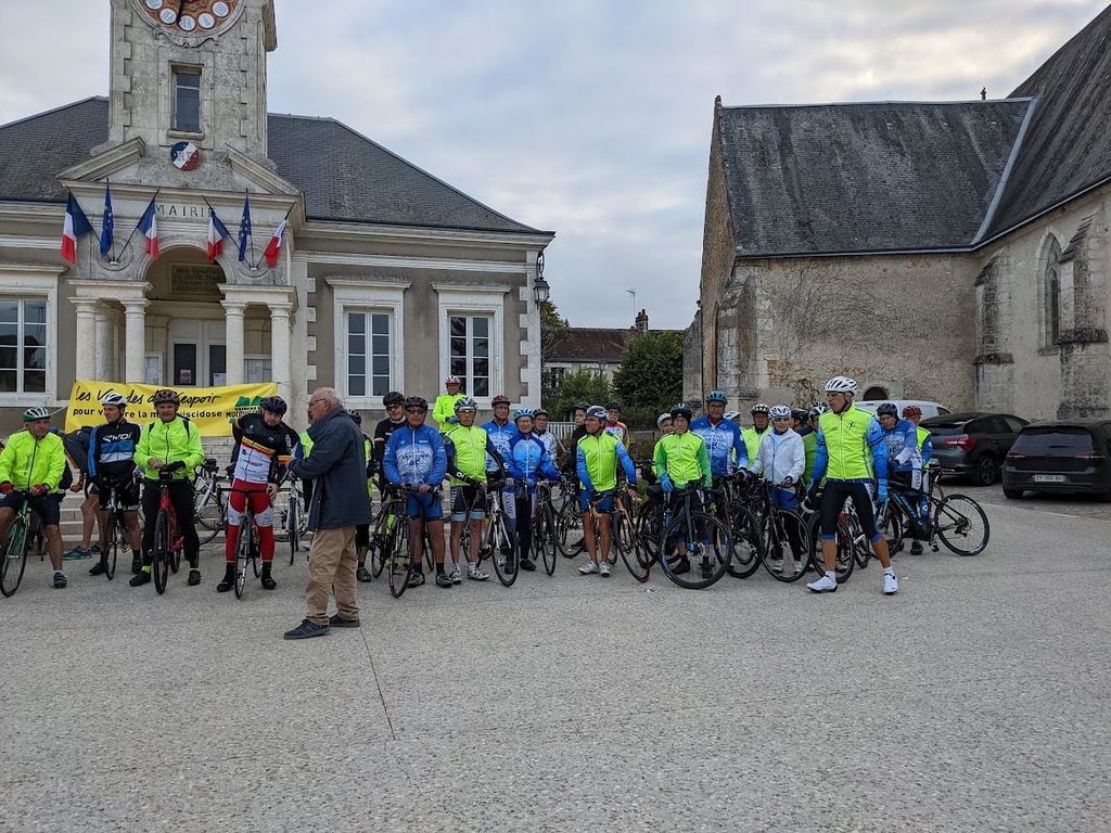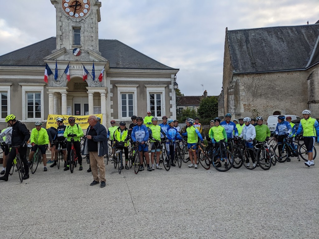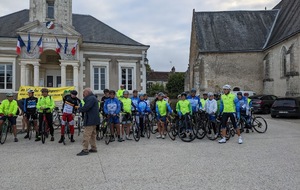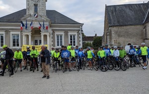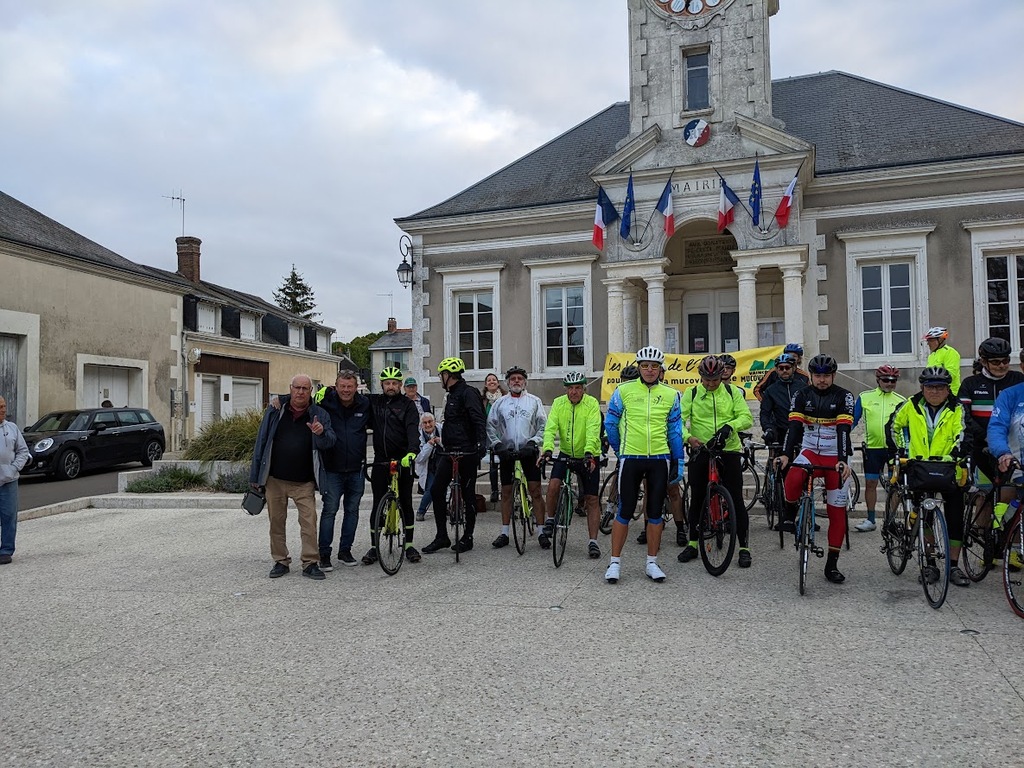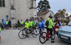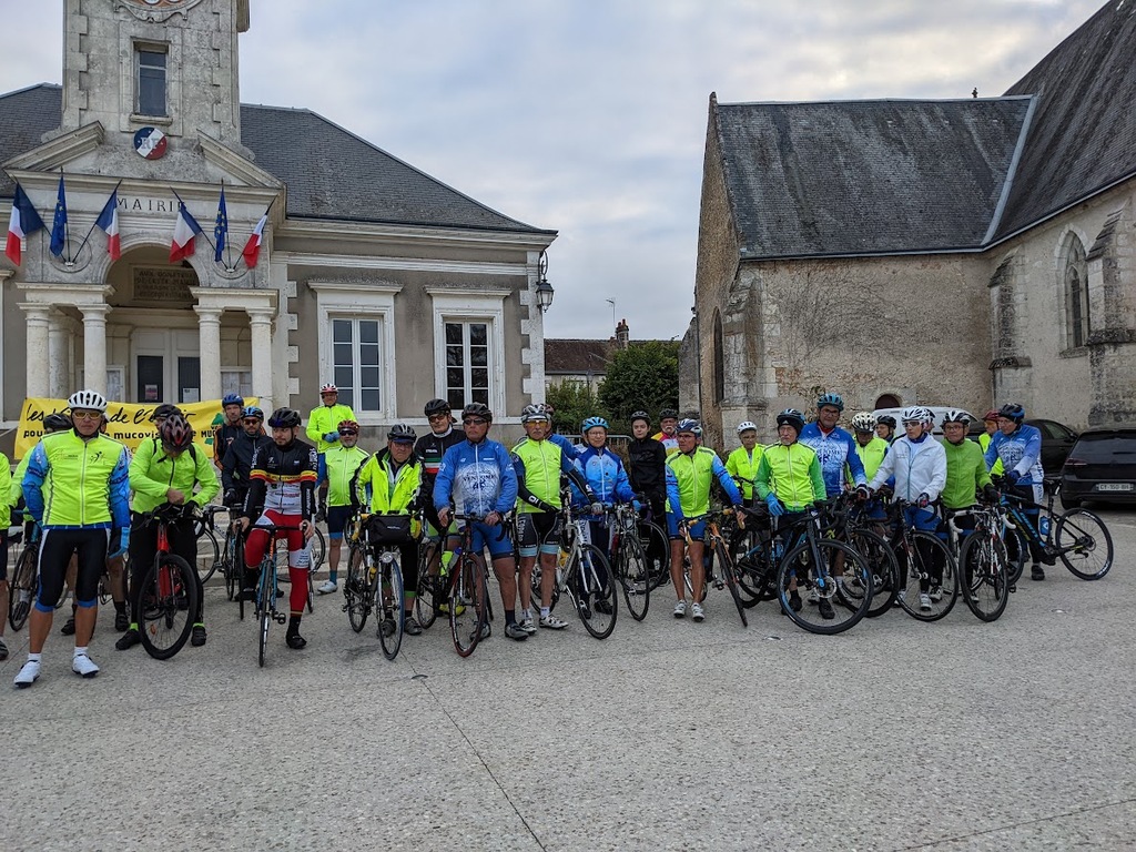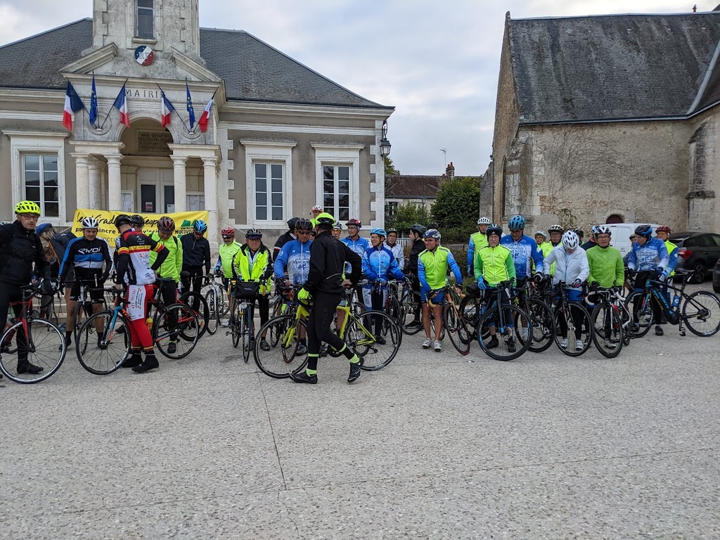 Une quarantaine de cyclos dont beaucoup d'extérieurs au club étaient au départ sous un ciel menaçant. Le début de parcours, vent favorable est bien roulant . Nous arrivons assez rapidement à Montoire où les bénévoles et le maire nous accueillent autour d'un copieux ravito que nous partageons avec le club des voitures de collection qui nous suivent. Un bon moment d'échanges dans une ambiance sympathique.