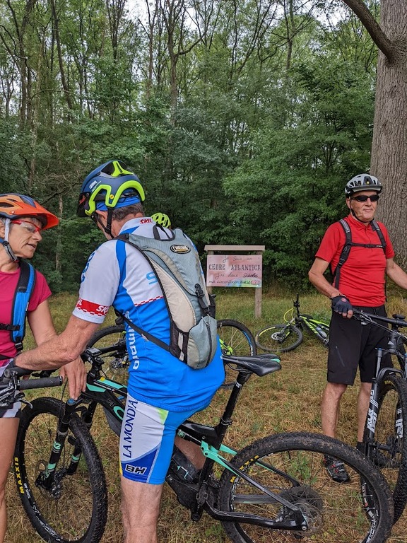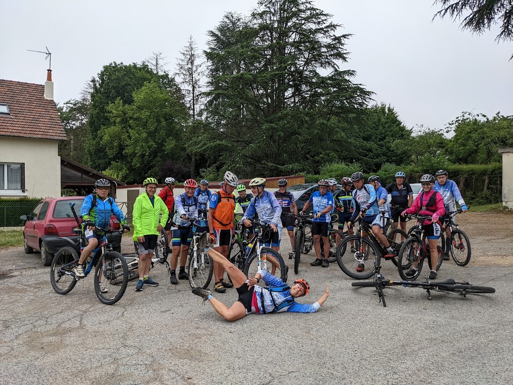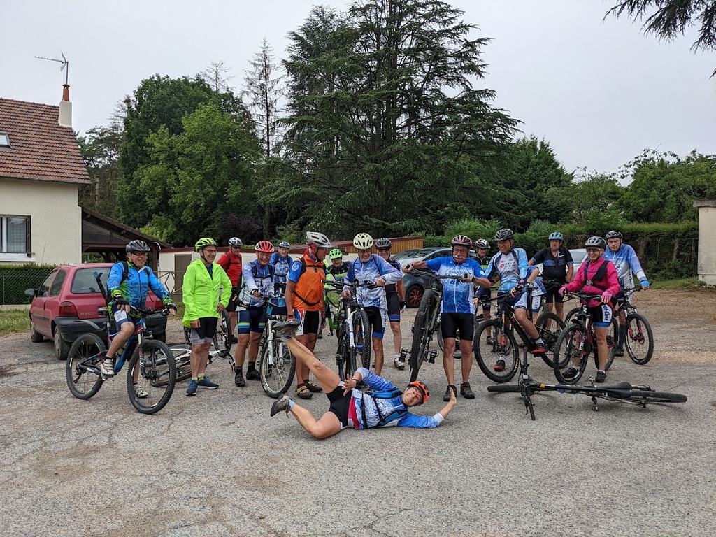 Il fait bon ce matin; nous sommes 22 au rendez-vous et bonne nouvelle, les équipes se sont très bien organisées et le défléchage prévu sur 2 jours était fini lundi. Nous somme donc "relaxe". Dans ces conditions, le chef décide de faire une sortie balade juste pour le plaisir de faire un tour ensemble. Ce sera fort agréable ; nous allons jusqu'à l'étang de Lunay sur de bons petits chemins; J.Paul nous fait faire un arrêt crevaison; un petit tour dans le bois au dessus de l'étang et un retour bien sympa mais un peu plus pentu nous ramène à Vendôme. Un petit détour par le Lycée Ampère où christian Drouin nous offre un pot pour son départ de Vendôme vers Briançon... dommage c'est un bon compagnon de VTT ; il s'était fort bien intégré au groupe. Mais nous le reverrons ; il a encore des attaches familiales dans la région et nous espérons bien le voir revenir pédaler avec nous quelques fois et pourquoi pas ... aller pédaler avec lui sur son nouveau terrain bien accidenté.