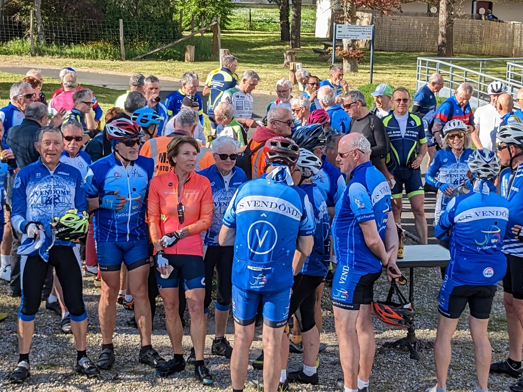 Nous étions une trentaine en 2 groupes. Le premier groupe a retrouvé les 60 cyclos de la Monthlérienne à Lanneray juste à l’horaire prévu tandis que le deuxième groupe attendait patiemment à St Hilaire/Yere. Un gros groupe bien encadré par 2 voitures et 3 motos assurant la sécurité qui impressionnait les promeneurs des quelques villages que nous avons traversés. Un retour bien agréable malgré un peu de vent de face mais nous avons échappé à la pluie malgré les nuages et les conversations se sont vite engagées. Nous avons retrouvé comme prévu à 18h15 à l’Auberge de jeunesse Marie-Jo et Nadine et avons partagé une bonne collation avec nos cyclos voyageurs ravis de cet accueil. La bonne pluie du lendemain matin a découragé les quelques vendômois ayant prévu de les accompagner jusqu’à Montoire et qui se sont limités à un bon soutien moral. Nicole