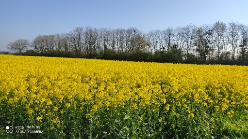 Encore une superbe marche ce matin. Il fait beau, les arbres sont en fleurs,les champs de colza illuminent la nature avec leur couleur éclatante. Tout cela nous donne le moral, nous nous sentons mieux. M.Jo
