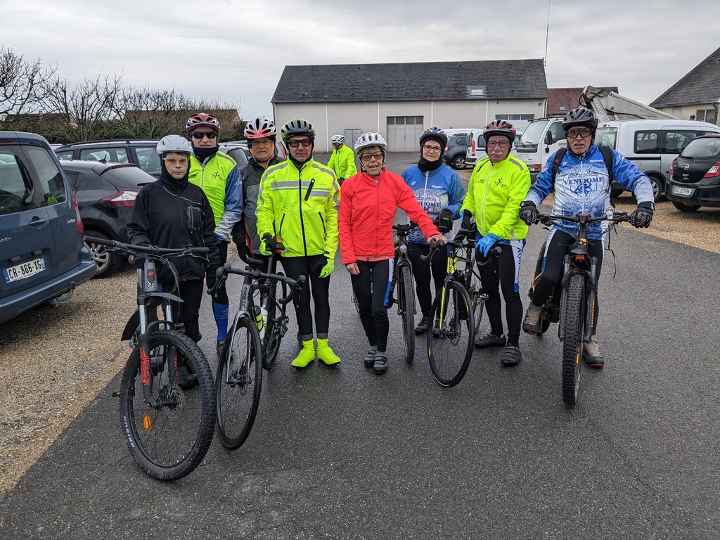 Nous étions 8 dont Momo et Brigitte en VTT et nous avons retrouvé Daniel avec les cyclos de Oucques. Une très belle matinée même si nous sommes revenus sur villetrun, La Chapelle, les bords du Réveillon avec un ravito à Selommes avec un très bon vin chaud alors que nous espérions les bords de la Cisse , les petits moulins .... Mais sans pluie , avec le vent favorable sur le retour ; 86km au compteur, 600m de dénivelé et une belle coupe en récompense à l'arrivée, nous étions très satisfaits.