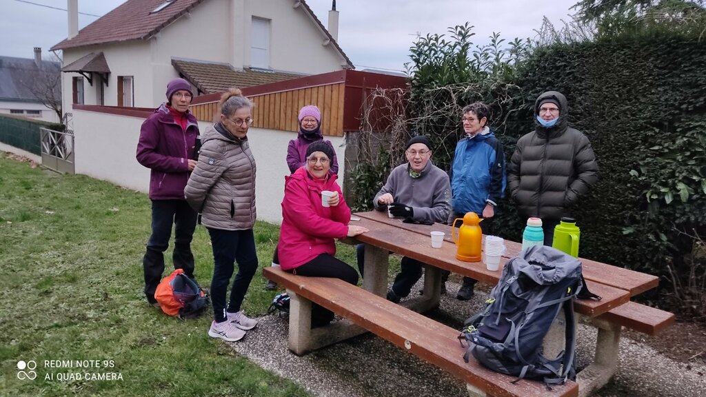 Aujourd'hui 27 janvier 2023, notre chef Nono nous avait conviés à 13h à Courtiras pour reconnaître le grand circuit du 5 Février. Nous faisons deux équipes, une de trois personnes pour le 15 km et l'autre de 6 personnes pour le 20 km. Nous partons tous ensemble et, à Prépatour nous nous quittons. A quinze heures nous arrivons à la cave de M.Jumert, 10 km. J'appelle l'autre équipe, ils sont à Rochambeau, encore trois km. Nous décidons de les attendre, 6km/h , dans une demi-heure ils sont là. Effectivement à 15h30 ils arrivent. Nous allons à la cave avec M.Jumert pour voir l'organisation du ravitaillement et Nono fait sa commande de vin. Notre Jojo, très attentionnée envers nous, nous a préparé un cake et du vin chaud. Un agréable goûter devant la cheminée. Il nous faut repartir. Nous nous séparons sur le plateau, Claude rentre avec nous il a mal aux pieds. A 16h45 arrivée à Courtiras nous changeons de chaussures, et l'autre équipe arrive 15mn derrière nous avec une boucle de 2km en plus.Un petit verre de vin chaud pour finir cette belle balade et nous nous quittons ravis de ce bel après-midi. M.Jo