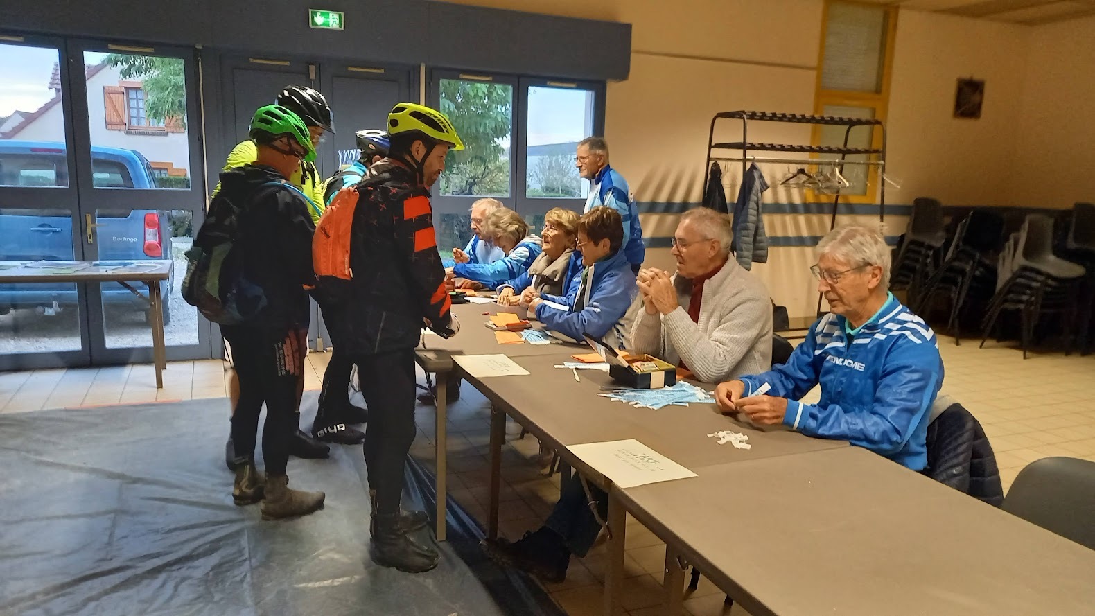 Belle journée, une météo idéale, 291 vététistes locaux et beaucoup de régionaux inscrits. Aucun retour négatif, beaucoup de félicitations pour la variété des parcours avec les quelques inédits, l' accueil, le super ravito avec le point chaud. Un long moment de partage a perduré dans une forte ambiance autour du verre de l’amitié avec des participants peu pressés de rentrer après cette bonne matinée. Et pour finir beaucoup de rigolades autour d' un succulent couscous. Merci à tous les bénévoles et aux cyclos du club venus participer. Nicole