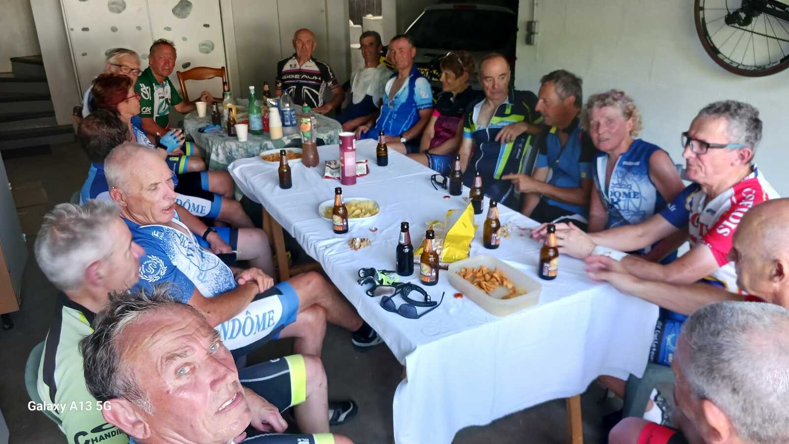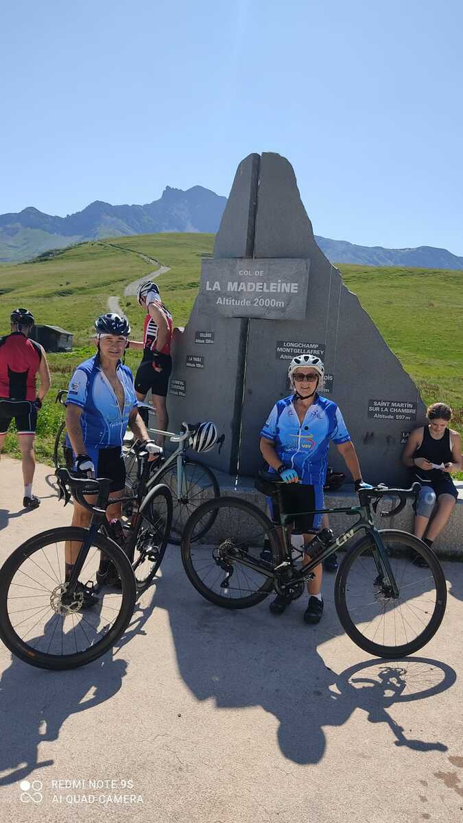 Deux valeureux cyclos, profitant de leurs vacances dans les Alpes, se décident pour monter à vélo au col de la Madeleine. Et pendant ce temps, l'équipe de VTT aprés sa randonnée du mardi, fait une halte chez Dominique pour fêter son anniversaire. Bravo aux cyclos pour cette performance et merci à Brigitte de nous avoir accueillis, si nombreux pour ce pot. M.Jo