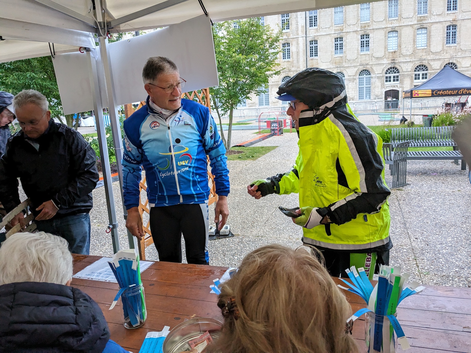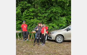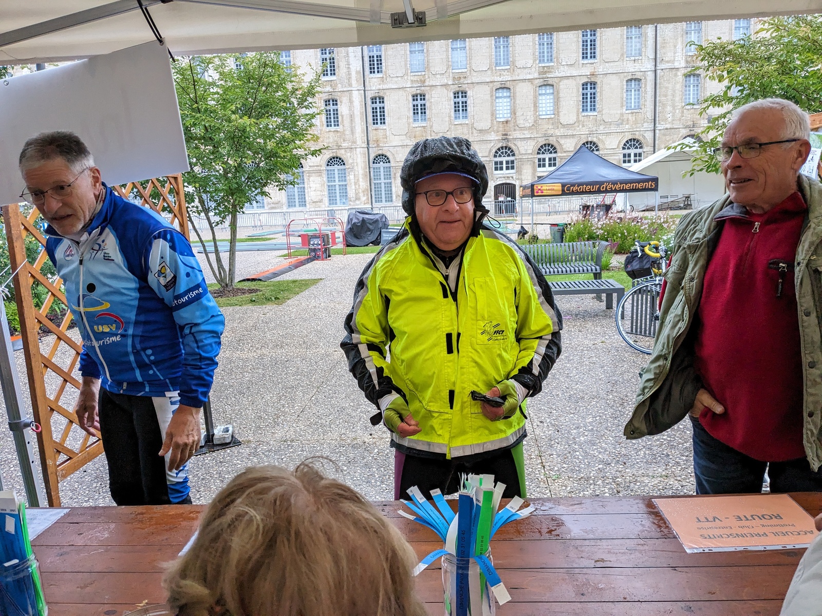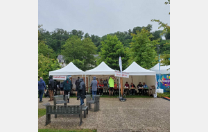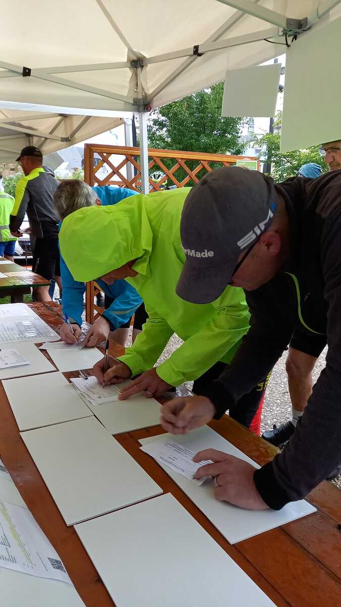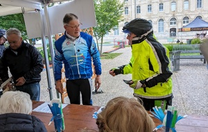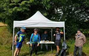 Dès 7h le premier cyclo arrive mais ce ne sera pas l'affluence.... Seulement une centaine de participants au total répartis entre 2/3 VTT et 1/3 route; bien courageux de sélancer sous la pluie qui cesse vers 9h30 mais c'est trop tard ....