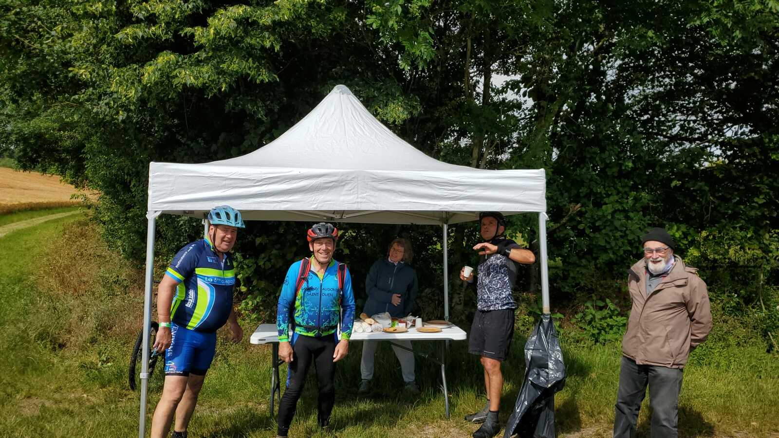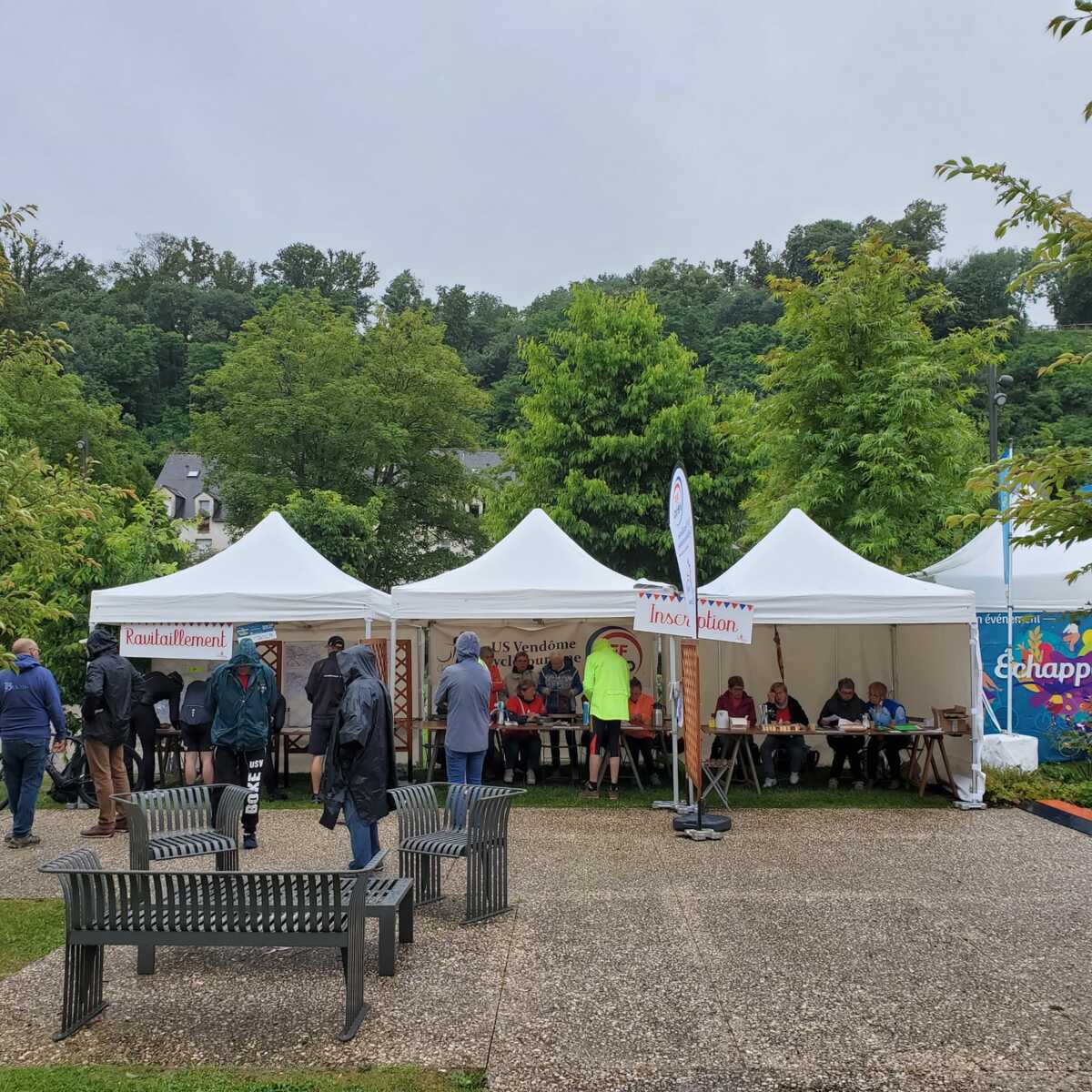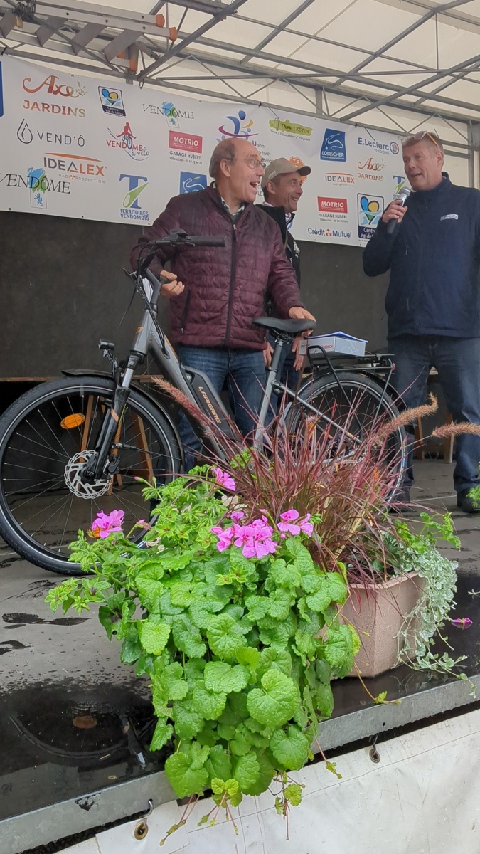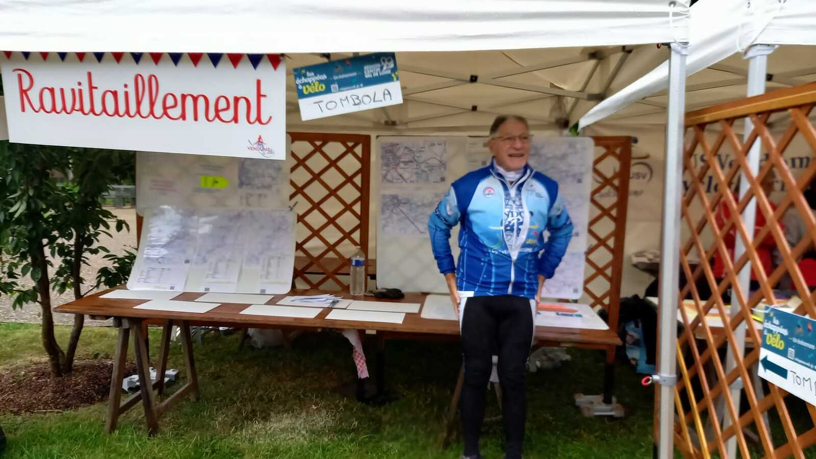 Dès 7h le premier cyclo arrive mais ce ne sera pas l'affluence.... Seulement une centaine de participants au total répartis entre 2/3 VTT et 1/3 route; bien courageux de sélancer sous la pluie qui cesse vers 9h30 mais c'est trop tard ....