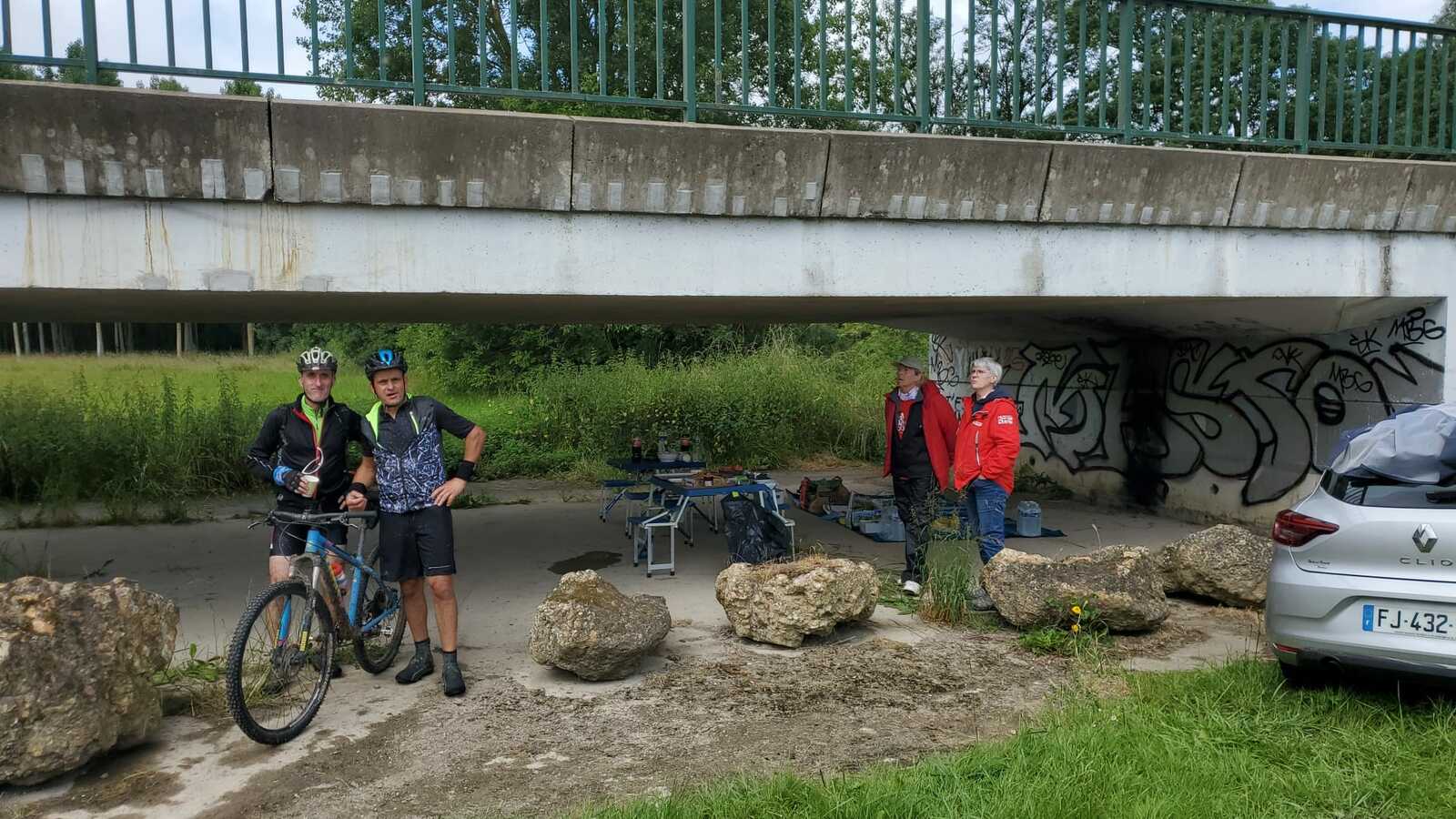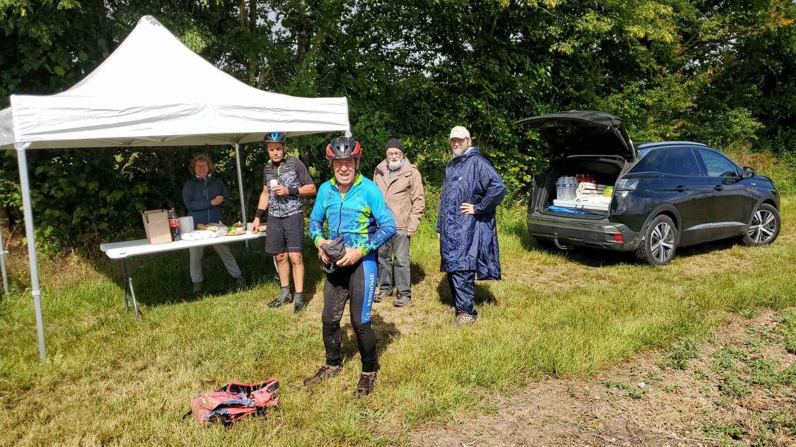 Les contrôleurs des circuits VTT rentrent bien sales et bien mouillés mais ont bien oeuvrés, surtout dans l'Oratoire où nombre de flèches ont été enlevées, retournées....