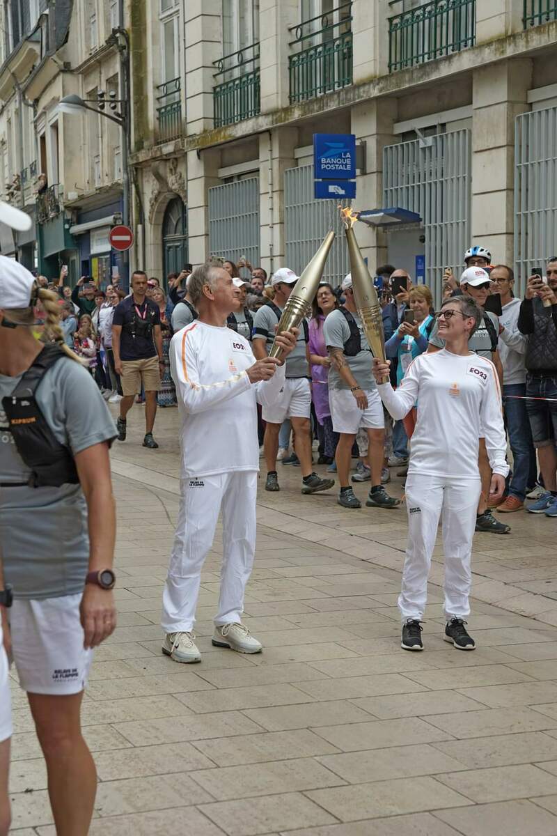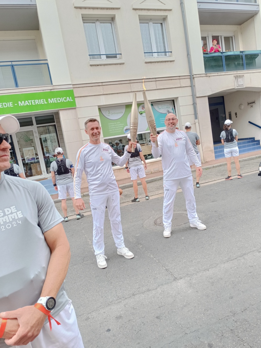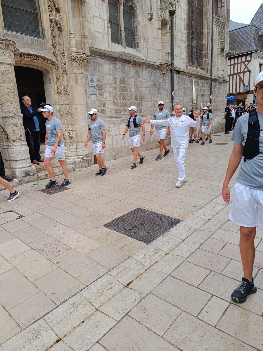 Quelle belle matinée ce lundi 8 juillet, la flamme Olympique est de passage à Vendôme. Partie très tôt pour être aux premières places à la sortie du stade Léo Lagrange, l'attente est longue mais il y a beaucoup de passage à cet endroit. Un déploiement de policiers, tous les notables de la région, des CRS, beaucoup de voitures de police, la flamme sera bien protégée. Enormément de monde agglutiné devant cette porte et enfin on nous autorise à entrer pour voir l'allumage du chaudron. Nous partons ensuite vers la ville avec un changement de personne tous les 200 m. Les relayeurs ont été briffé pour suivre un protocole, de face, tourner à droite, tourner à gauche pour que la population les voit bien. Plus nous descendons vers la ville plus le monde augmente c'est incroyable la presse parle de 12000 personnes. Au carrefour de l'avenue Gérard Yvon, c'est le tour de Jérôme d'allumer la flamme et prendre le relais. Jérôme, bien connu des Vendômois, licencié à notre club, à l'origine de "Vendôme à vélo" il est acclamé par tous, il savoure ce moment qui sera inoubliable. Nous continuons, devant la poste c'est Robert qui prend la flamme. Là c'est le délire, tous les Vendômois scandent "Robert, Robert" très connu lui aussi dans le Vendômois pour ses actions dans le sport et surtout la boxe.Robert très ému salue la foule, l'enthousiasme suscité par celle-ci fait ressentir un grand moment de fierté et de satisfaction. Quels moments de partage incroyables, fabuleux, nous ne reverrons pas celà.