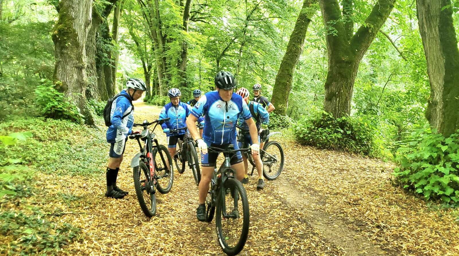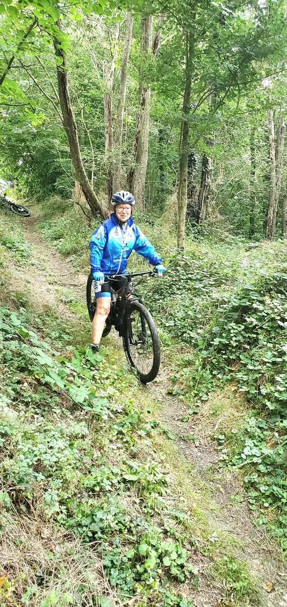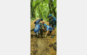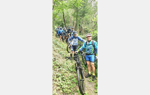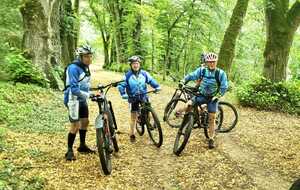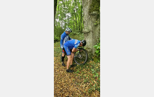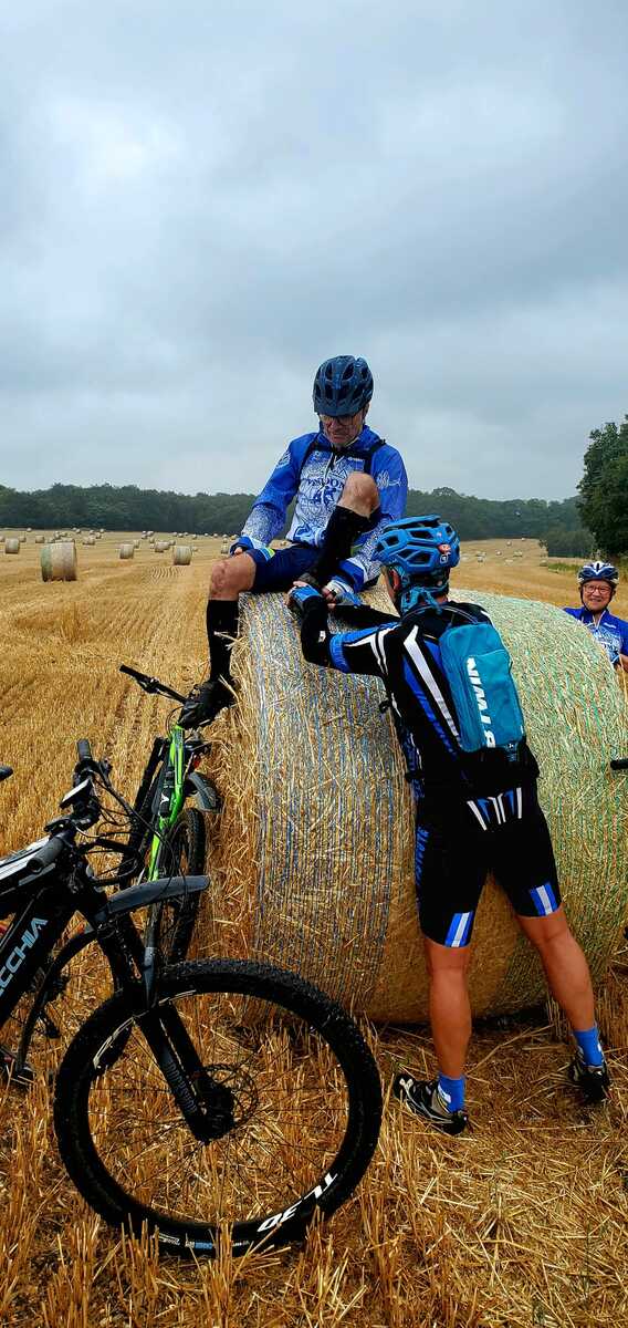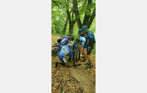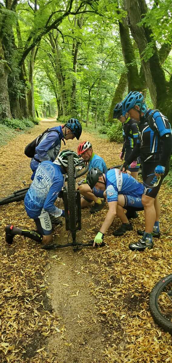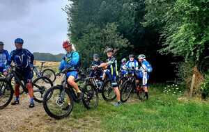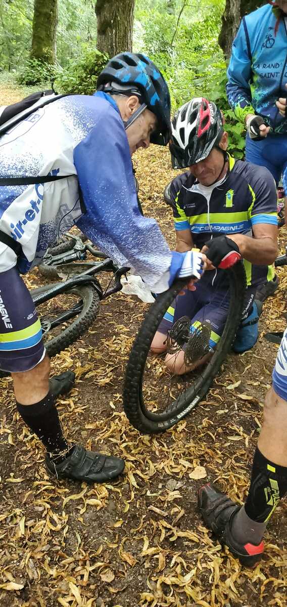 Une petite équipe ce matin au VTT, beaucoup sont partis à Roanne pour participer à la semaine fédérale. C'est Michel qui nous guide. Un petit crachin se met à tomber et ça durera toute la matinée. Beaucoup de bois, donc nous ne sommes pas trop mouillés. Vers le retour Pascal crève, deux belles épines dans son pneu, la réparation est faite par nos spécialistes et pour remercier tout ce petit monde d'avoir attendu, Pascal nous demande d'arrêter chez lui pour boire un pot. Son épouse à l'air ravie de nous accueillir et nous passons un agréable moment. M.Jo