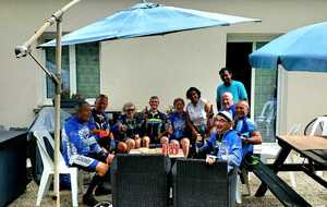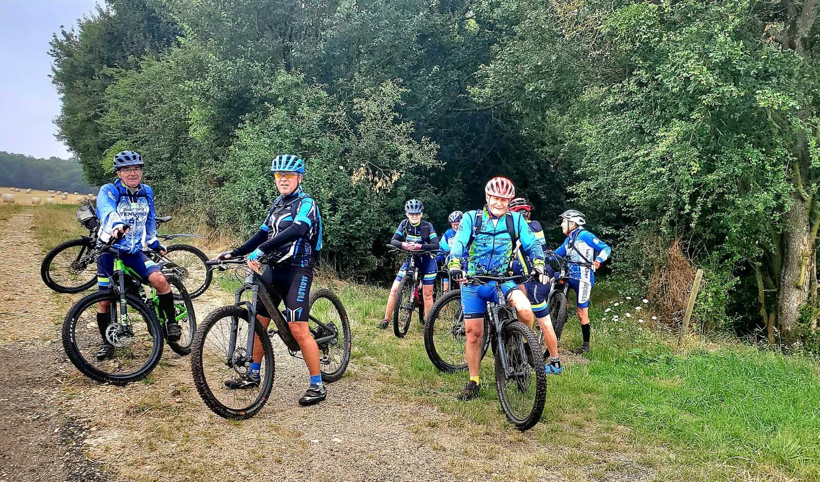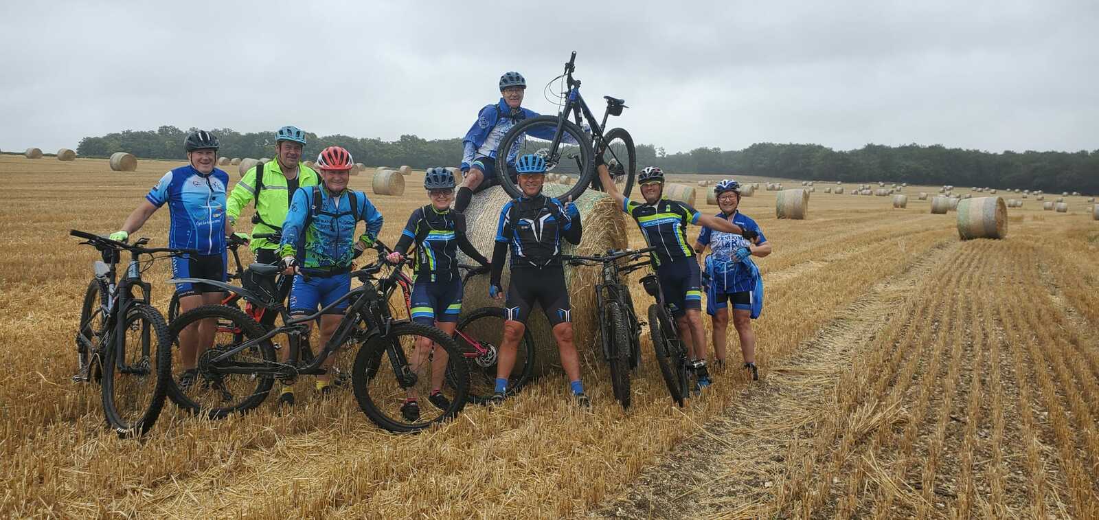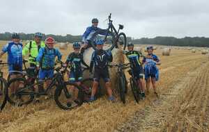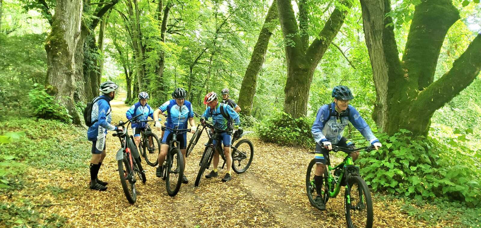 Une petite équipe ce matin au VTT, beaucoup sont partis à Roanne pour participer à la semaine fédérale. C'est Michel qui nous guide. Un petit crachin se met à tomber et ça durera toute la matinée. Beaucoup de bois, donc nous ne sommes pas trop mouillés. Vers le retour Pascal crève, deux belles épines dans son pneu, la réparation est faite par nos spécialistes et pour remercier tout ce petit monde d'avoir attendu, Pascal nous demande d'arrêter chez lui pour boire un pot. Son épouse à l'air ravie de nous accueillir et nous passons un agréable moment. M.Jo