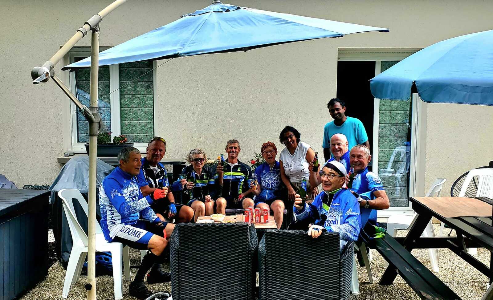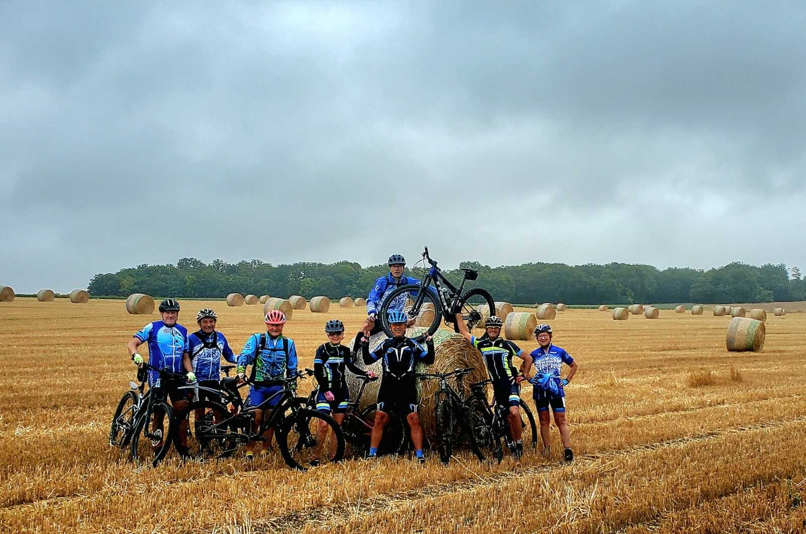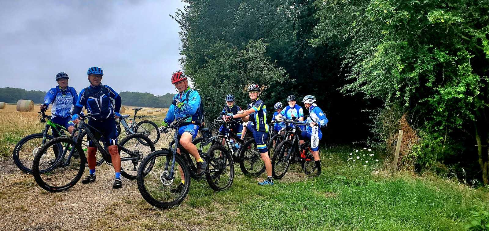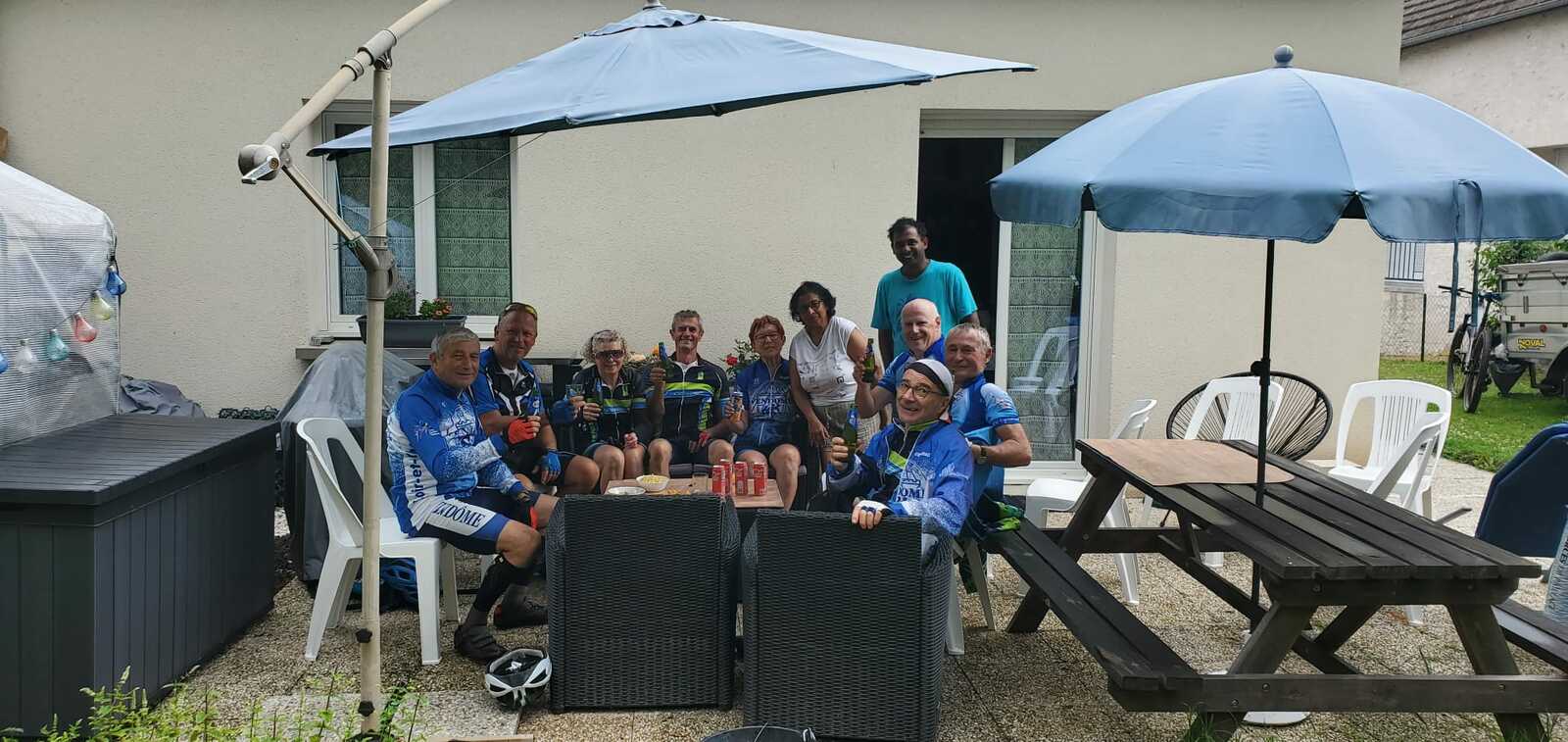 Une petite équipe ce matin au VTT, beaucoup sont partis à Roanne pour participer à la semaine fédérale. C'est Michel qui nous guide. Un petit crachin se met à tomber et ça durera toute la matinée. Beaucoup de bois, donc nous ne sommes pas trop mouillés. Vers le retour Pascal crève, deux belles épines dans son pneu, la réparation est faite par nos spécialistes et pour remercier tout ce petit monde d'avoir attendu, Pascal nous demande d'arrêter chez lui pour boire un pot. Son épouse à l'air ravie de nous accueillir et nous passons un agréable moment. M.Jo