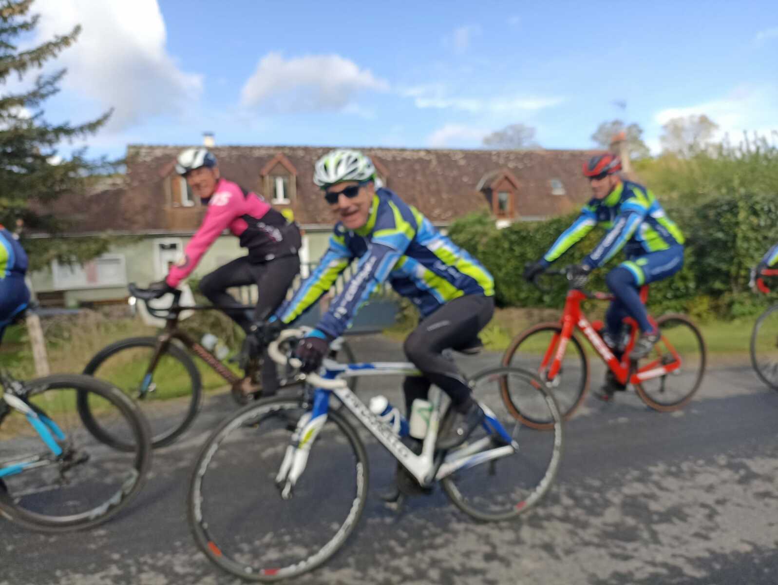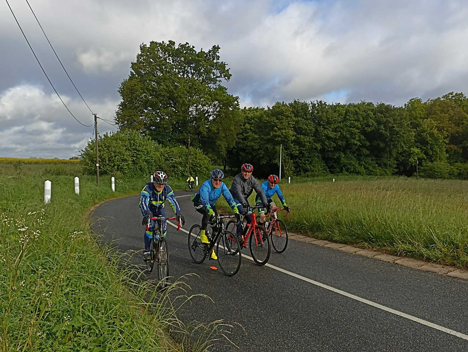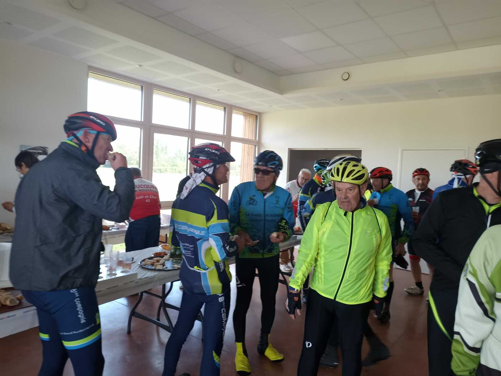 A la sortie nous croisons le groupe parti sur le 104 qui arrive de leur boucle supplémentaire partant des Bellezéveries et passant par Azé, Mazangé, Le Gué du Loir, entrée de Villiers pour rejoindre la forêt de Vendôme.