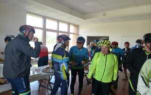 Répartis en 3 groupes, 8 sur le 104, 7 sur le 88 ,2 sur le 67 et 1 sur le 45, nous nous élançons vers Vievy, La Colombe, la Ritière; le soleil ne tarde pas et si la température devient agréable, le vent n'a pas cessé et devient peu favorable... Passant par la côte de Fréteval , Lignières. nous rejoignons Pezou où nous attend un bon ravito sur lequel nous faisons une bonne pause avant de repartir vers Espéreuse, le vent s'est bien renforcé et ne facilite pas notre tâche. heureusement, les quelques haies et La forêt de Vendôme,nous permettent de récupérer un peu. Nous atteignons les hauts de St Ouen puis Le grand Mortier et les Rochettes et rejoignons l'Etang pour notre 2ème point ravito où nous sommes accueillis par nos cyclos sympathisants du club de Oucques pour un petit moment de bonne rigolade.